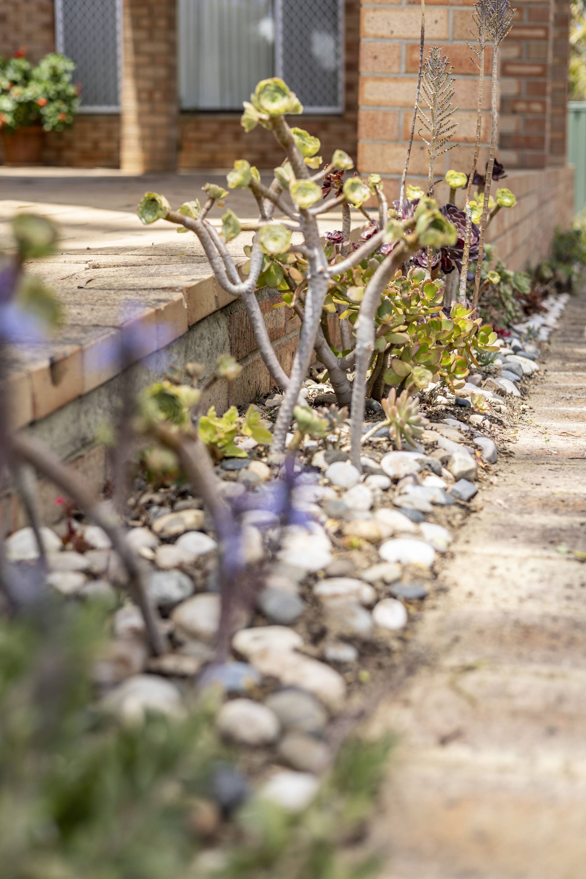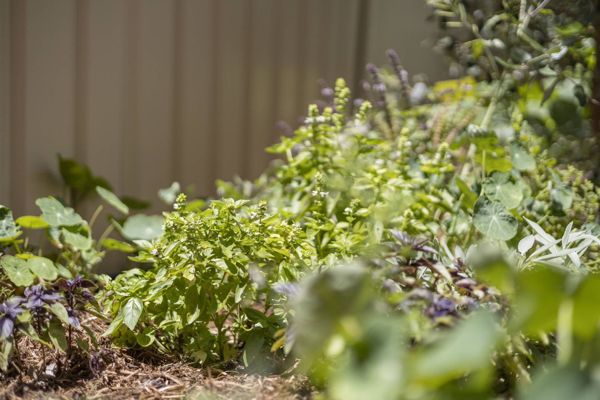 *The front features a Waterwise low-maintenance native garden, while the back has a much-loved organic fruit, vegetable, herb and flower garden, with a mature Kalamata olive tree bearing fruit, feijoa, carob, bay, and pawpaw trees
