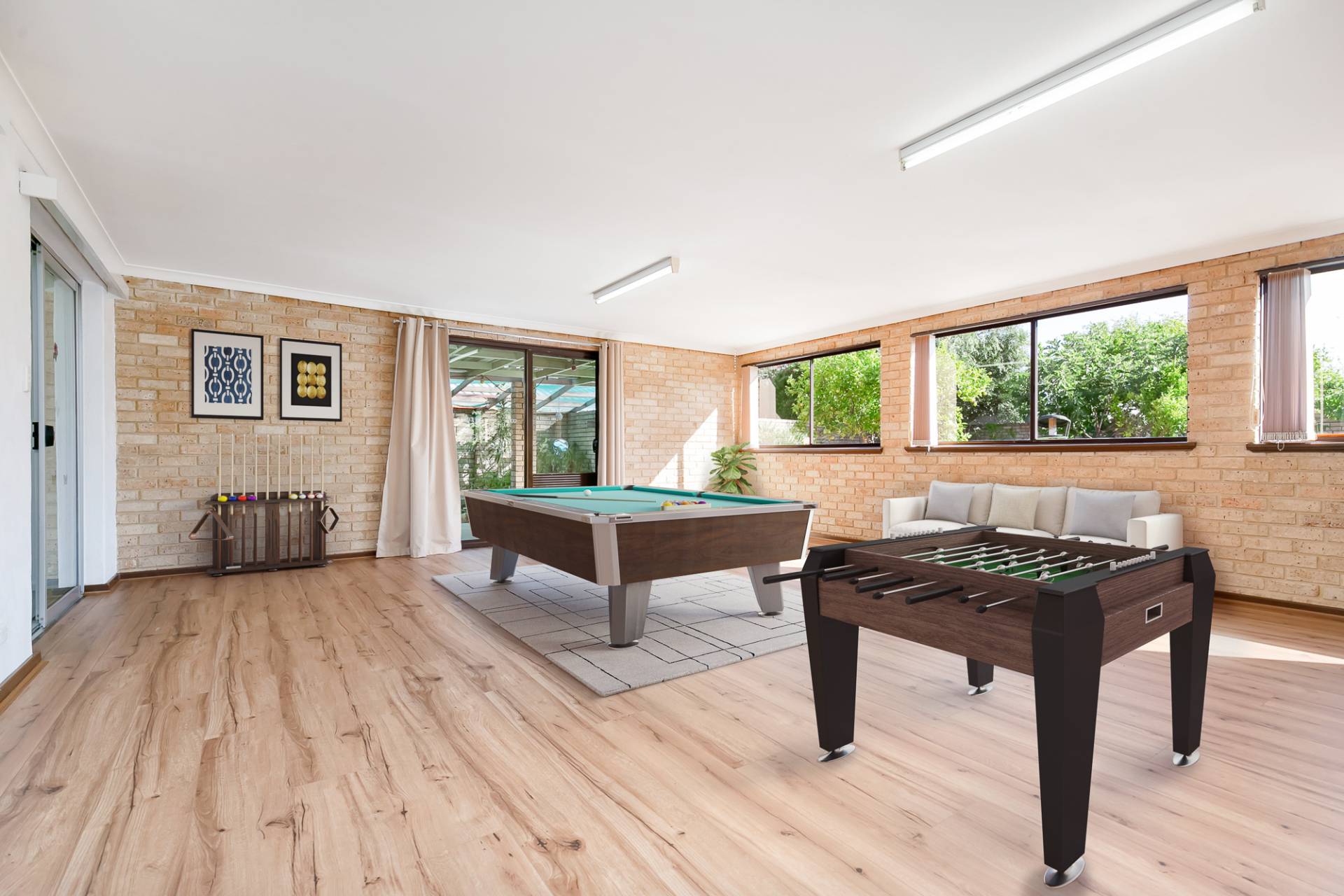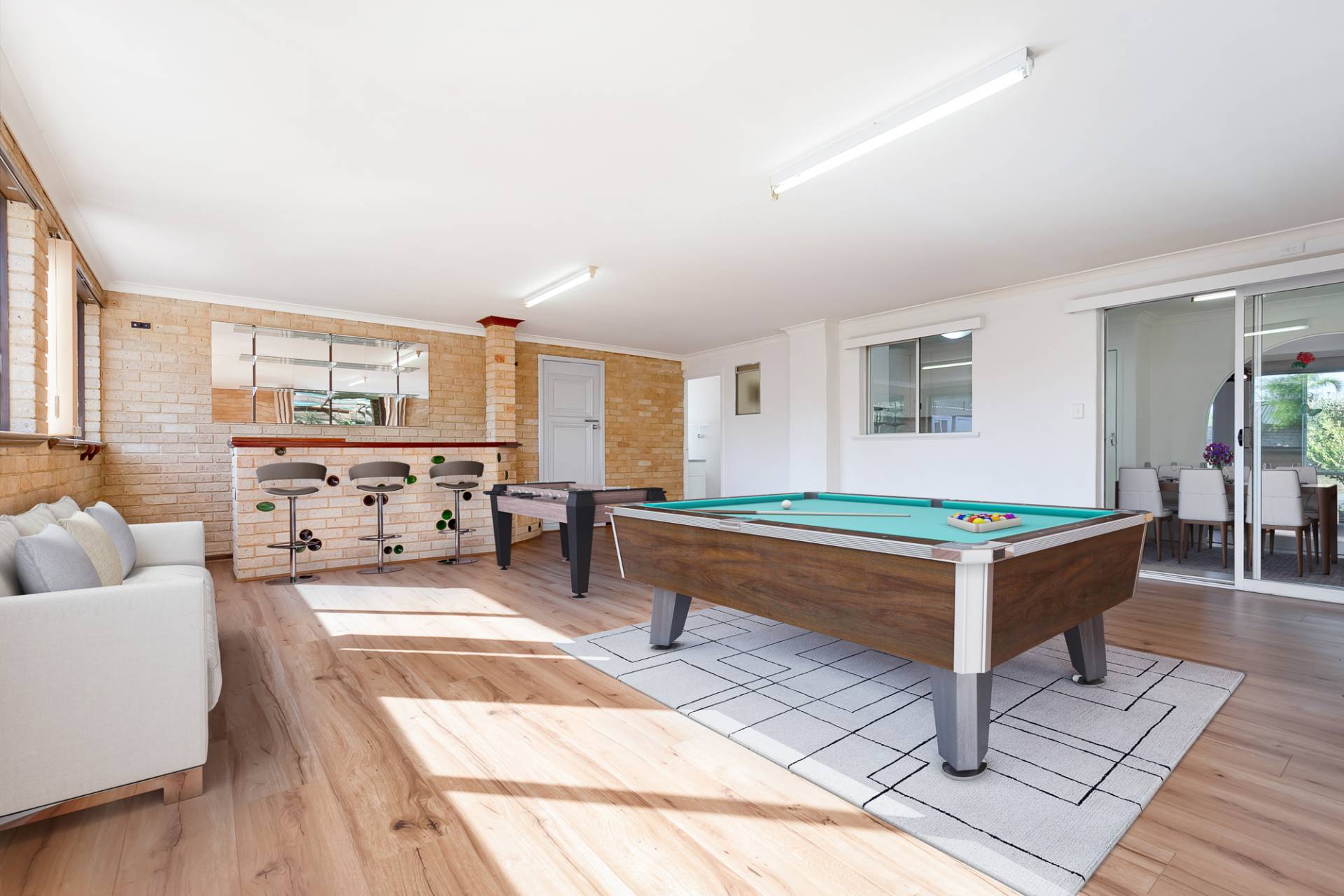 • Expansive multipurpose games and/or second living area with a built-in bar