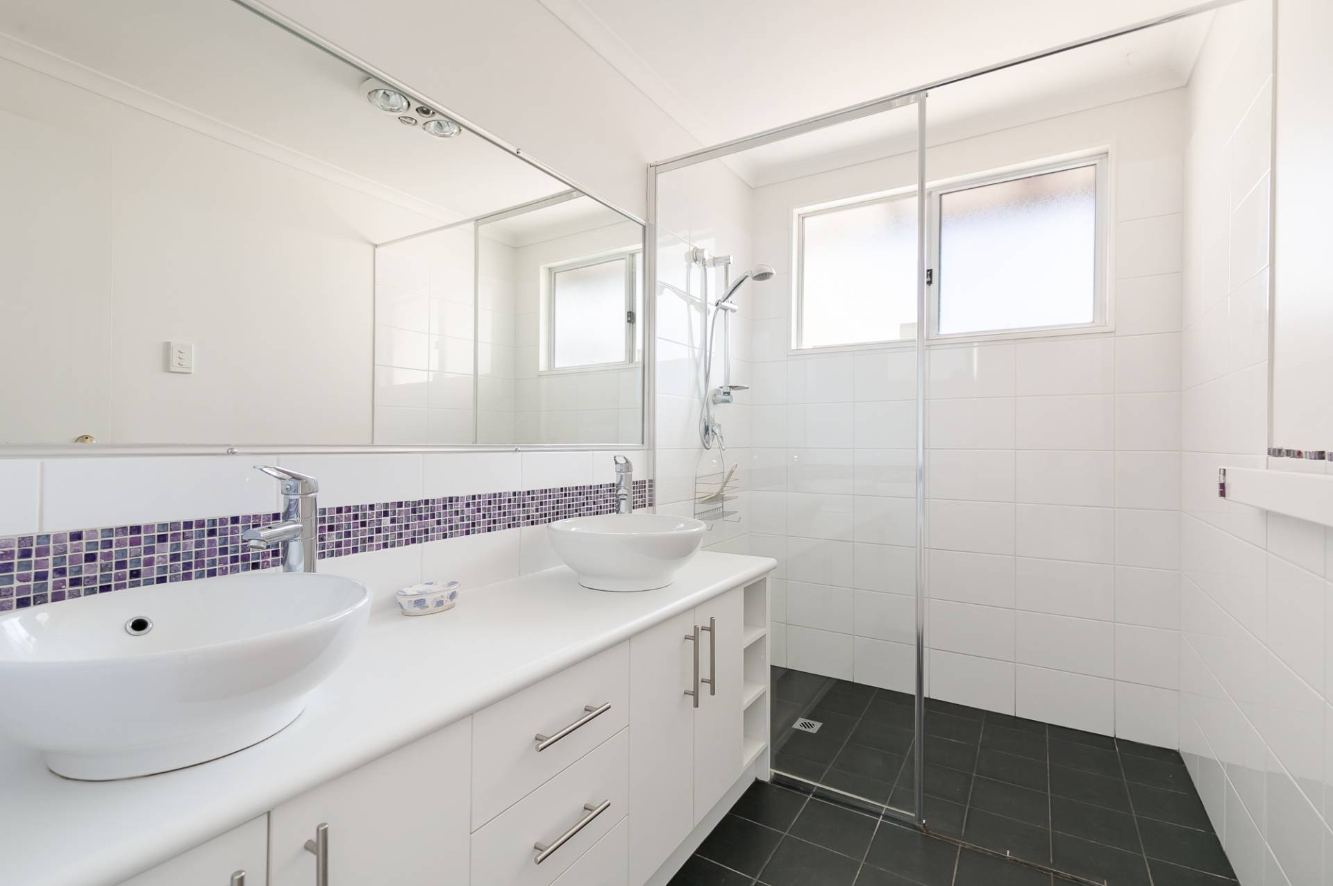 • Updated bathroom with a wide twin vanity offering plenty of storage