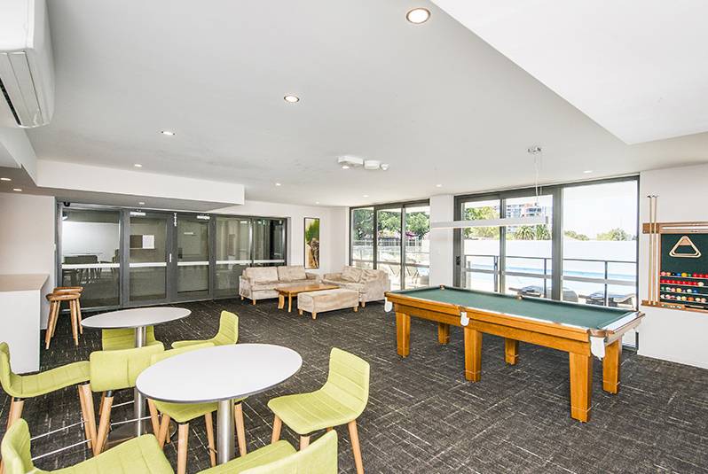 There’s ample room for lounging, dining and barbeque-ing on the balcony and in the apartment building’s resort facilities.Start the party on your balcony and then head down to the pool, sauna and BBQ facilities or stroll across the road to Cracknell Park with shady picnic facilities along the river. The games room, residents’ lounge and gym are well-equipped and create a community vibe perfect for professionals who love to wind down after a long day at the office.