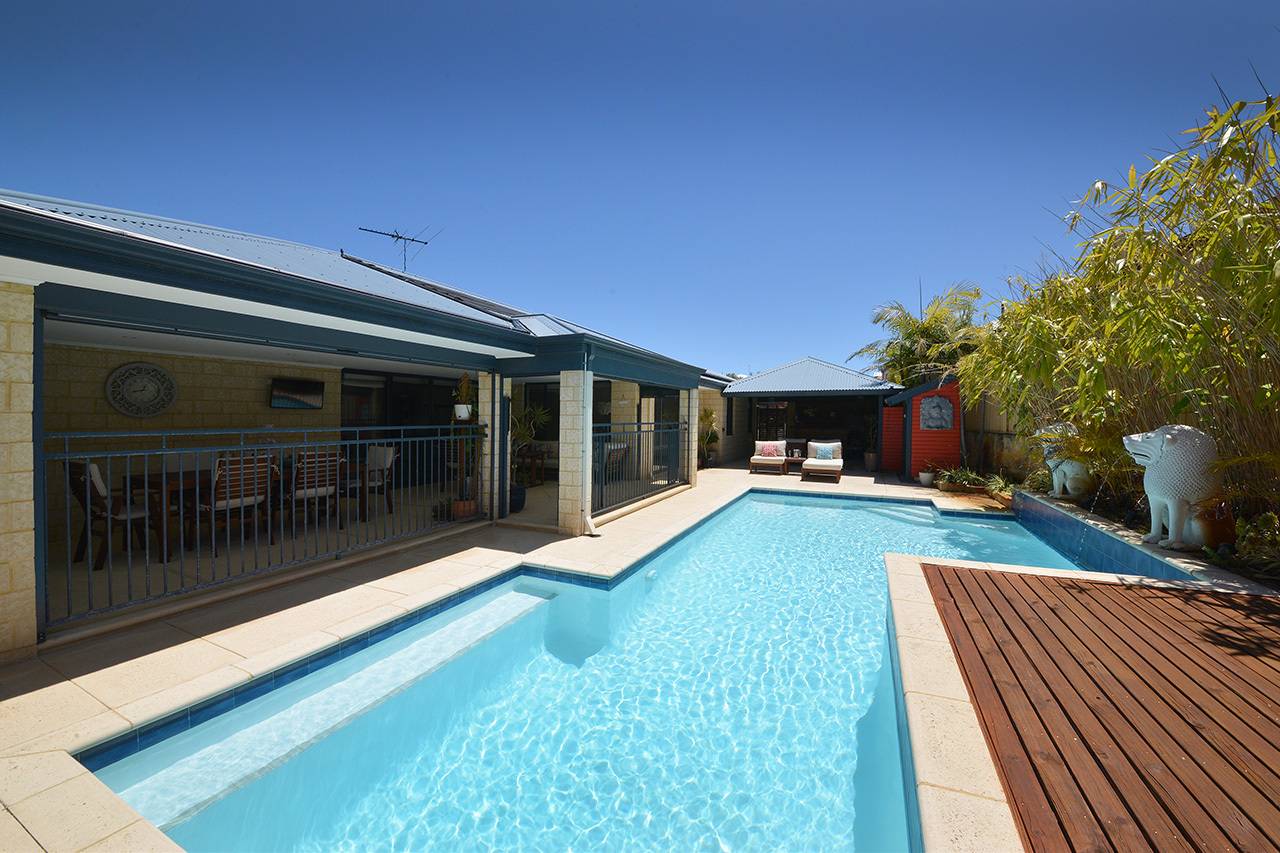 Step outside to a resort style outdoors with 2 separate entertaining area’s all overlooking a solar heated concrete below ground pool,