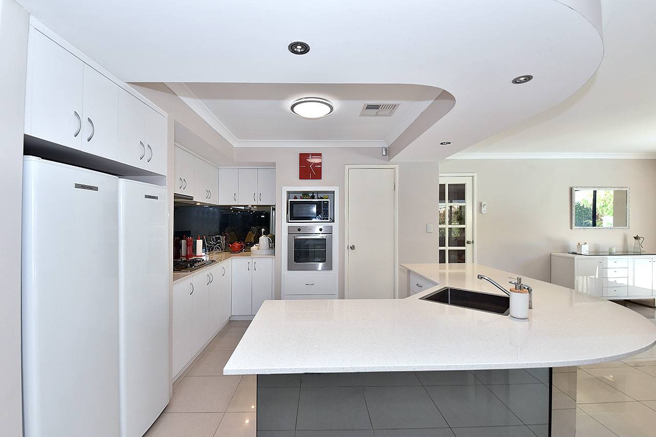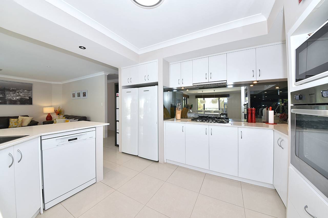 Superb kitchen with stone benchtops, stainless appliances, gas hotplates, rangehood, dishwasher, overhead cupboards, quality mirrored glass splashbacks, fridge / freezer recess and microwave recess...all in all a true statement in quality!