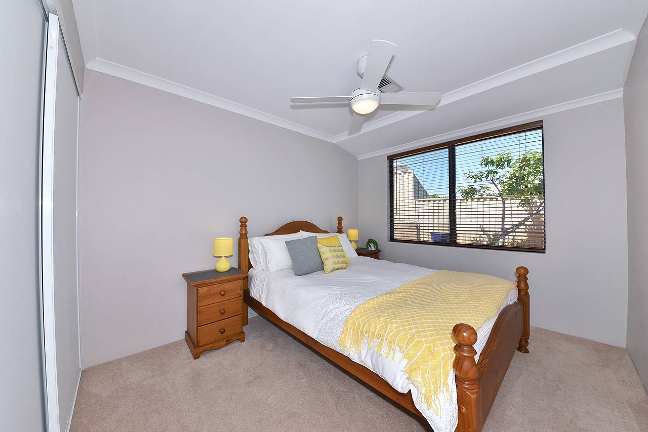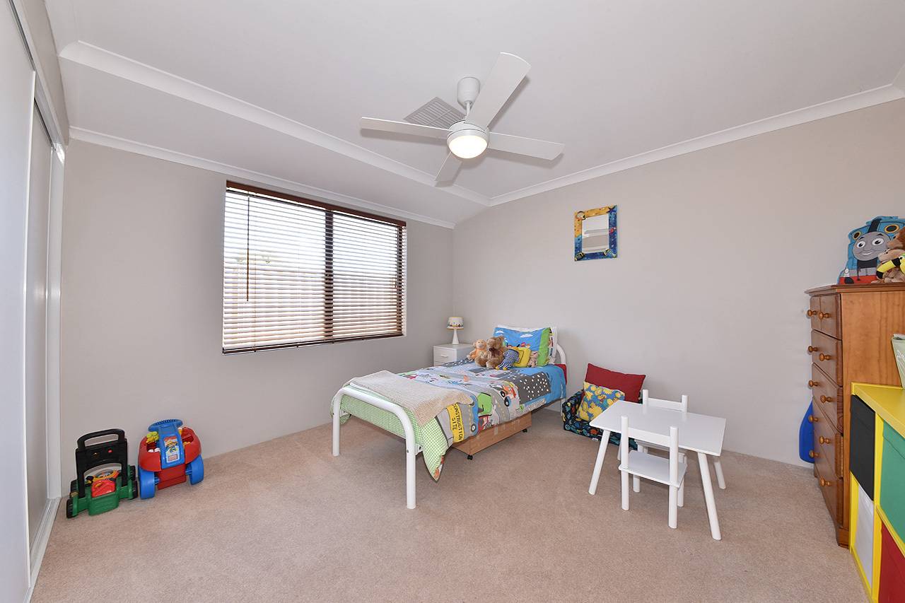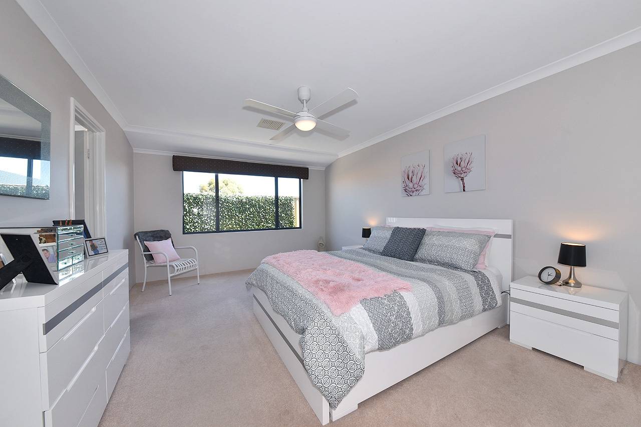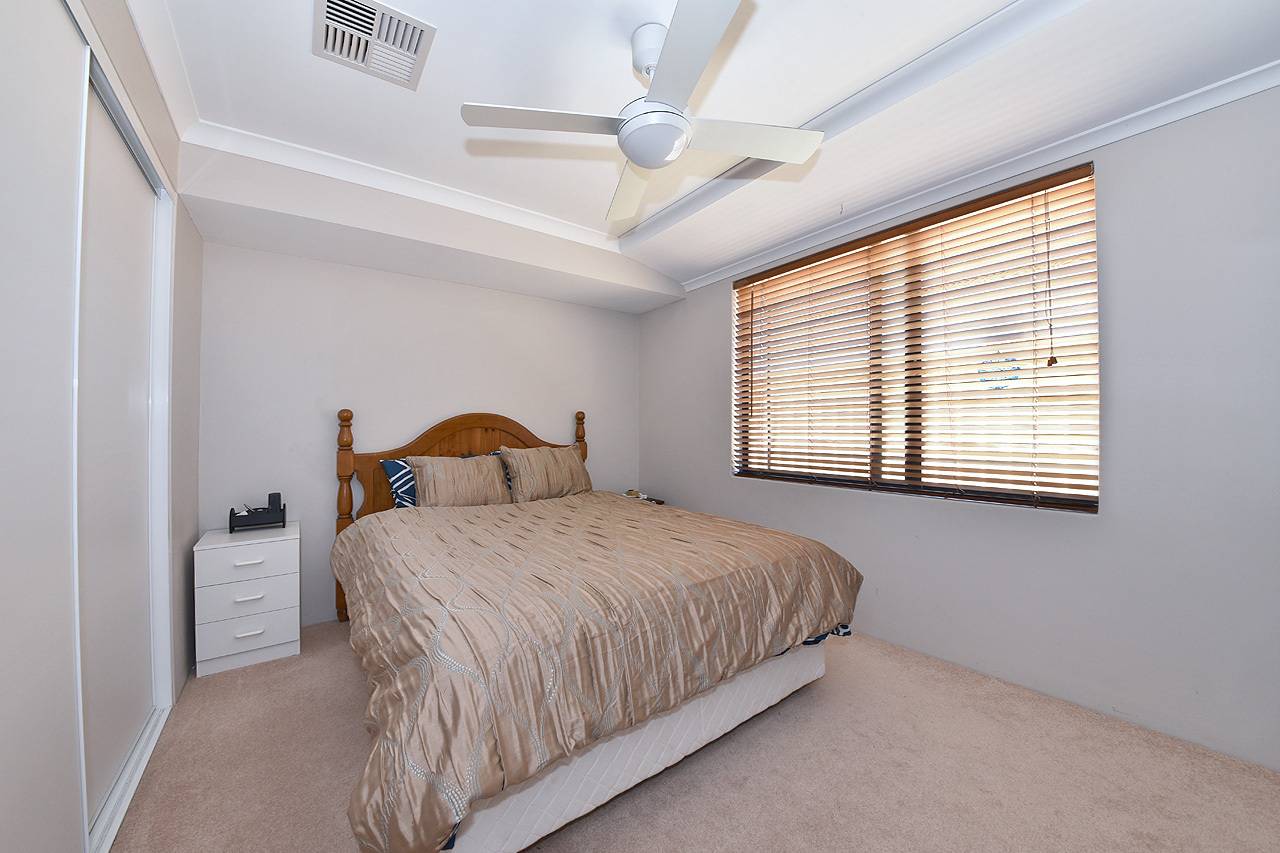 Spacious master bedroom with twin sliding door robe plus separate W.I.R. and ceiling fan