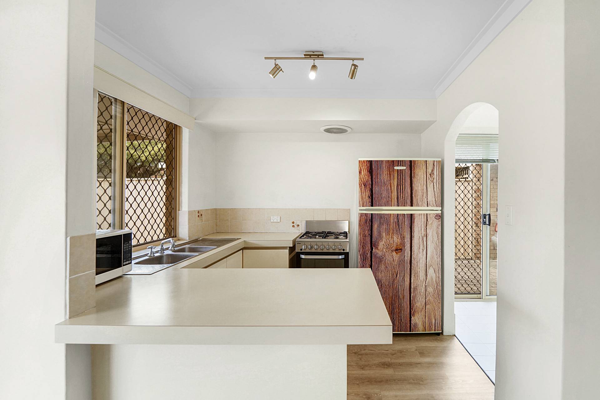 - Well-maintained kitchen includes a free standing 4 burner gas cooktop and oven, double sink and plenty of bench space