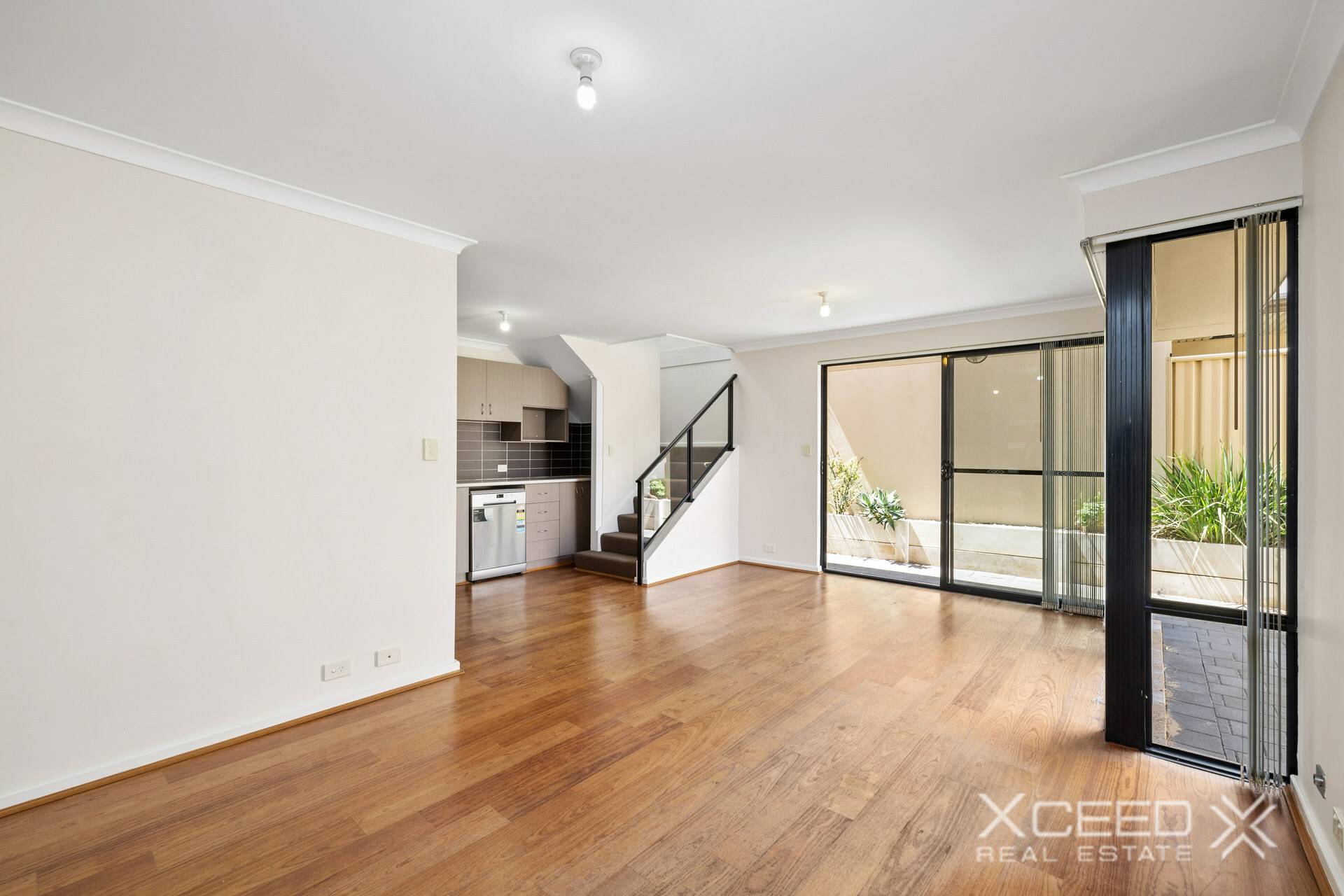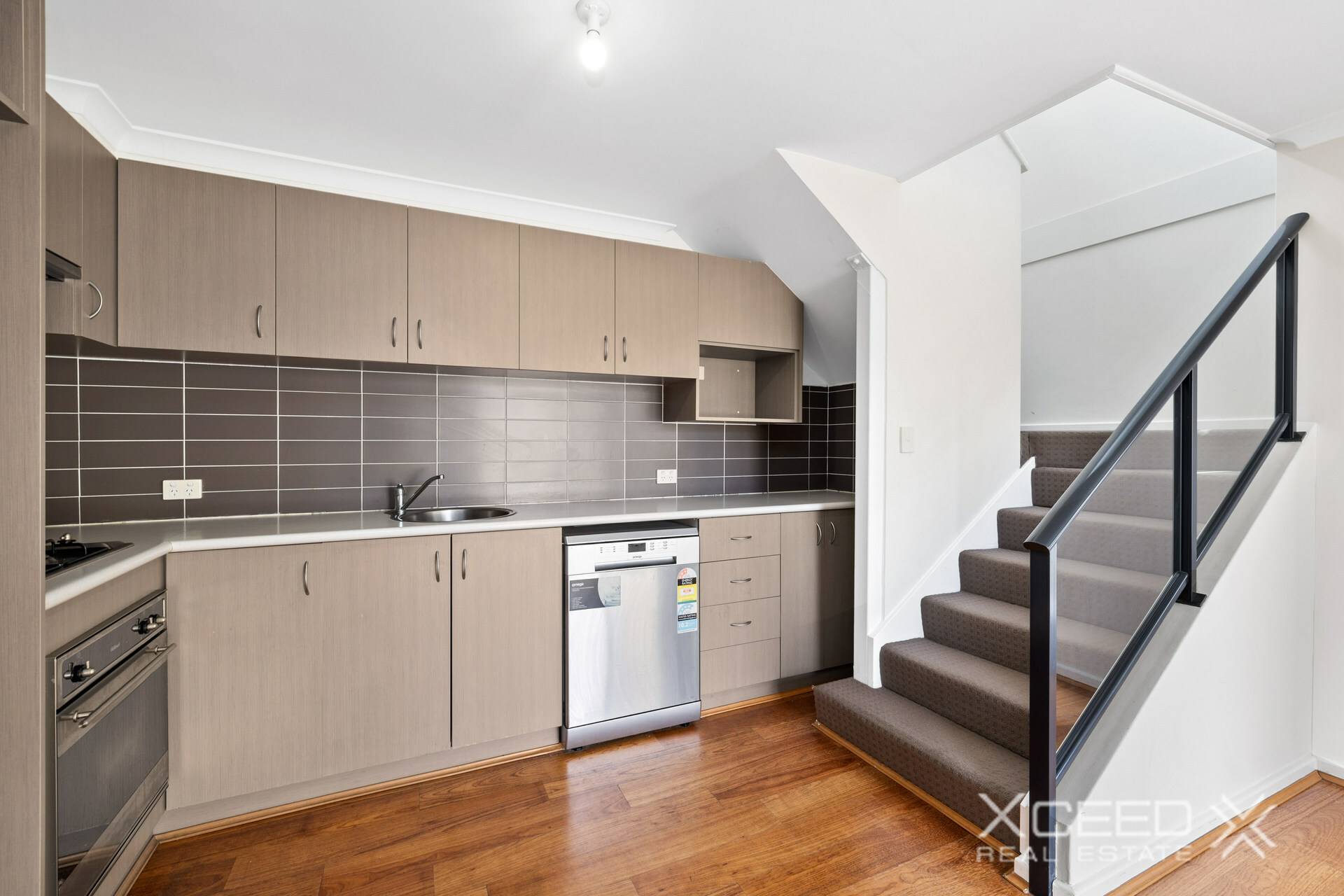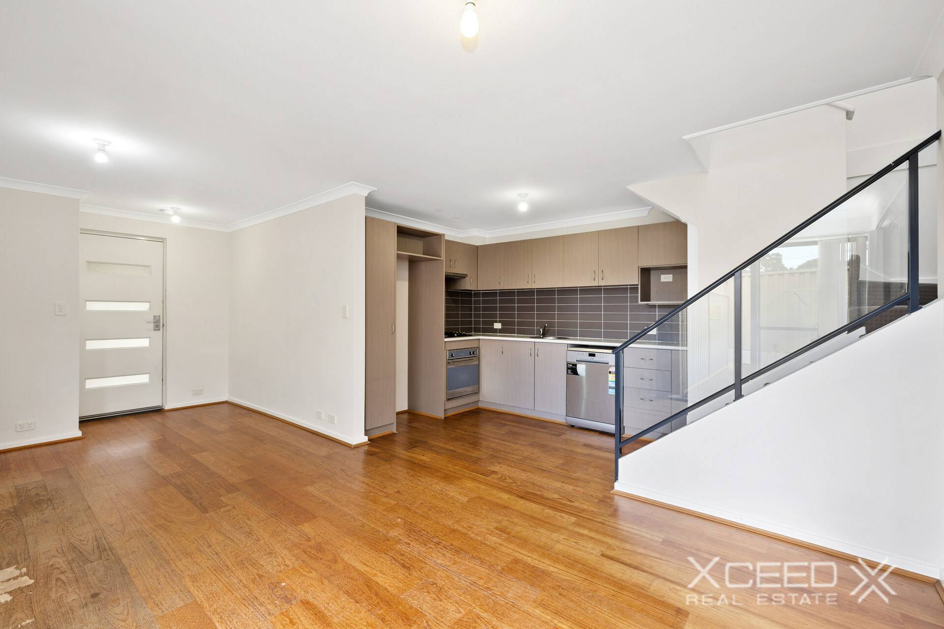 The lower level offers open plan lounge, living, dining adjacent the galley style kitchen with stainless steel appliances and ample cupboard and bench space.