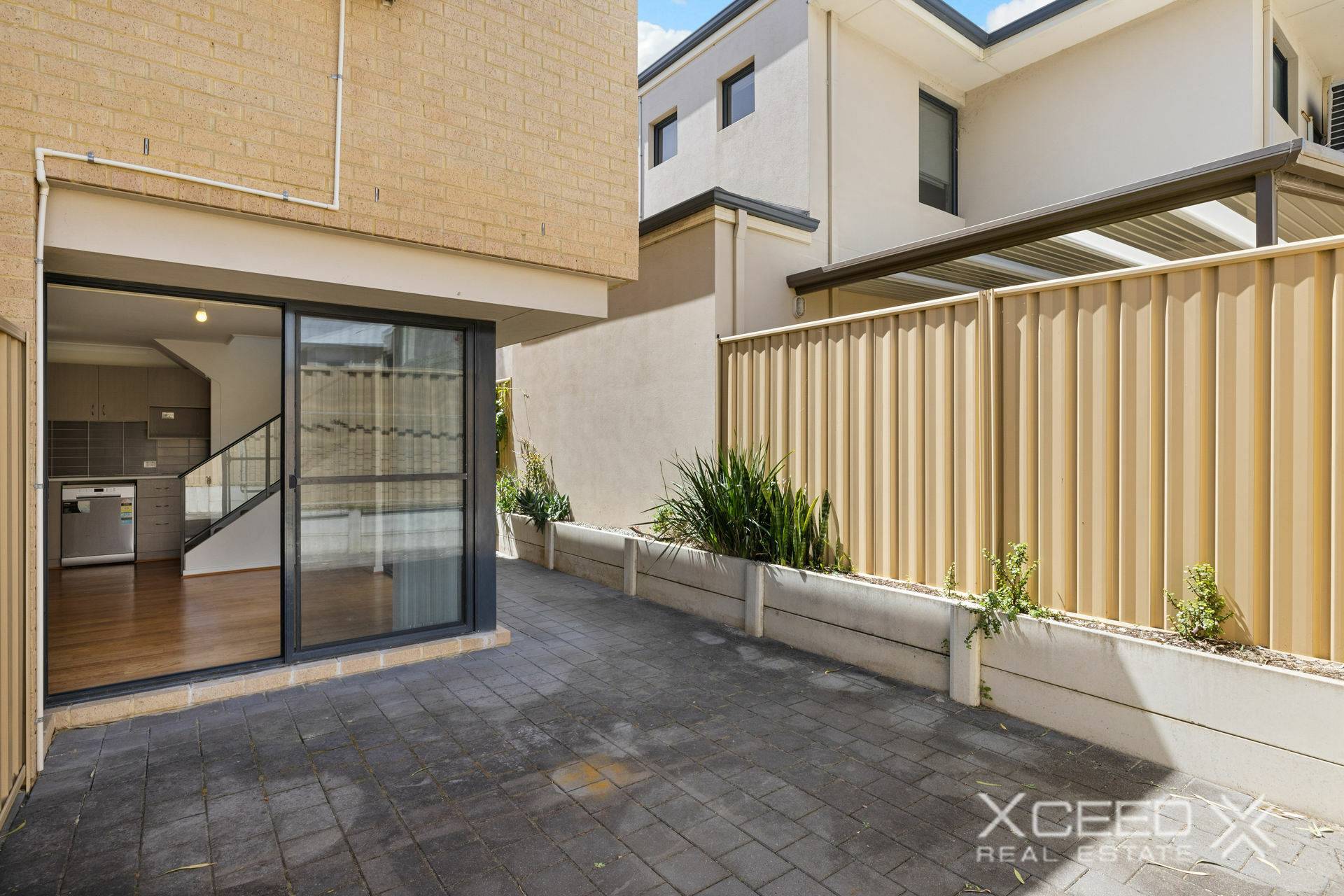 Sliding door lead to a good size private courtyard.