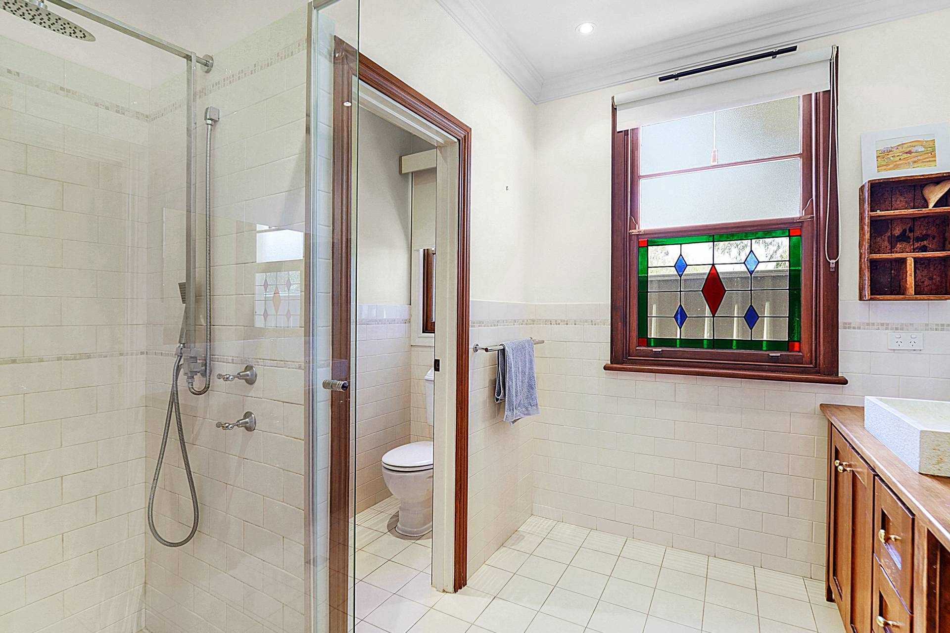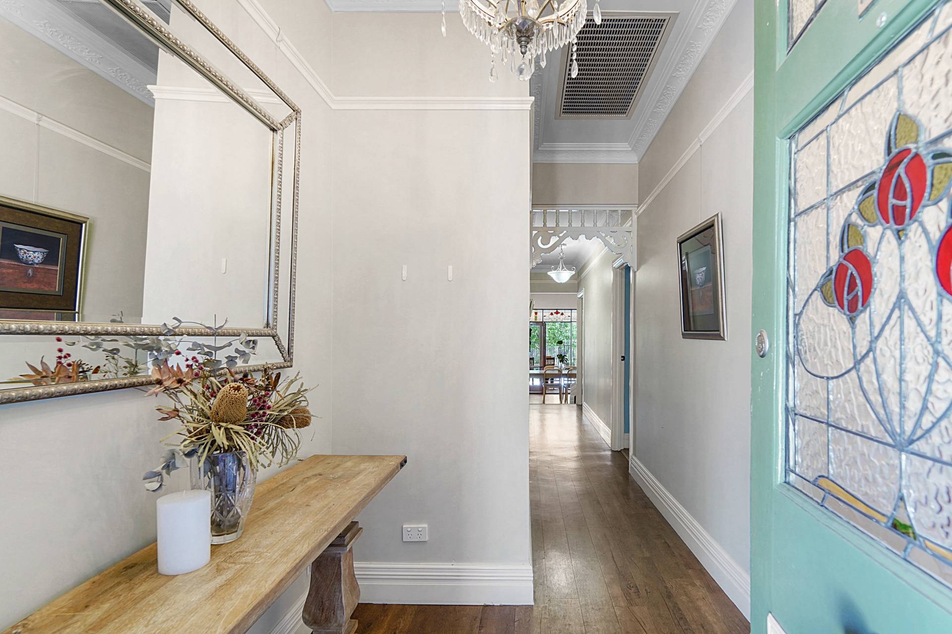 As you step inside, beyond the tuckpointed red brick and wraparound iron veranda, you'll be captivated by its charming features, from the stunning recycled leadlight door and window panes to the chandelier and architrave in the hallway. The romantic main bedroom features sash windows, an ornate ceiling rose, picture rails and a superb ensuite with timber vanity, marble basin, semi-frameless shower and separate WC.