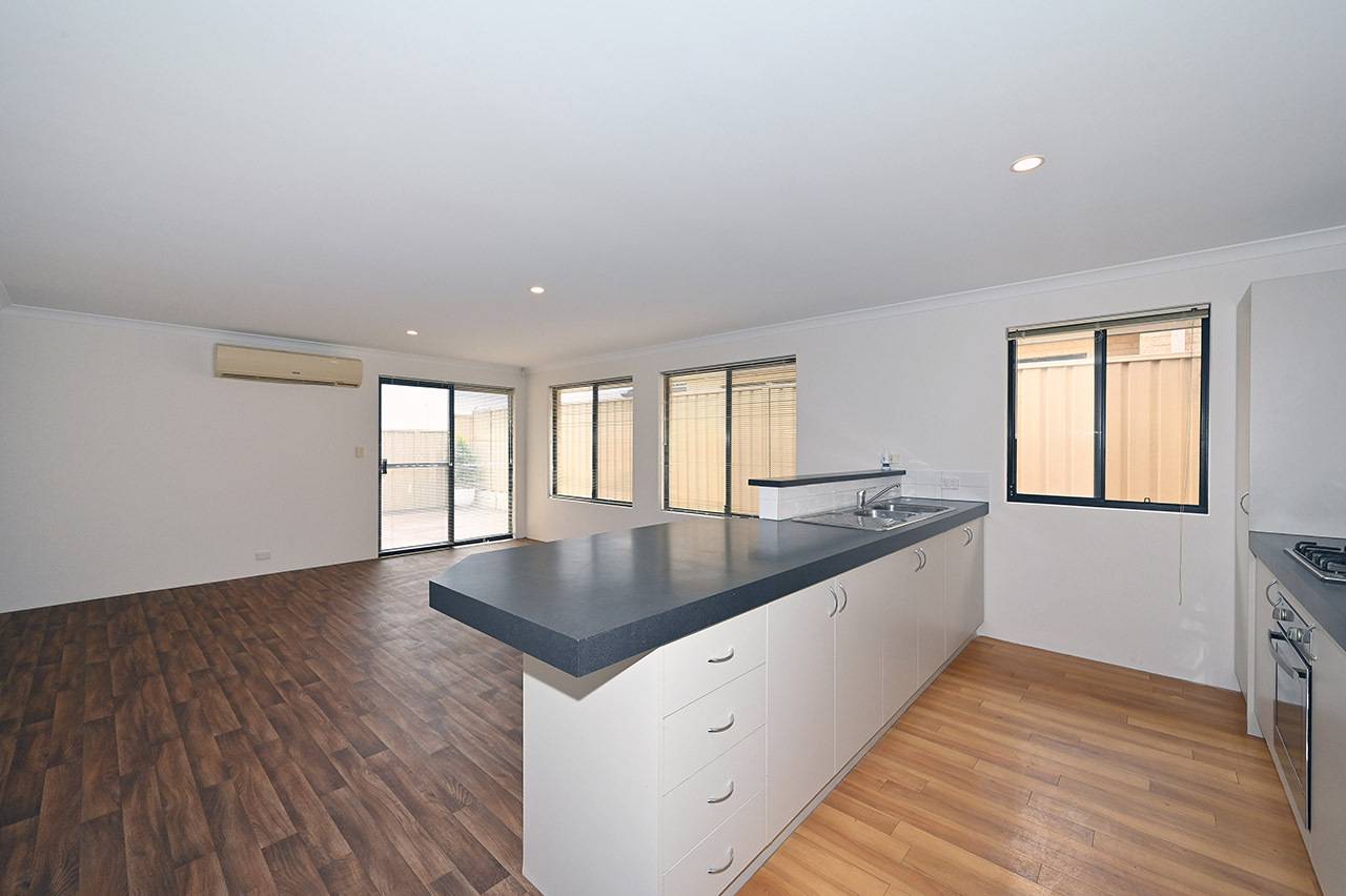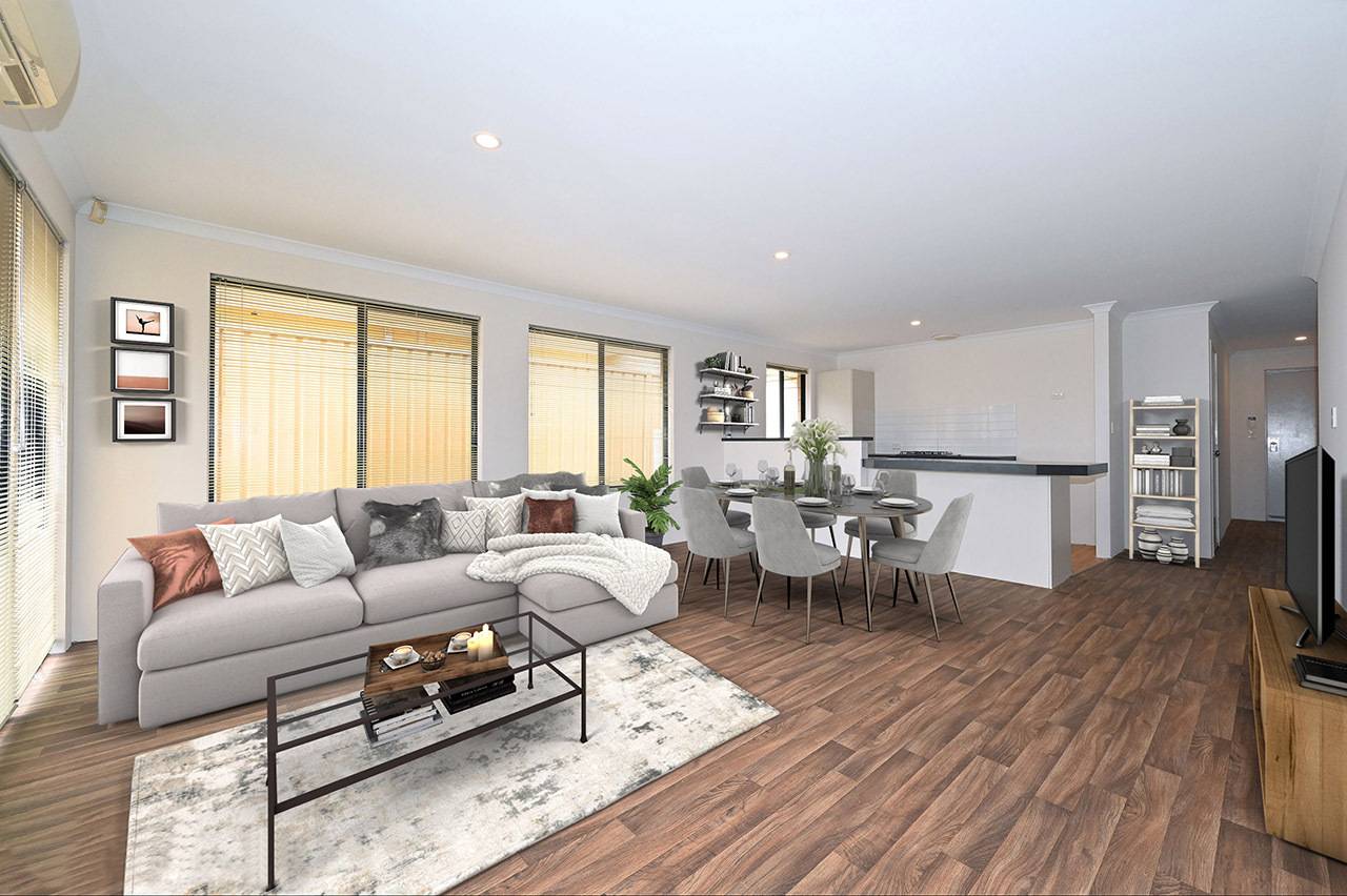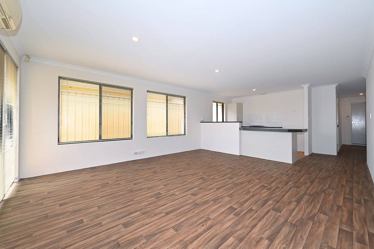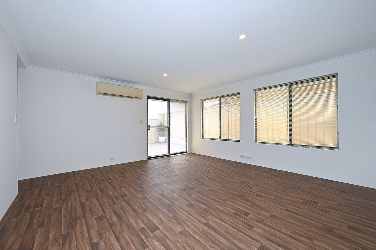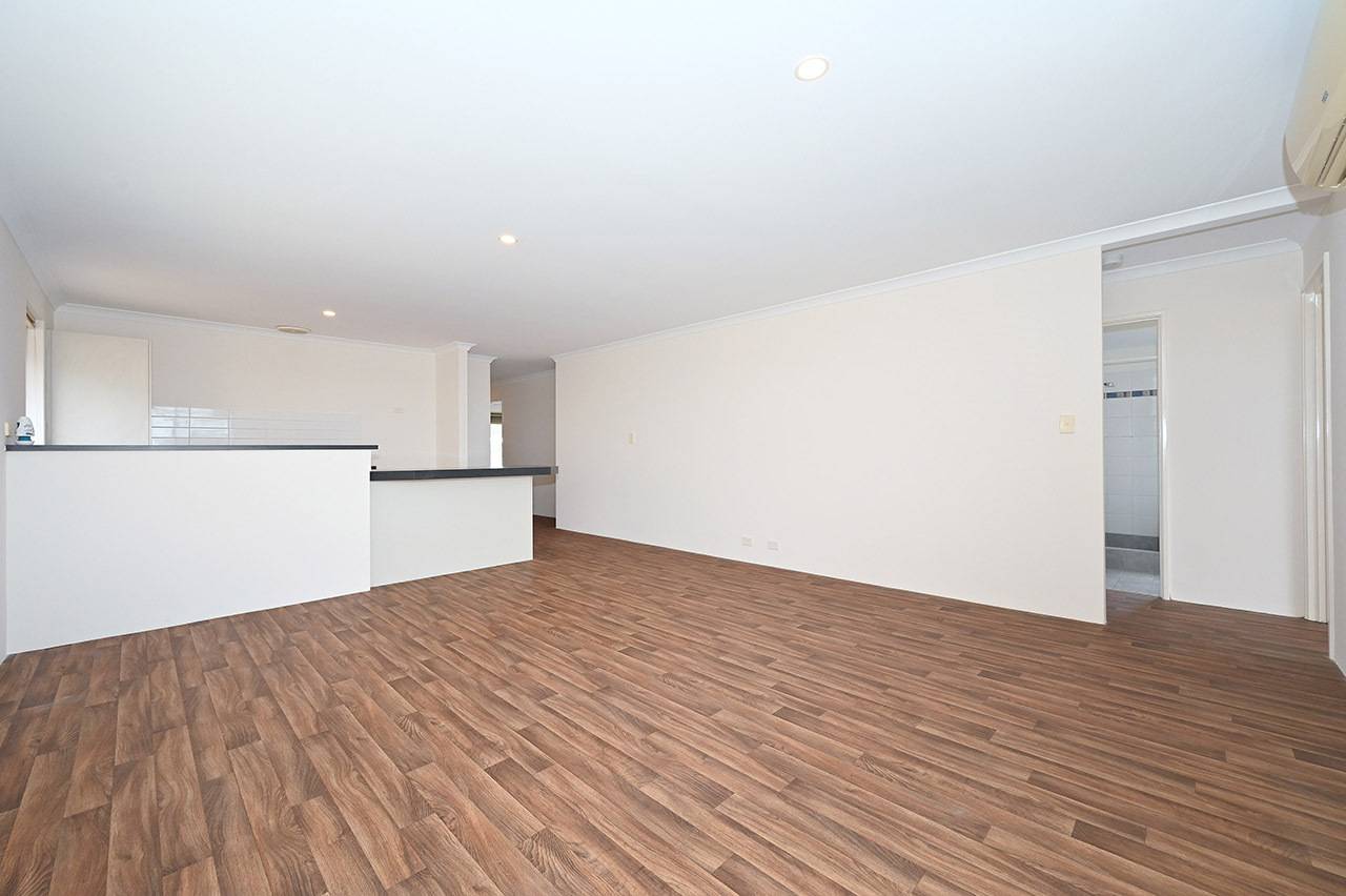 Open plan meals and living rooms with split system air-conditioning and sliding door access to the back yard