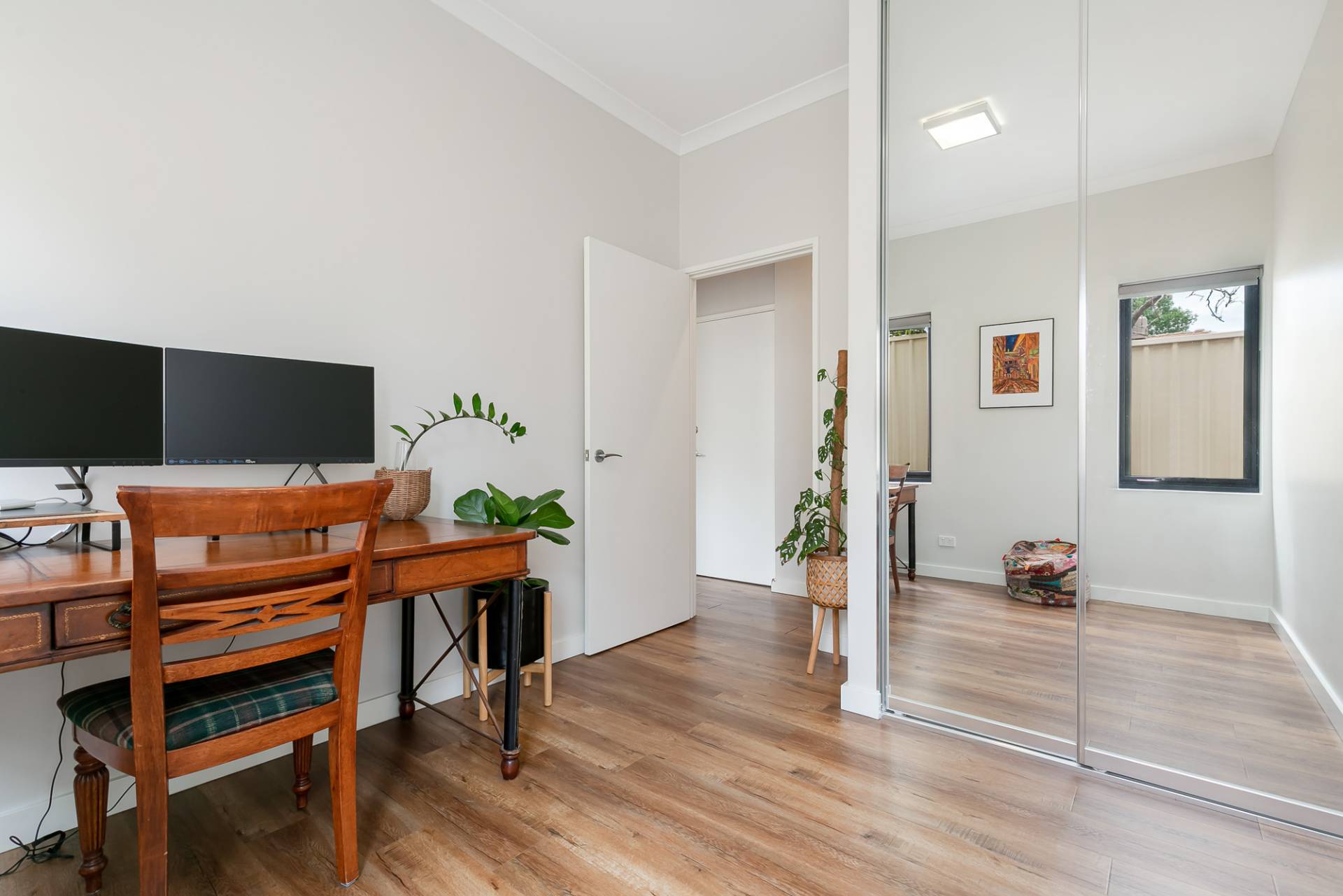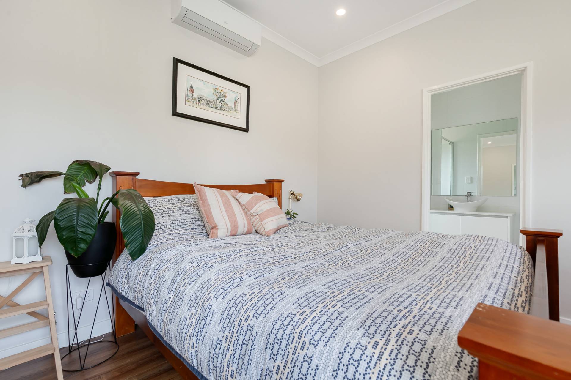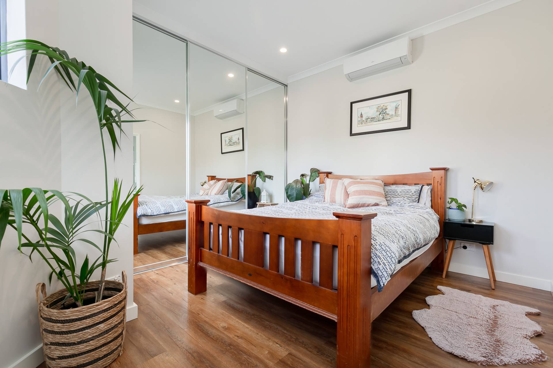 • Spacious master bedroom features reverse cycle air-conditioning with mirrored robes