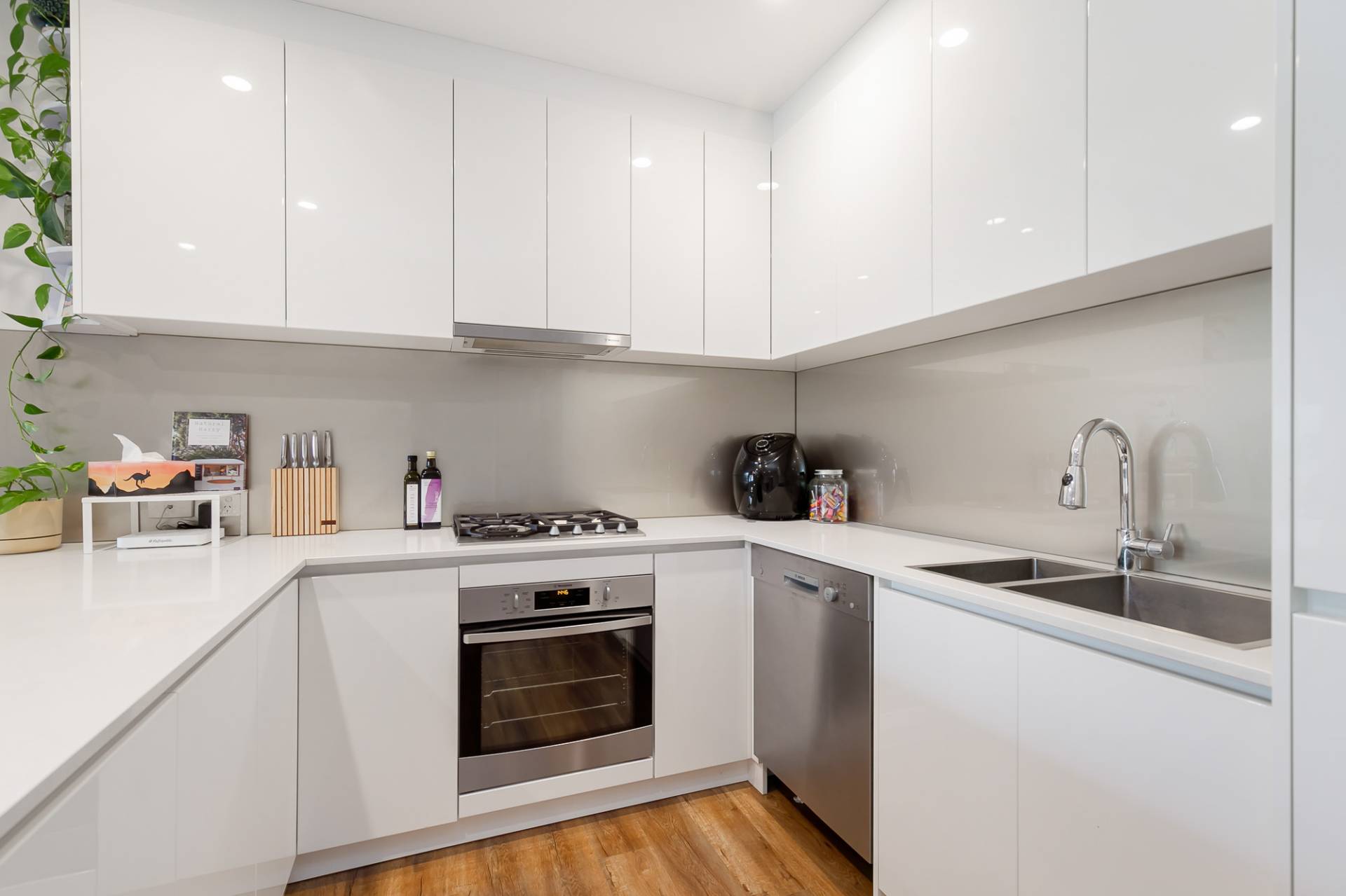 • High gloss soft closing cabinets throughout