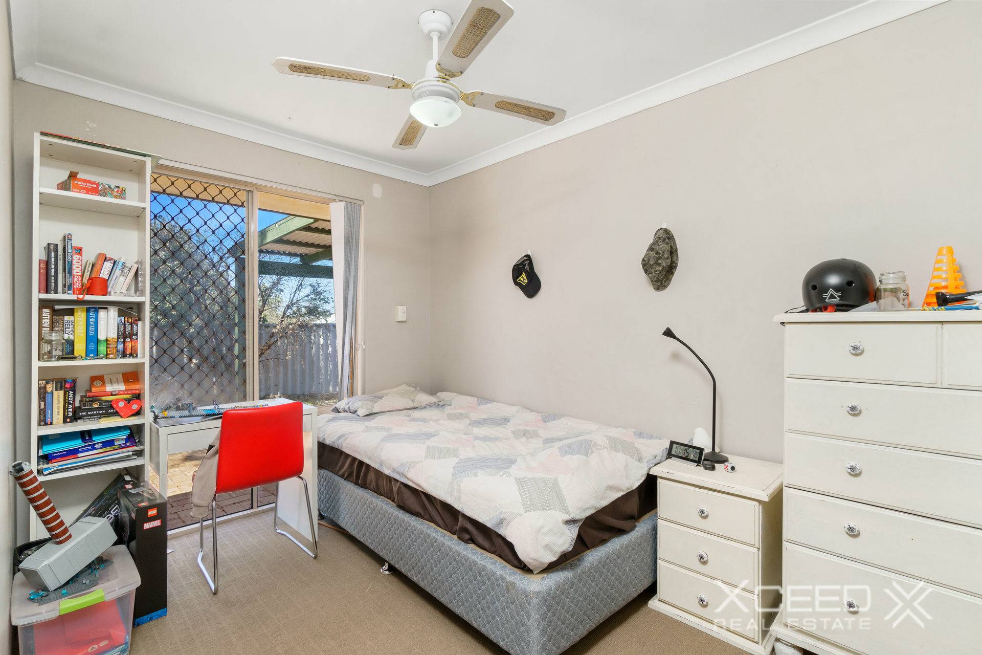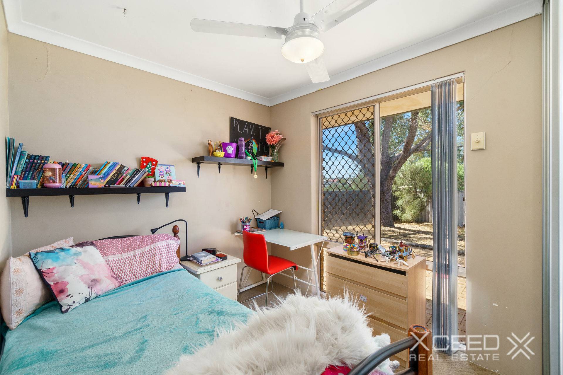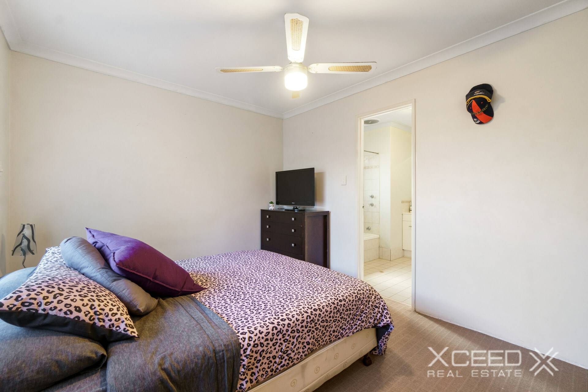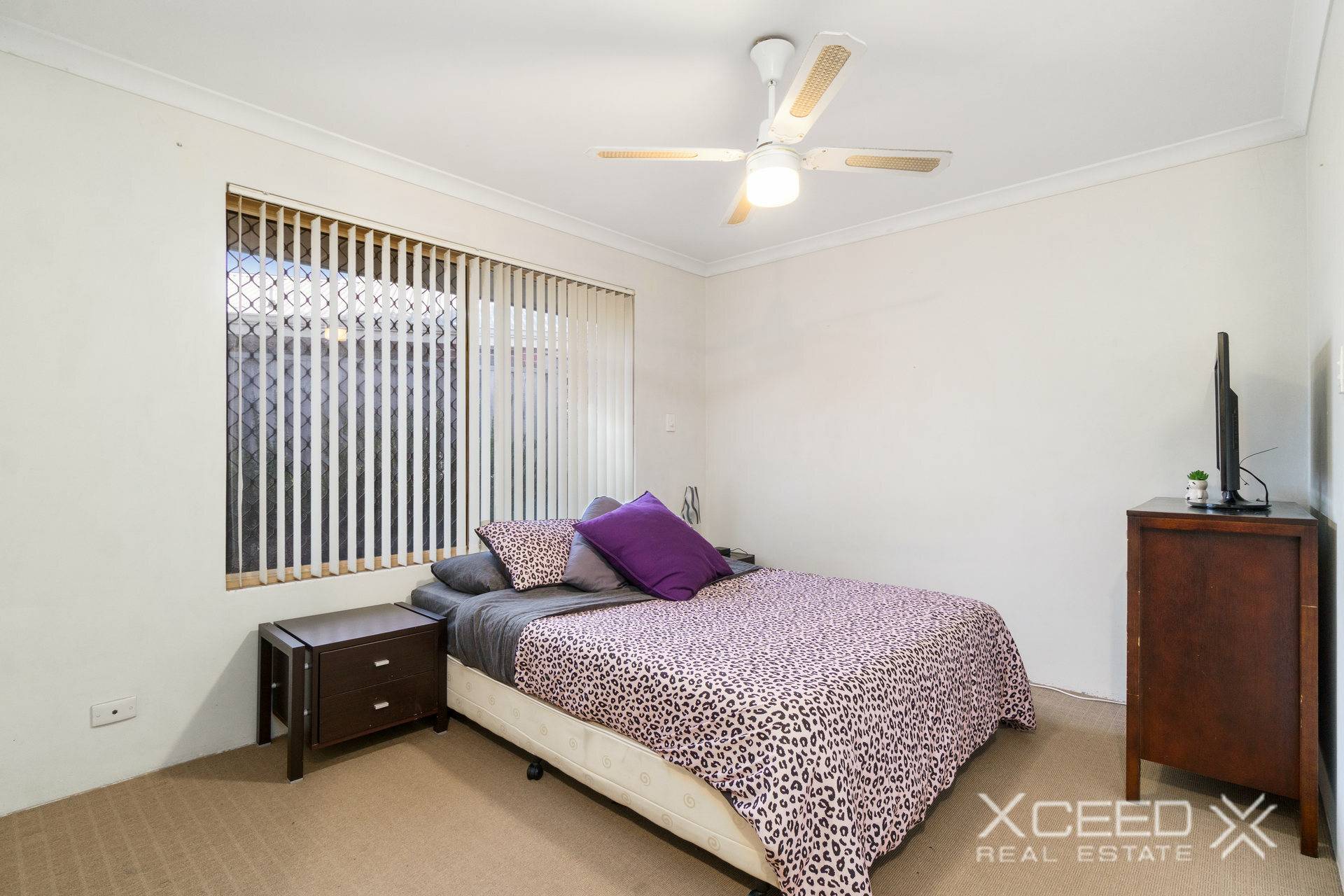The master bedroom features a walk-in robe and ceiling fan, while the semi-ensuite bathroom is convenient for busy mornings.