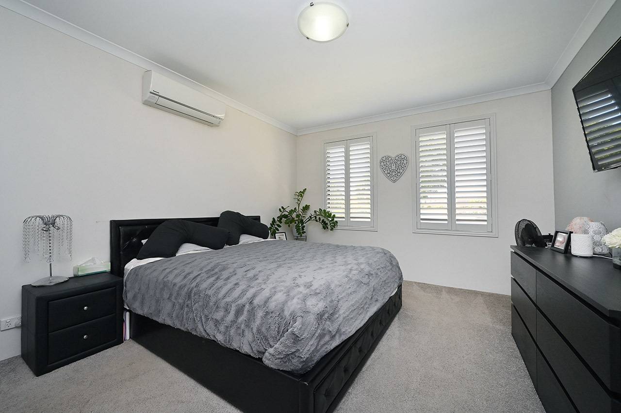 Spacious master bedroom with extra length walk in robe, plantation blinds, split system air-conditioning and TV point