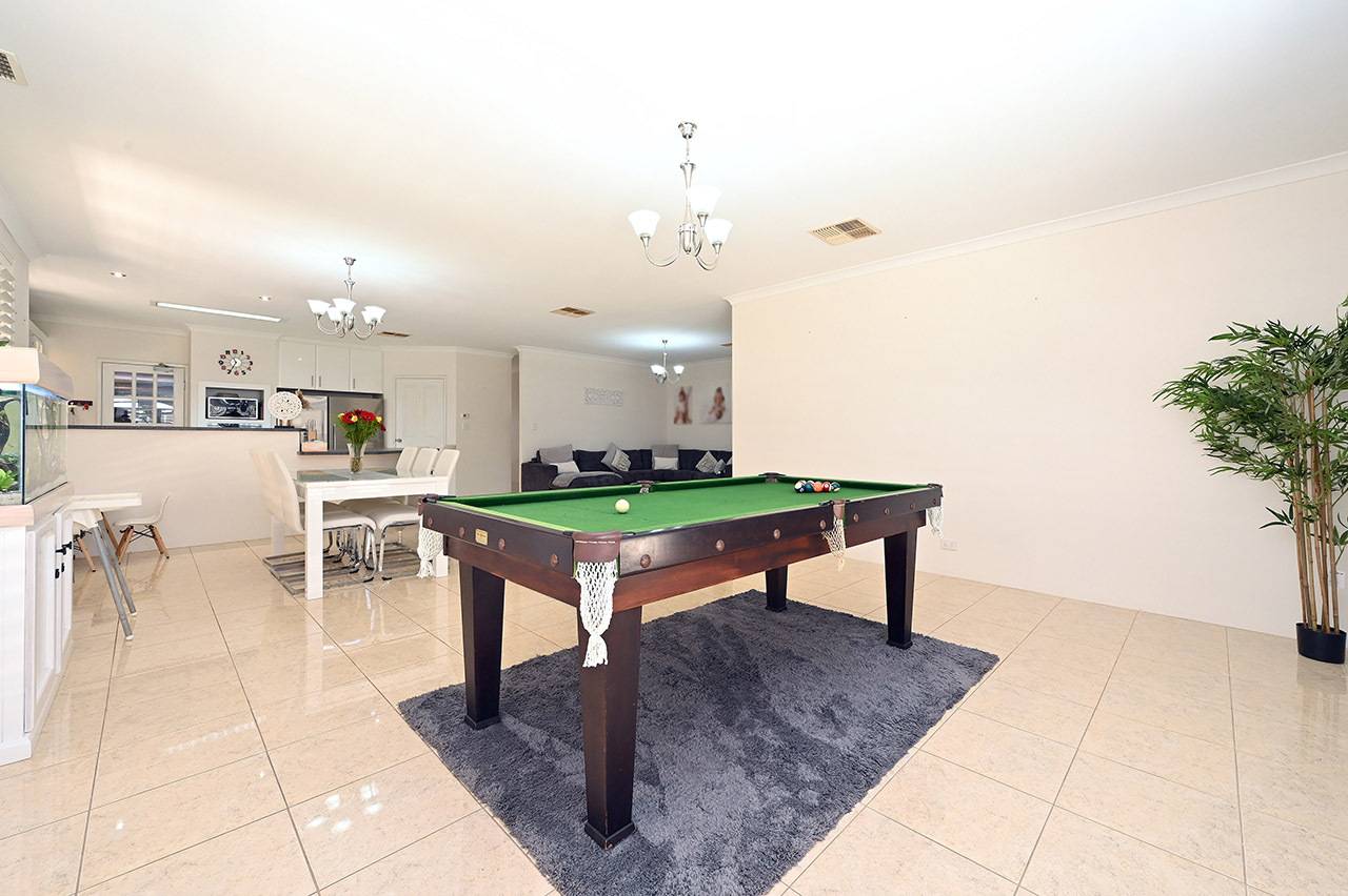 Expansive living areas including meals, family and game room with feature plantation blinds and sliding door access outdoors
