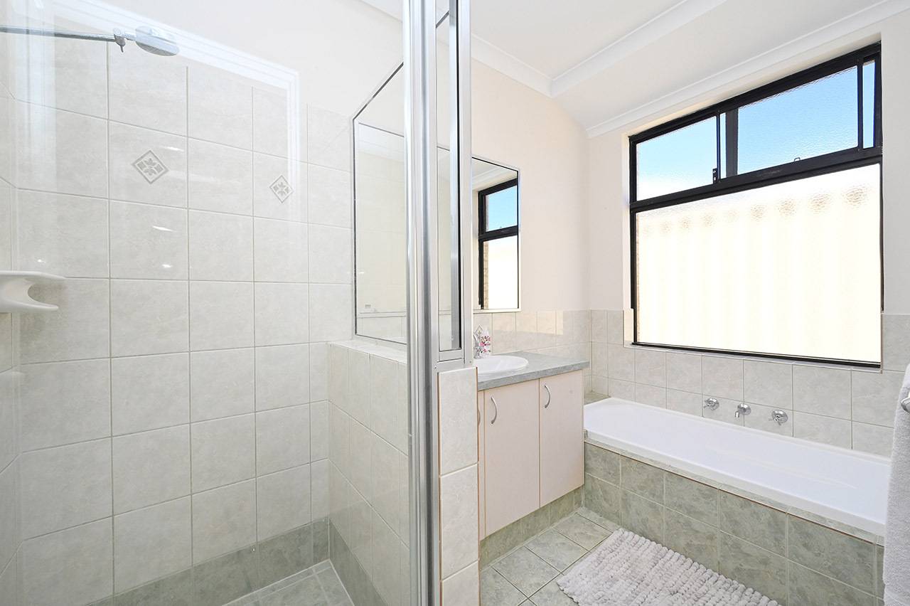 Spacious 2nd bathroom with vanity, bath, and shower with glass screen
