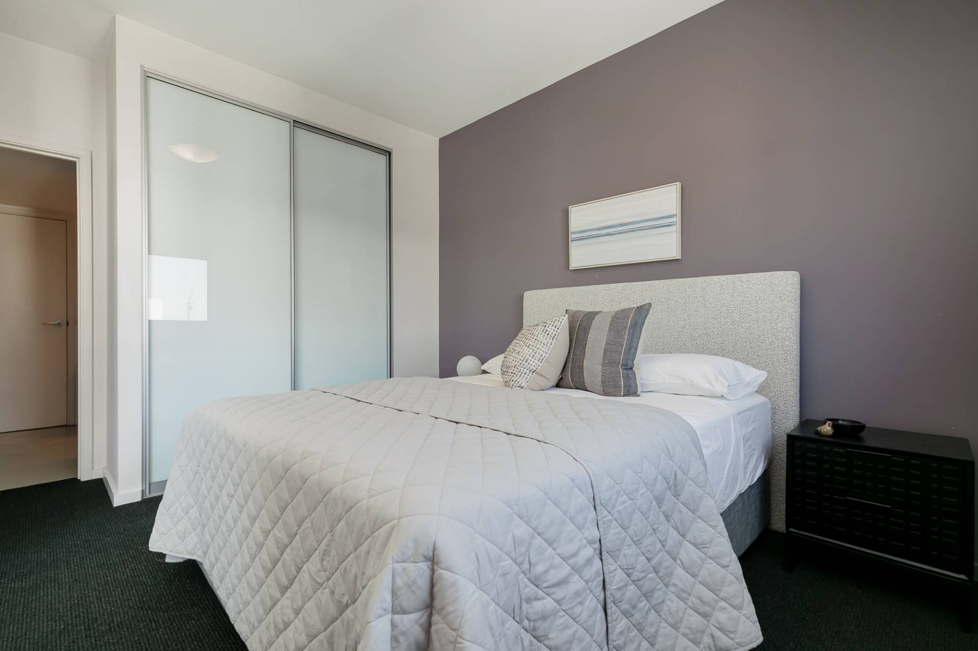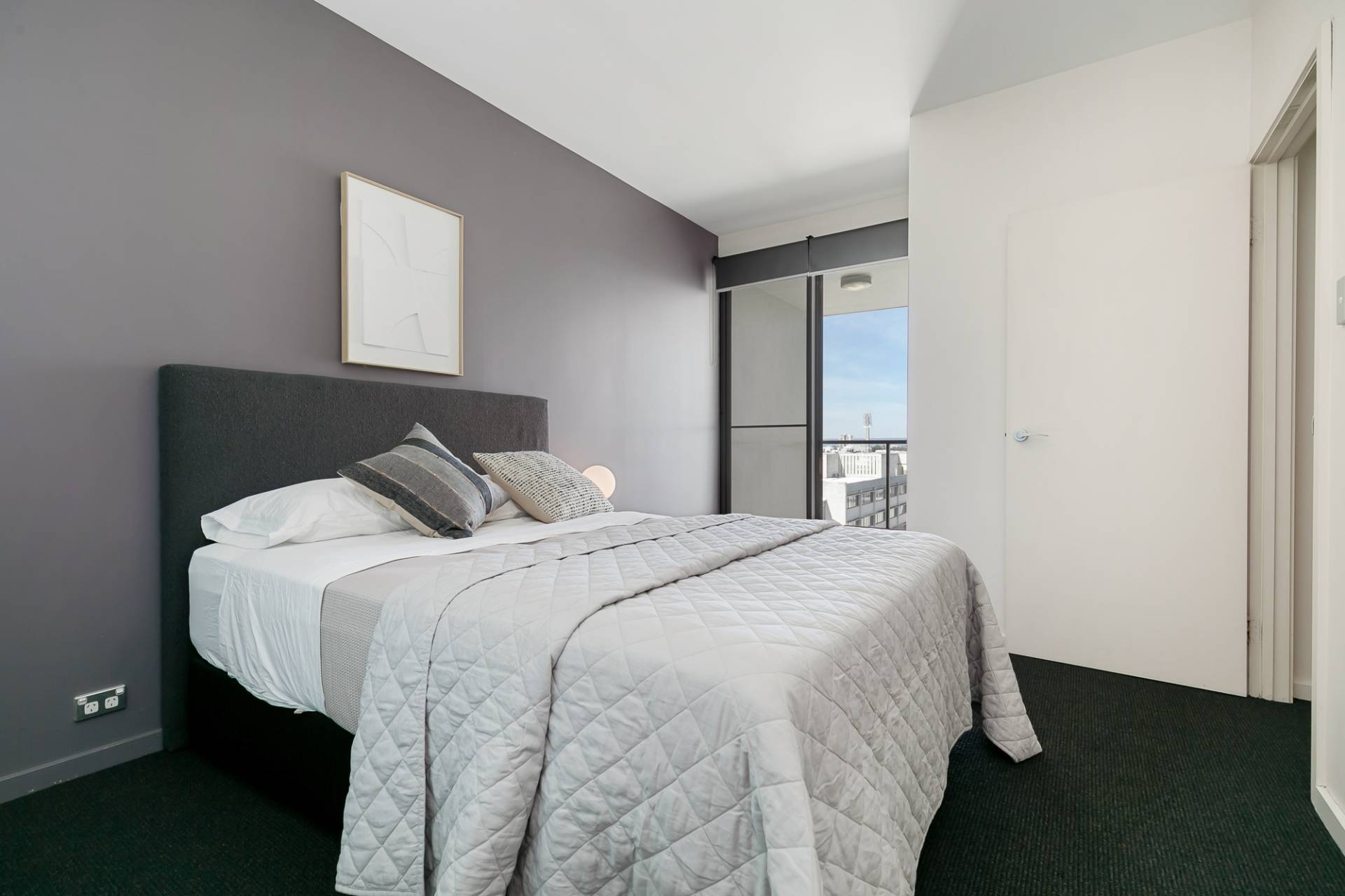 • Spacious second bedroom with built-in robe and sliding doors opening onto large balcony