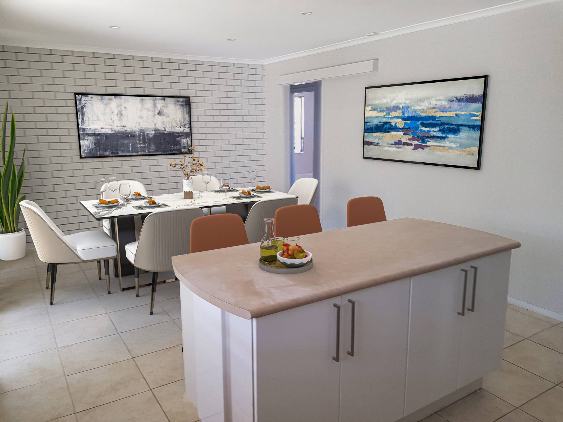 • Open plan kitchen with gas cooktop, island bench & dishwasher
