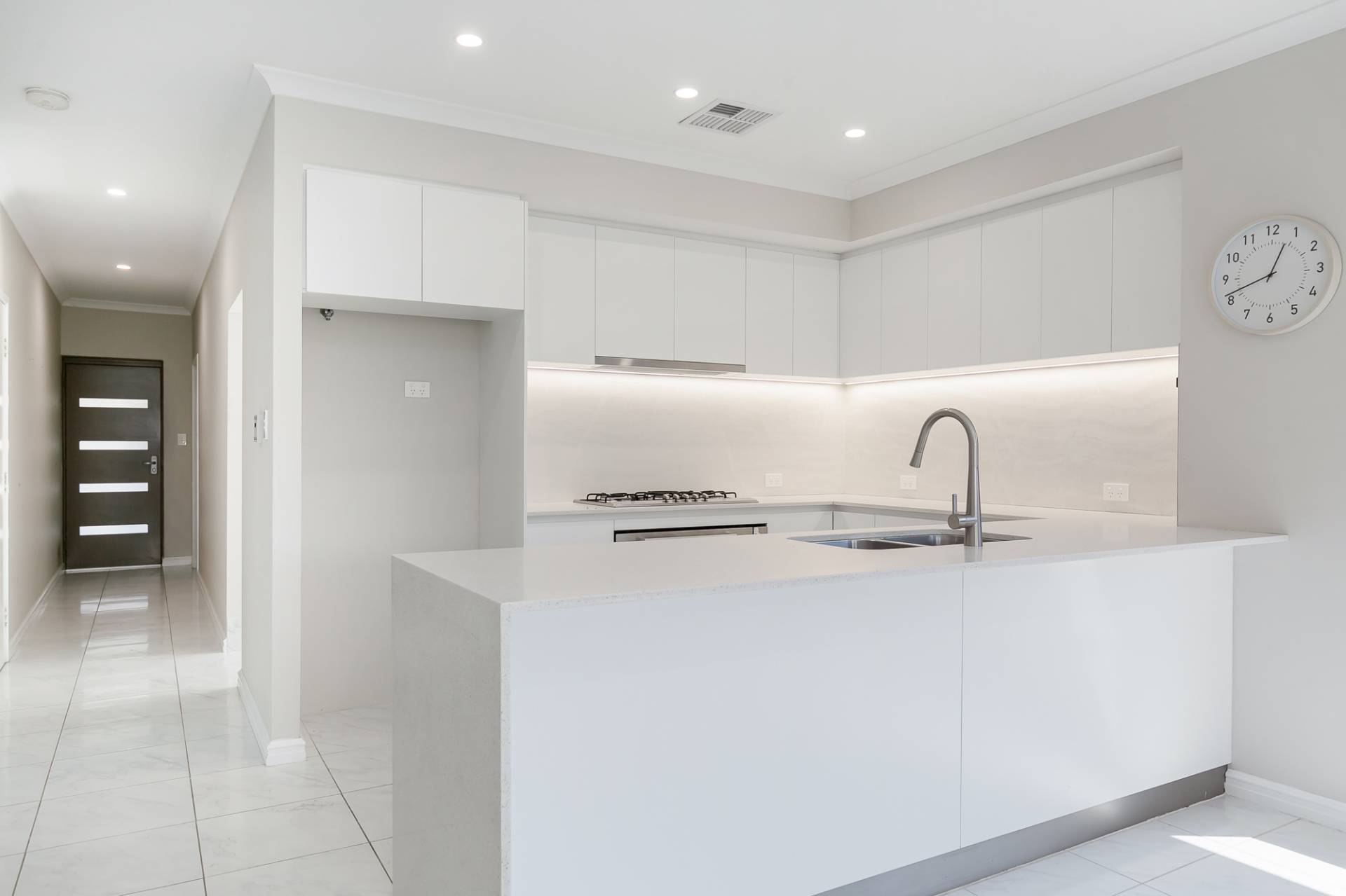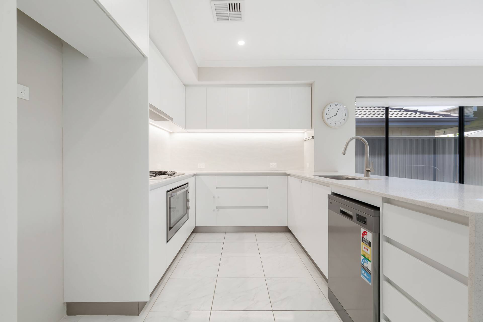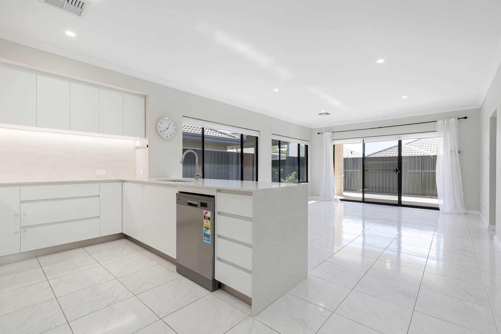 • Lovely open plan living, dining & kitchen.Sensational kitchen at the hub, offering an abundance of cupboard space, stunning stone benchtops including a captivating waterfall edge, a gorgeous splashback, stainless steel appliances.