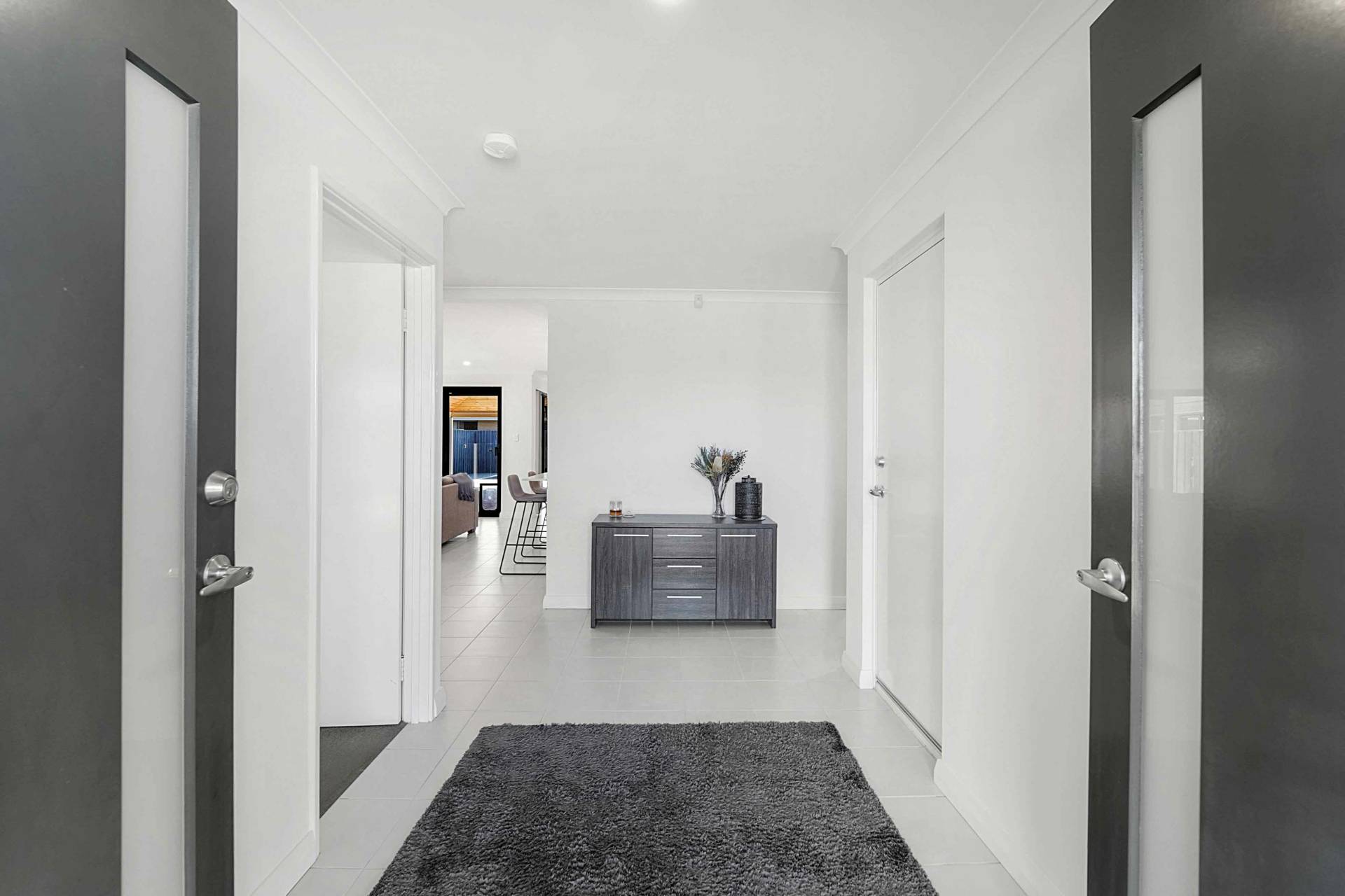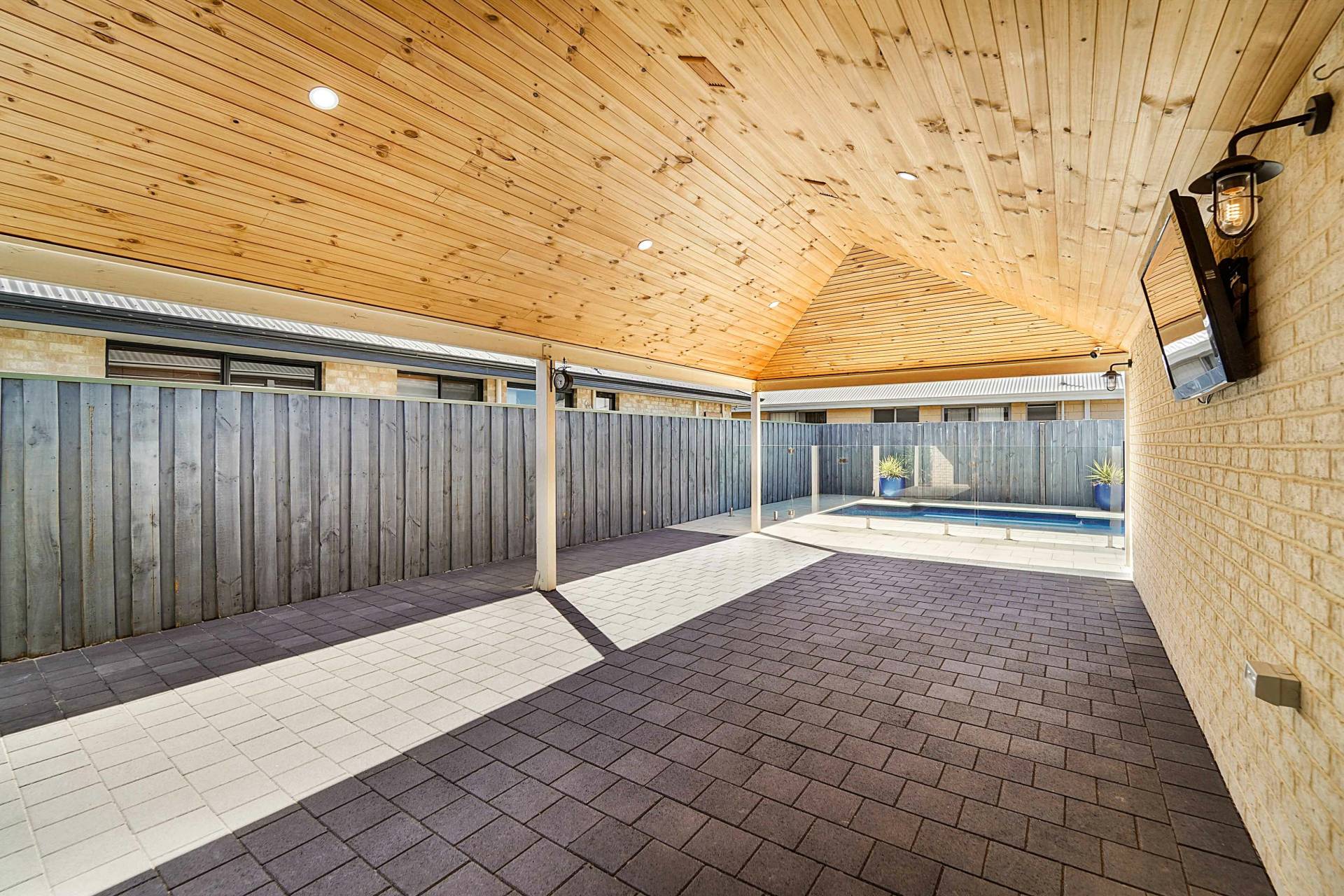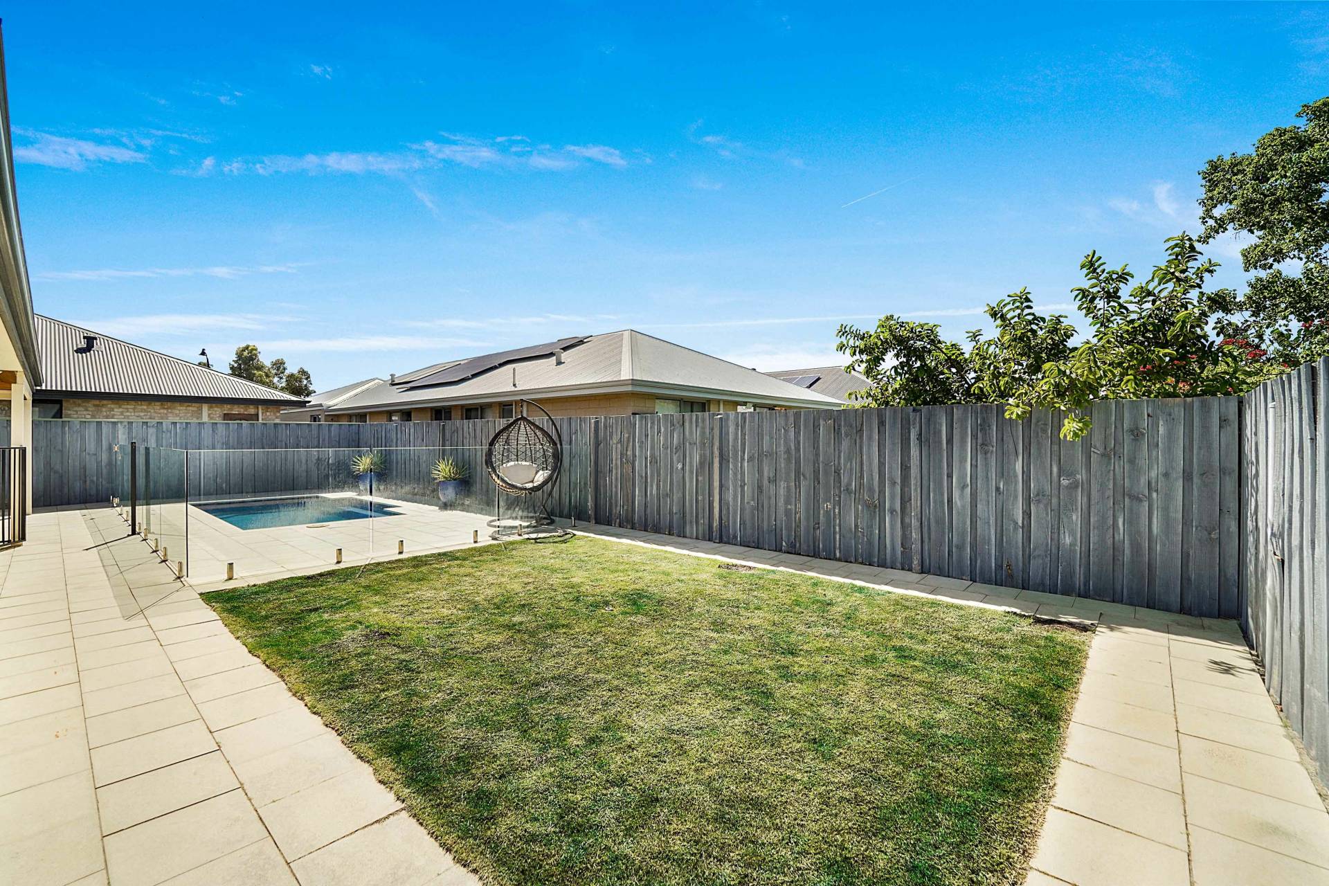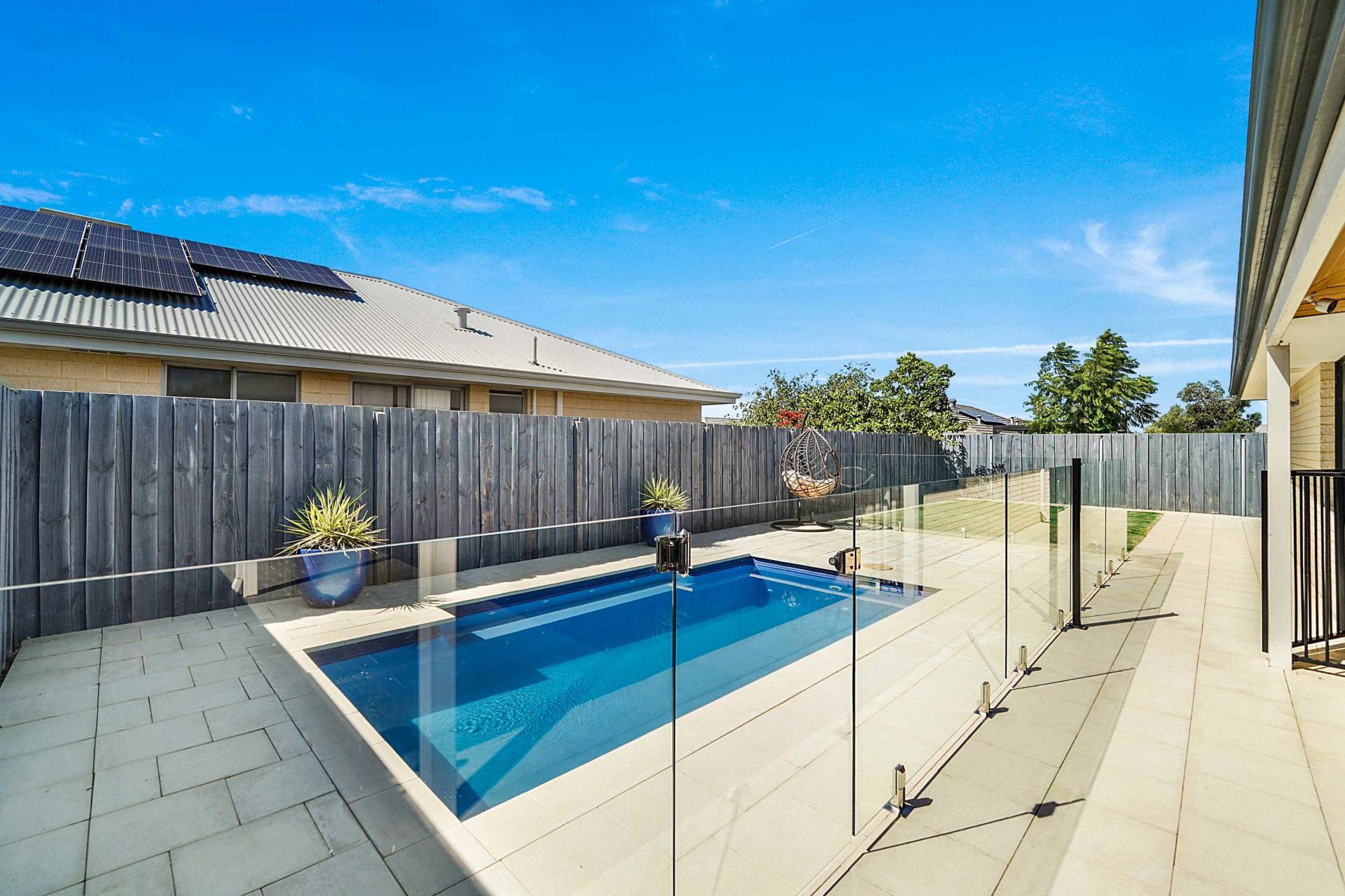 The kids have their own family-sized bathroom with a separate shower, bath and WC and there’s a sizeable separate laundry with direct side access. Outside, this home really comes alive, with summer time sorted under the vaulted timber alfresco ceiling, a shady area fronting the sparkling blue swimming pool and lawn area. Out the front, come home to a grassy verge and a double garage with roller door access through to the rear garden, ideal for boat or jet ski trailers, or as a third vehicle parking space.