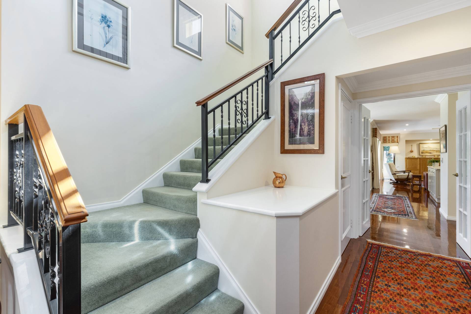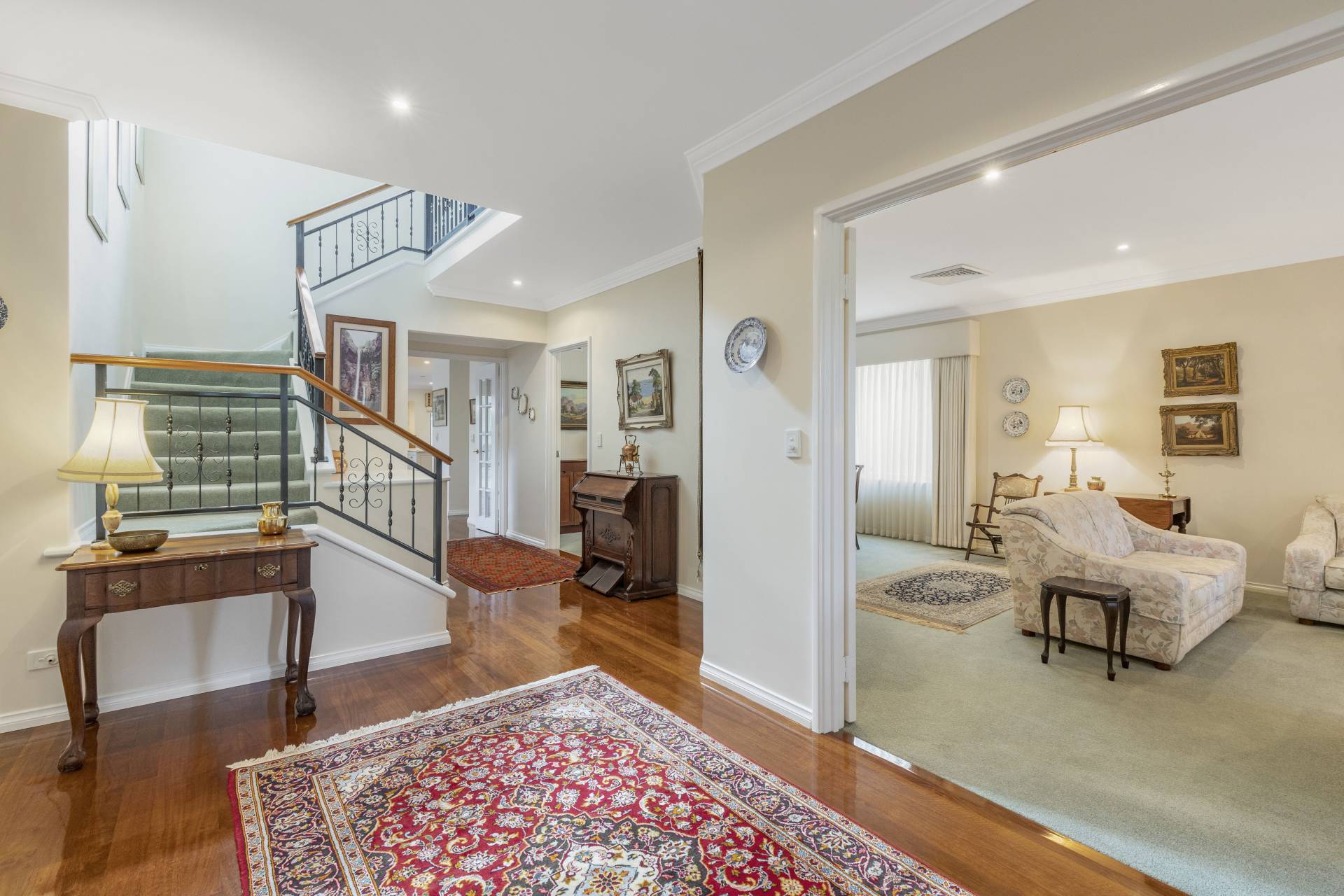 A double door entry welcomes you to a large reception foyer featuring gleaming polished jarrah floor boards and a sun drenched staircase. A spacious living and dining/music room adjoins the entry via double timber and glass French doors. These beautiful timber floors flow into the open plan family/meals and kitchen zone that seamlessly opens onto a fully enclosable alfresco area featuring bi-fold glass doors and an electrically retractable awning - all overlooking the north oriented established rear garden.