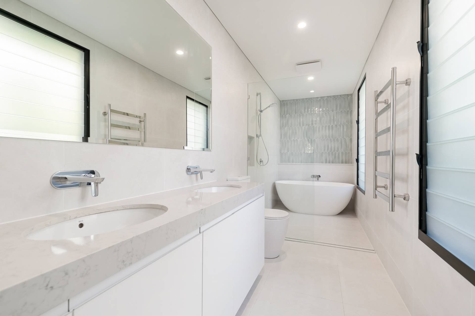 • King-sized main bedroom with excellent built-in wardrobes and dressing table and luxuriously appointed ensuite boasting double vanities,