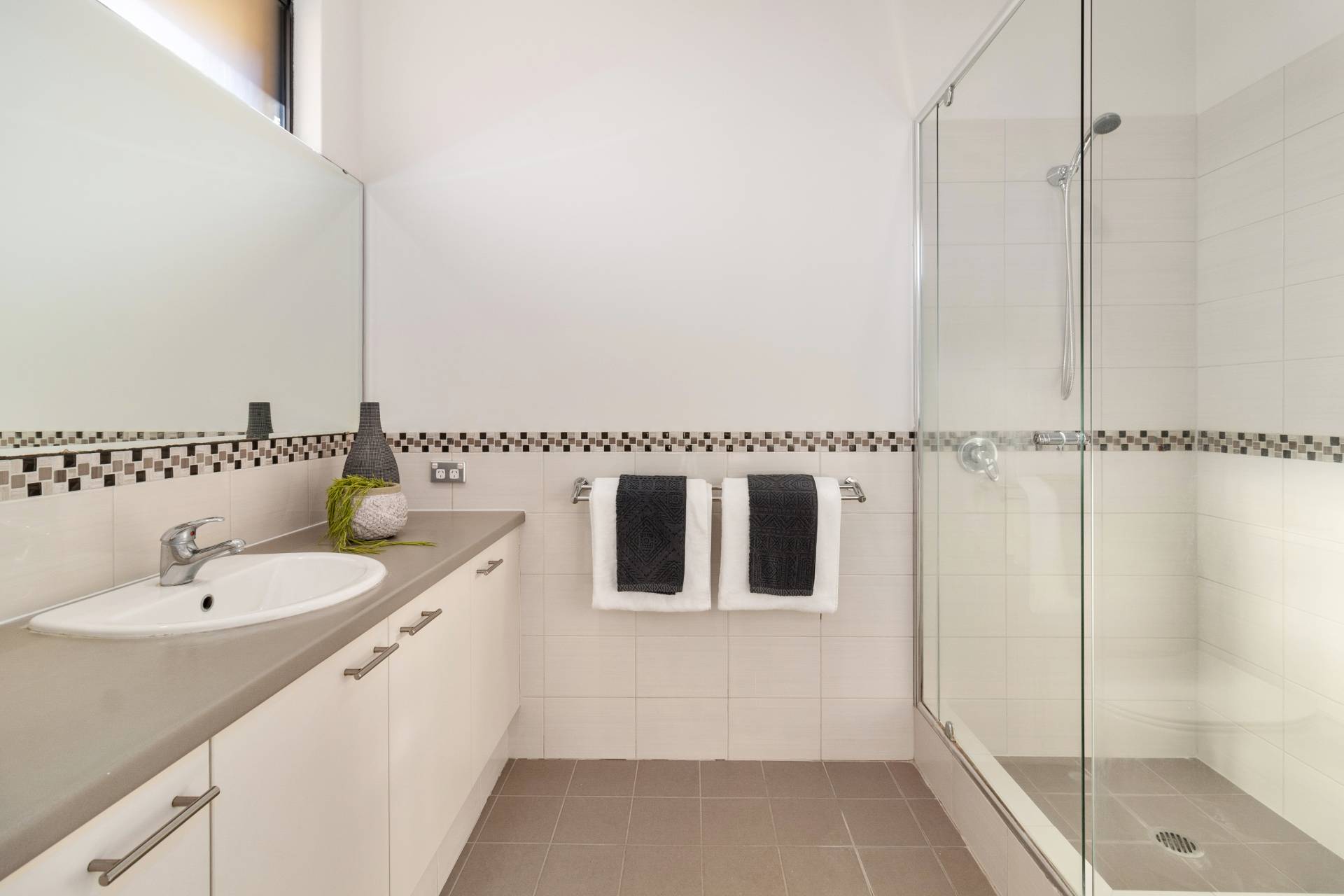 The home is designed to maximize natural light with LED downlights and roller blinds throughout, creating a cozy and inviting atmosphere. The fully-tiled bathrooms are modern and sleek, providing a sense of luxury and sophistication.