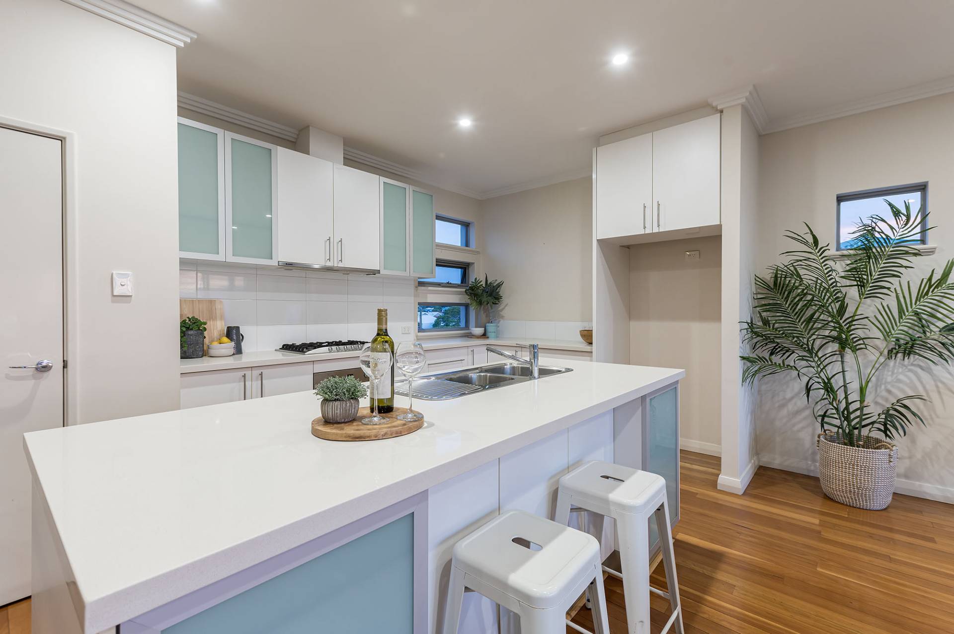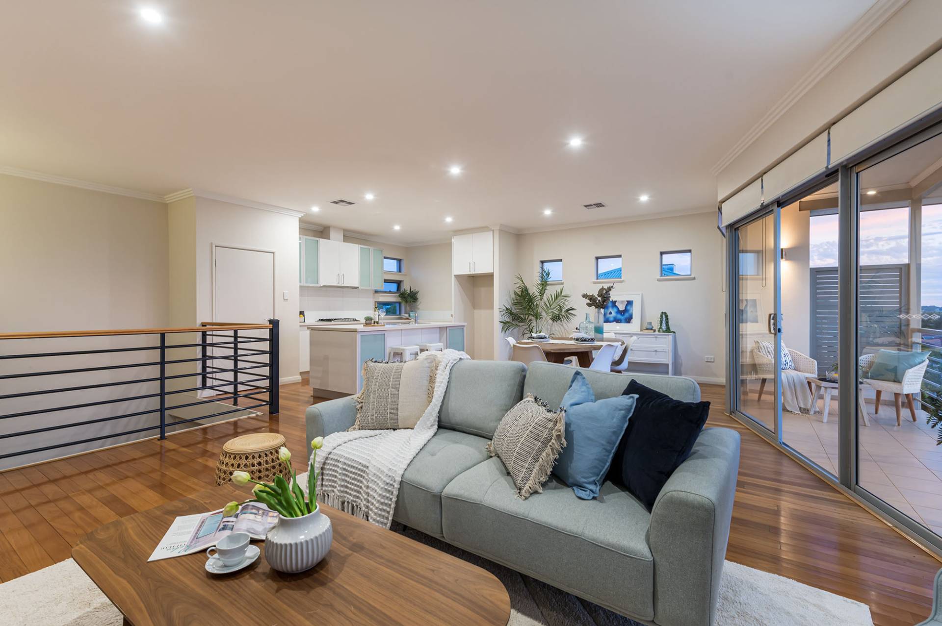Ascend the staircase to the upper level, where the impressive open-plan living area includes a family, dining, and kitchen space, with high ceilings and abundant natural light. This remarkable area opens onto a west-facing balcony, which captures the refreshing sea breeze and provides stunning sunset views. The deluxe kitchen, boasting stone benchtops, an island bench, and stainless steel appliances, overlooks the entire living area and will keep you connected while you cater for family and guests. Also upstairs, the main bedroom is a haven for busy adults, featuring a private balcony, a walk-through robe, and an ensuite with a shower, double vanity, and a separate WC/powder room.