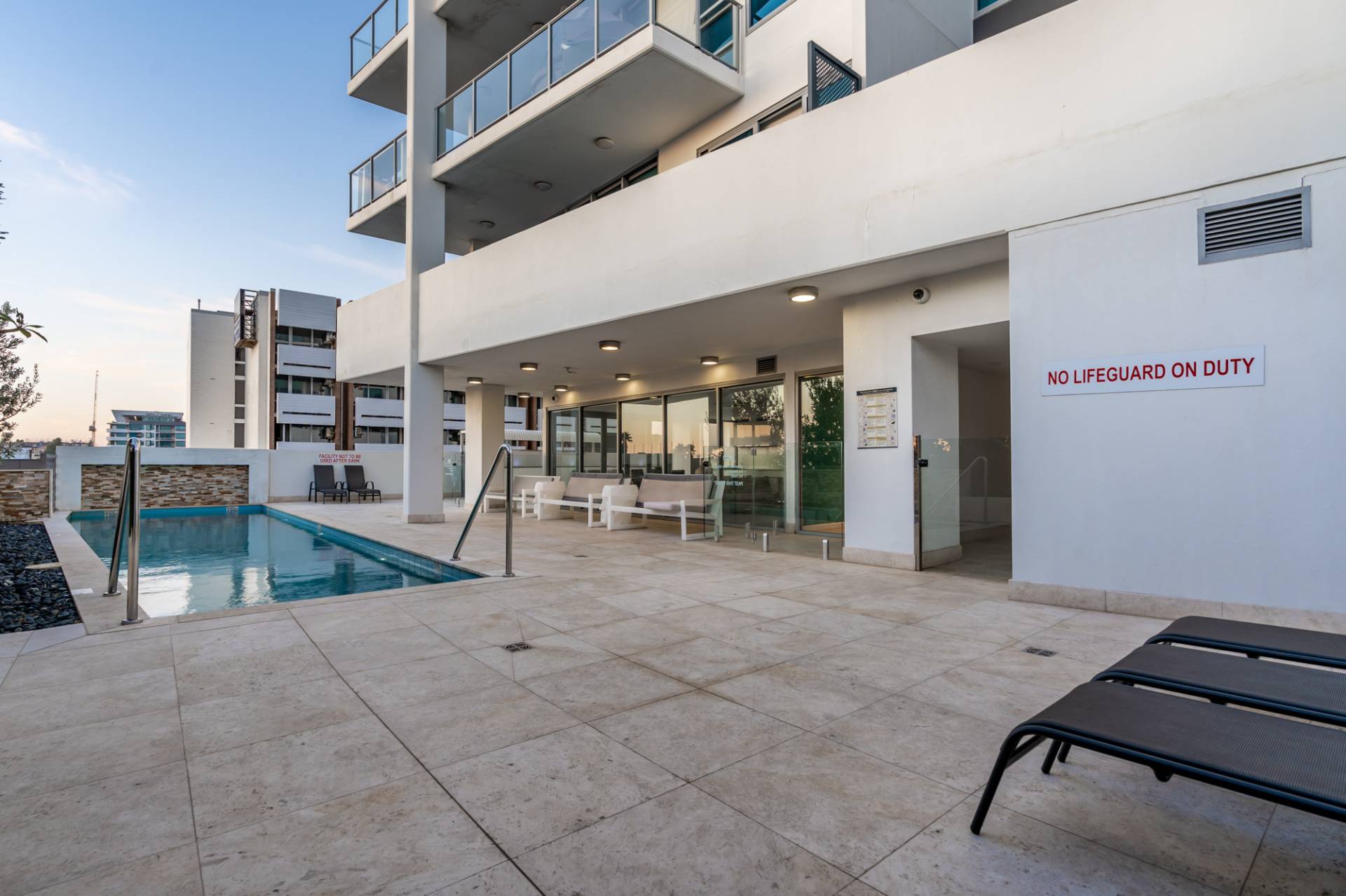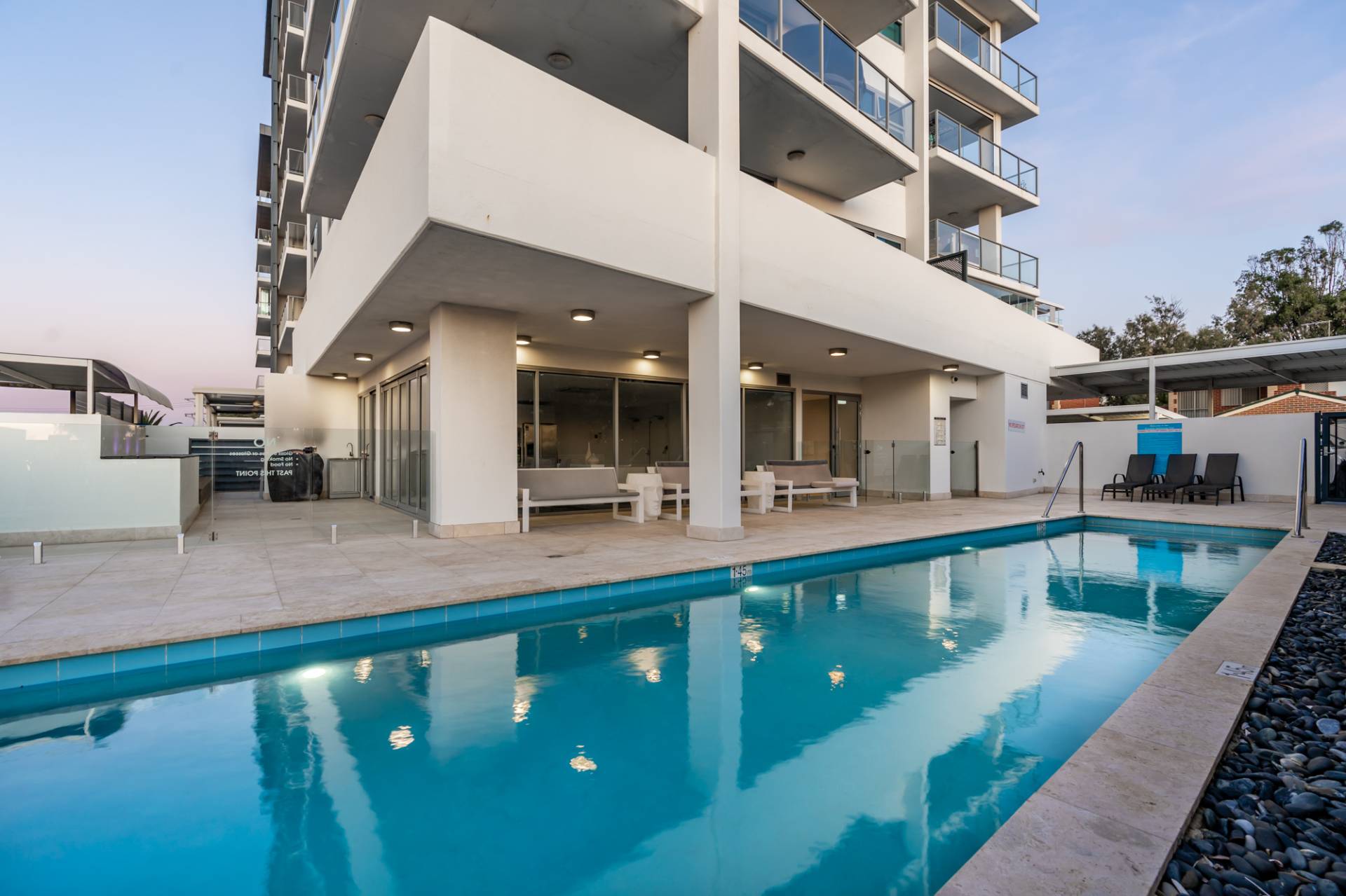 - Complex includes gym, swimming pool, common lounge, and barbecue area.
