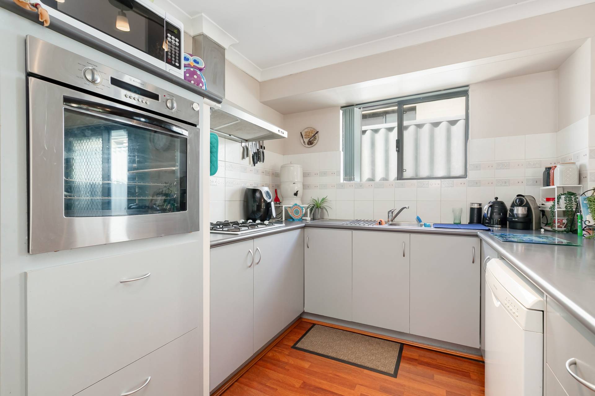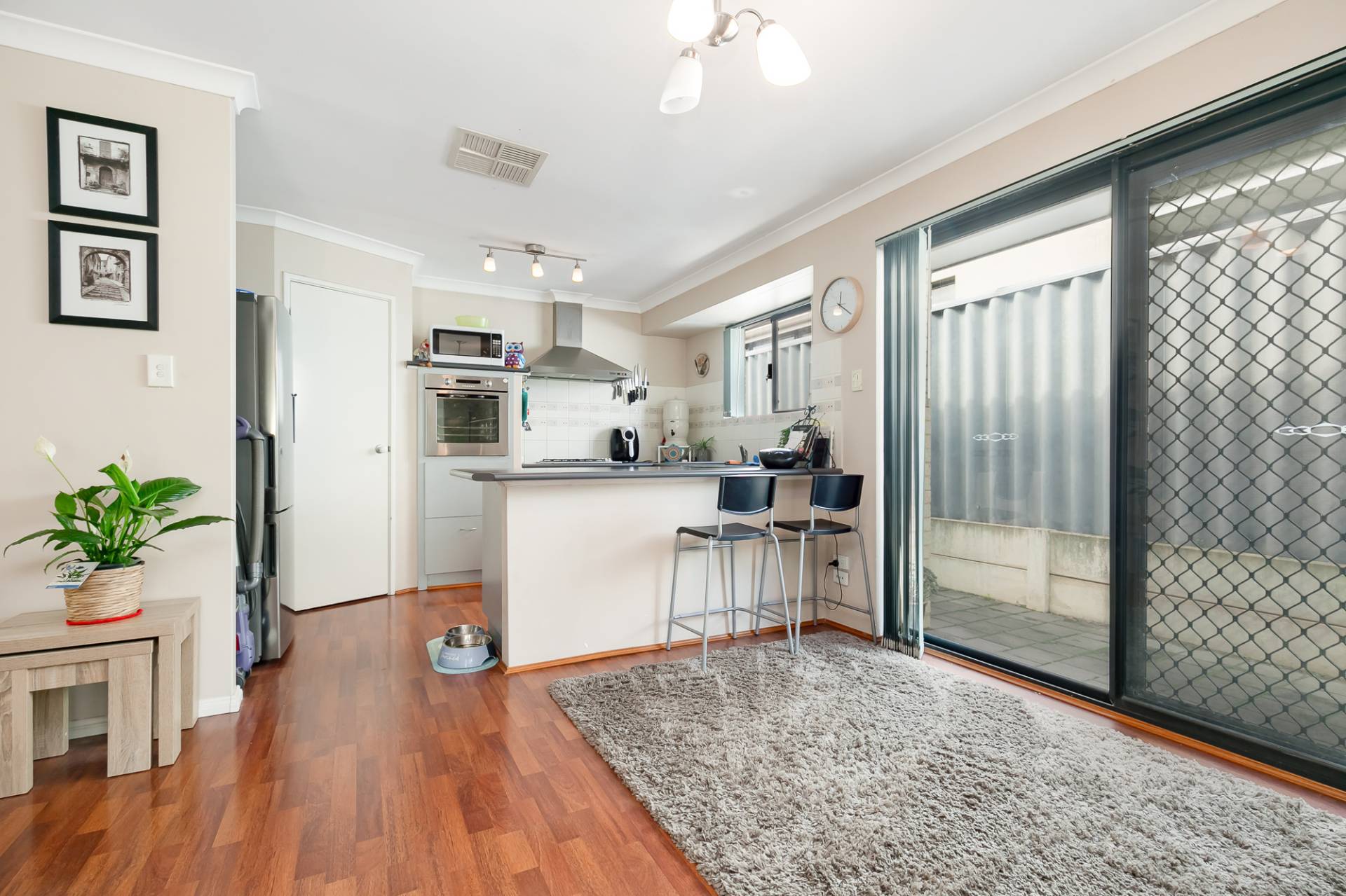 - Open plan kitchen boasting gas cooktop, electric wall oven, pantry, range hood, double sinks