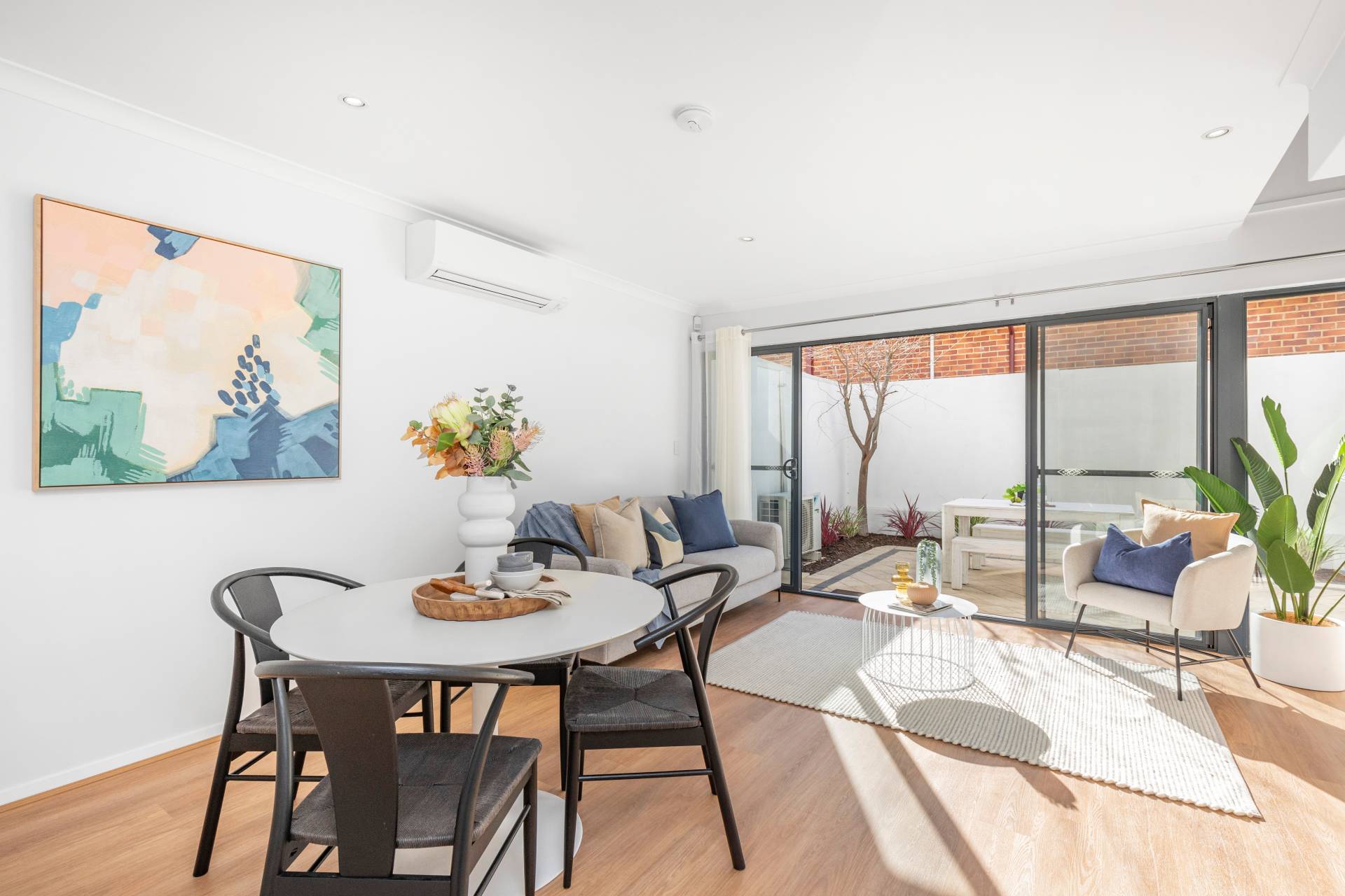 Situated in a prime location in sought after Leederville awaits this pristine 2 bedroom, 2 bathroom sundrenched townhouse designed for privacy and low maintenance living. This beautifully renovated property has undergone a recent transformation, boasting freshly painted walls & ceilings, new flooring and stylish window treatments.