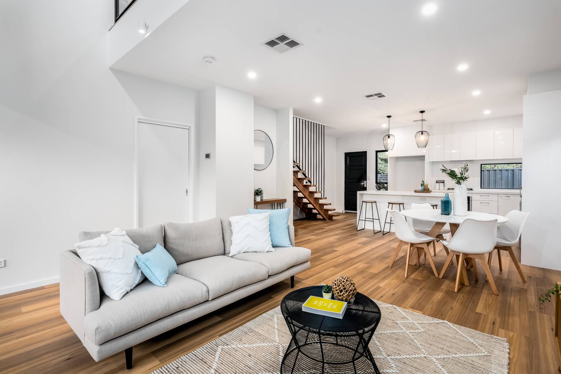 The townhouse itself is an architecturally designed modern masterpiece with a cleverly designed floorplan, fantastic open space, and stunning finishes that leave the lucky new owner nothing to do but move in, and show it off to family and friends. A beautiful modern contemporary design, this home is complete with 3 great sized bedrooms, 2 stylish and modern bathrooms, high ceilings throughout and 2 separate living areas spanning 2 floors. Connected by the beautiful feature wood staircase and gallery landing which overlooks the outdoor entertaining and downstairs living, even from the upstairs you're still connected to the family via the living area that makes up part of the spacious open plan kitchen family meals.