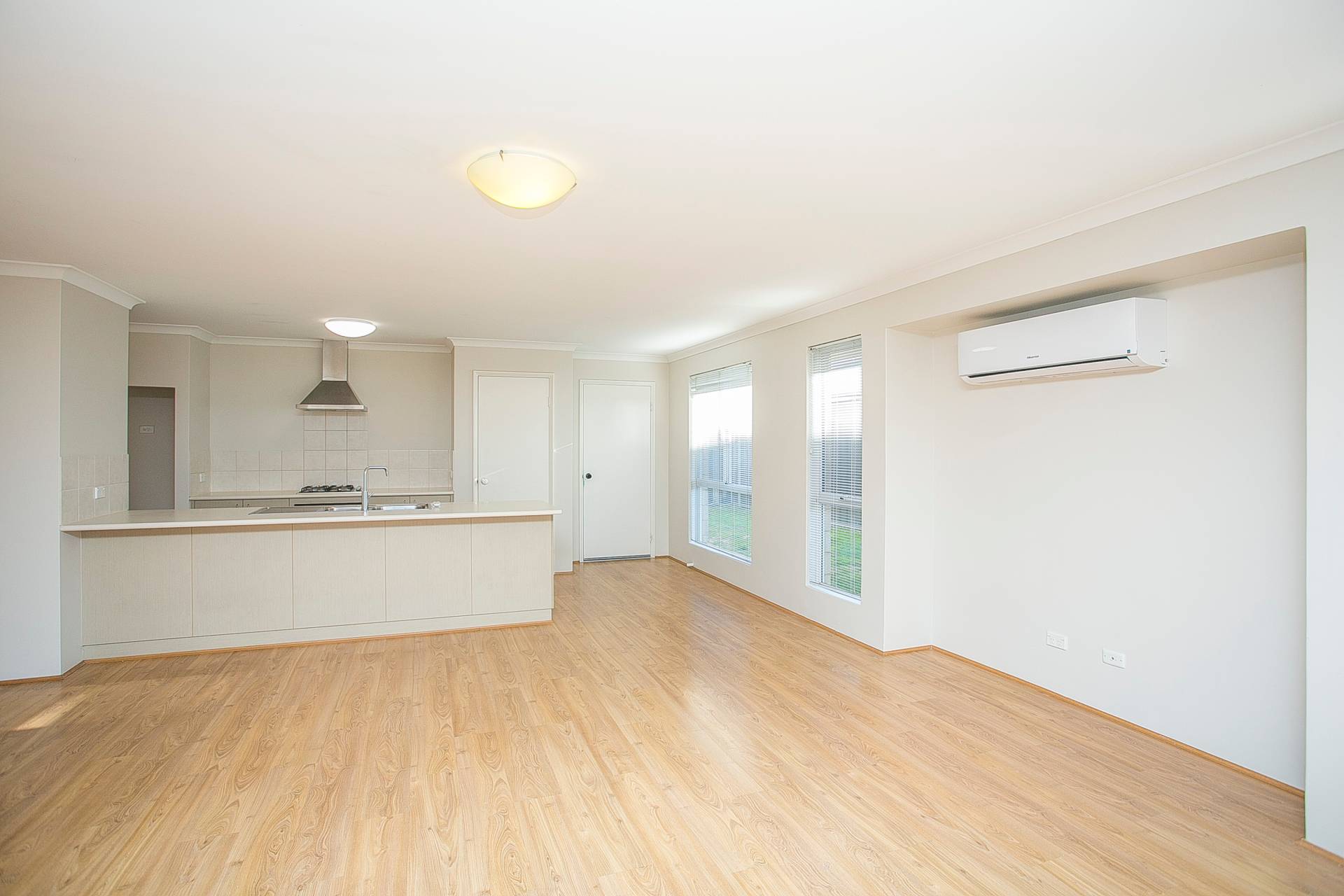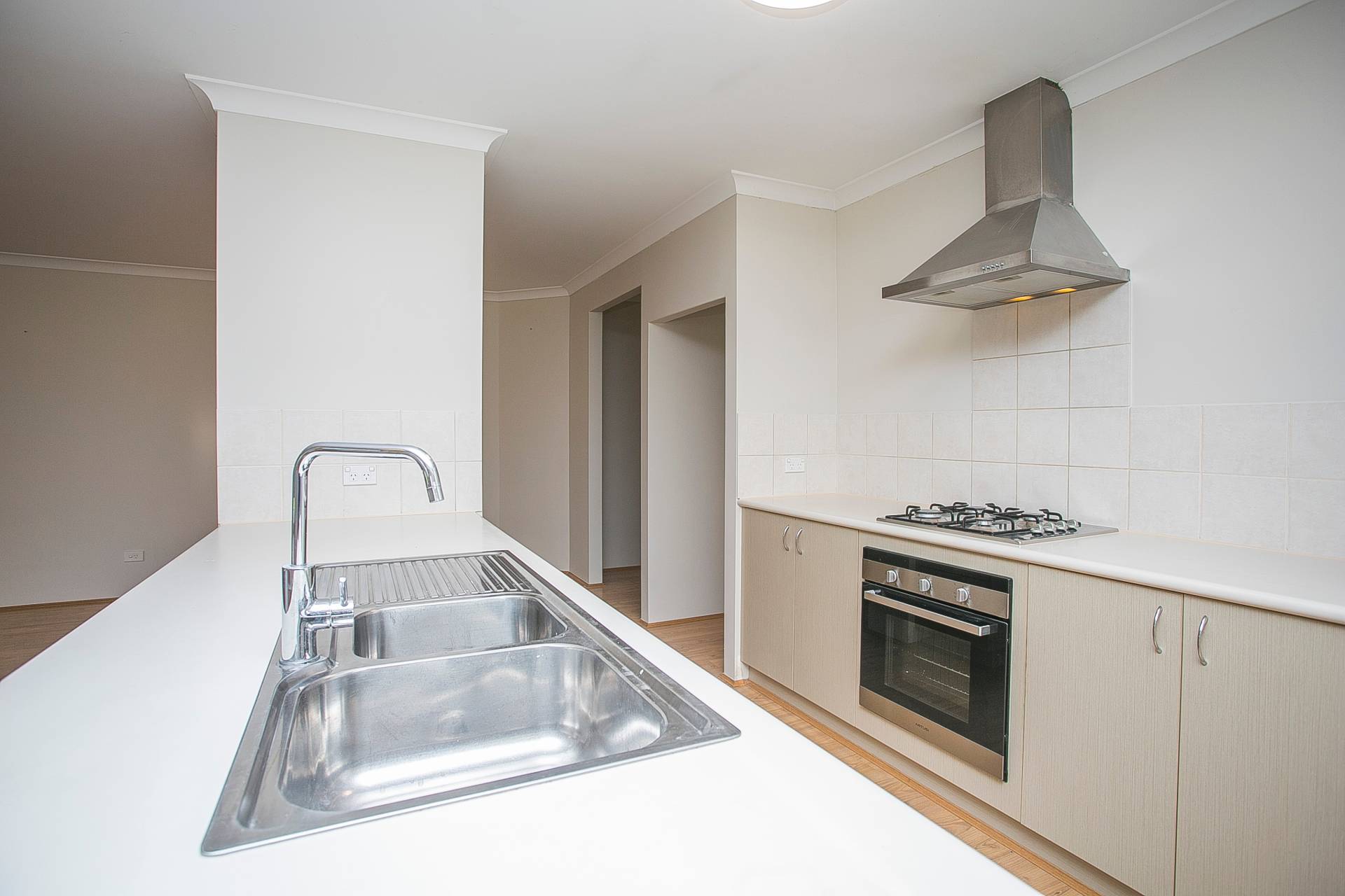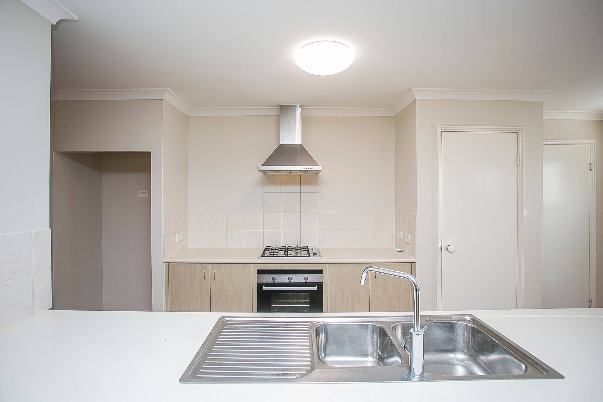 Beyond the bedrooms, the house unfolds into a spacious open-plan living area, underpinned by blonde engineered flooring. The galley-style kitchen, equipped with stainless steel cooking appliances, awaits your culinary adventures, whether it's a weeknight dinner or a weekend feast with family and friends.