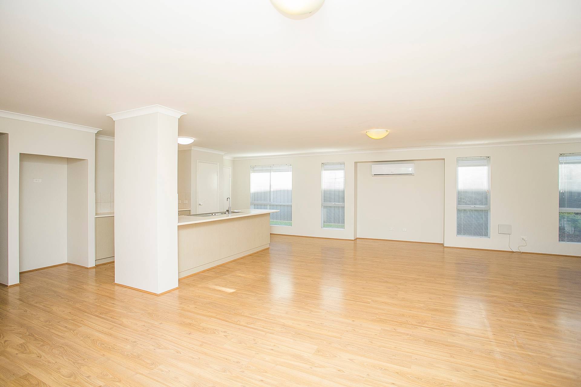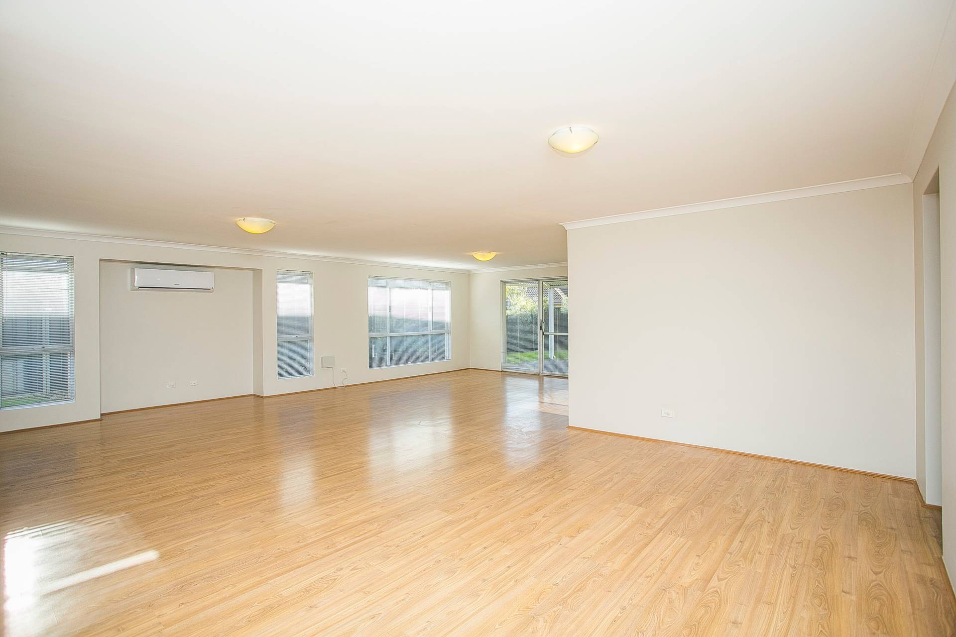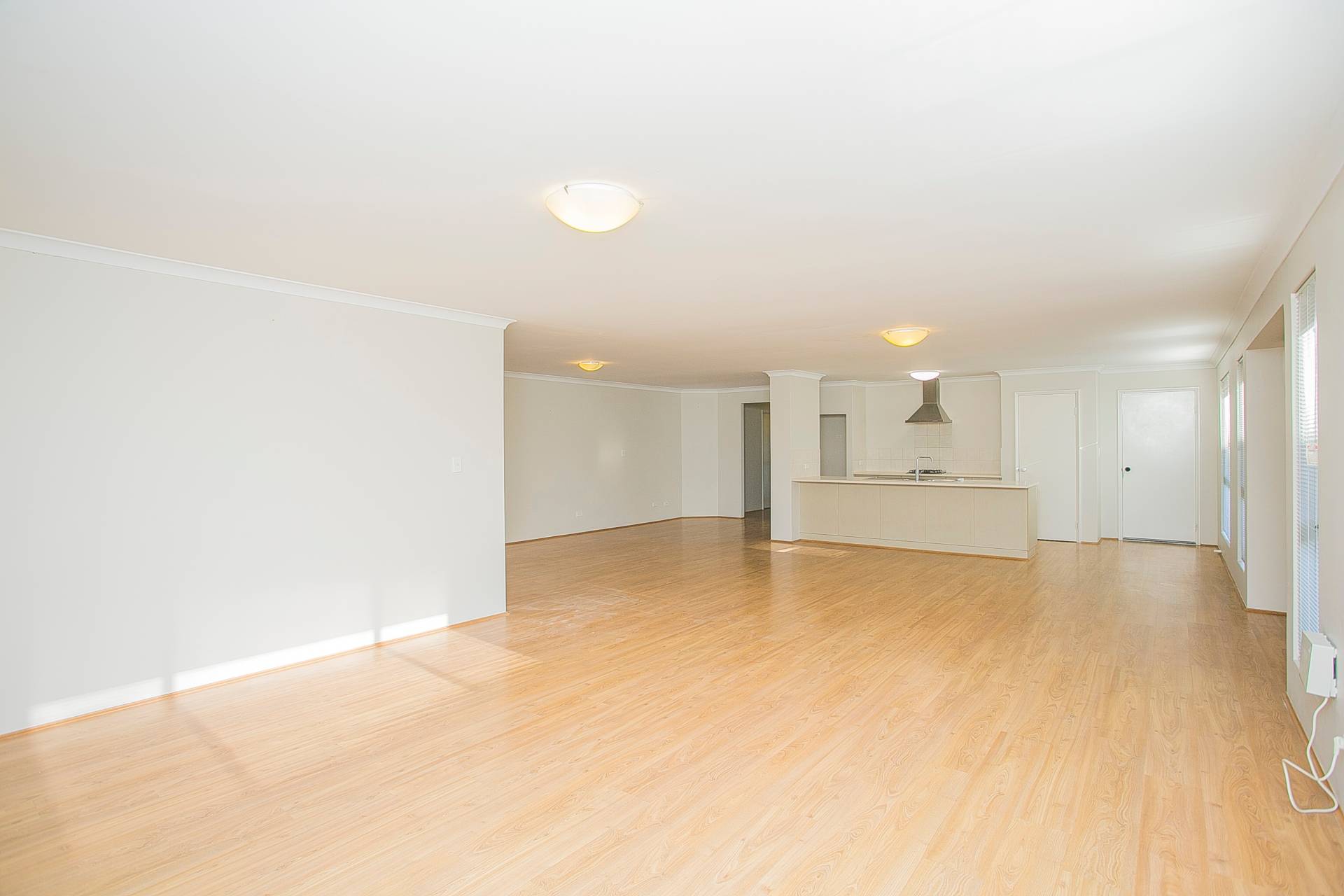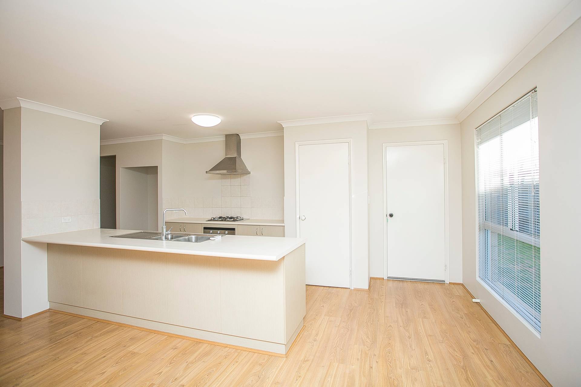 Beyond the bedrooms, the house unfolds into a spacious open-plan living area, underpinned by blonde engineered flooring. The galley-style kitchen, equipped with stainless steel cooking appliances, awaits your culinary adventures, whether it's a weeknight dinner or a weekend feast with family and friends.