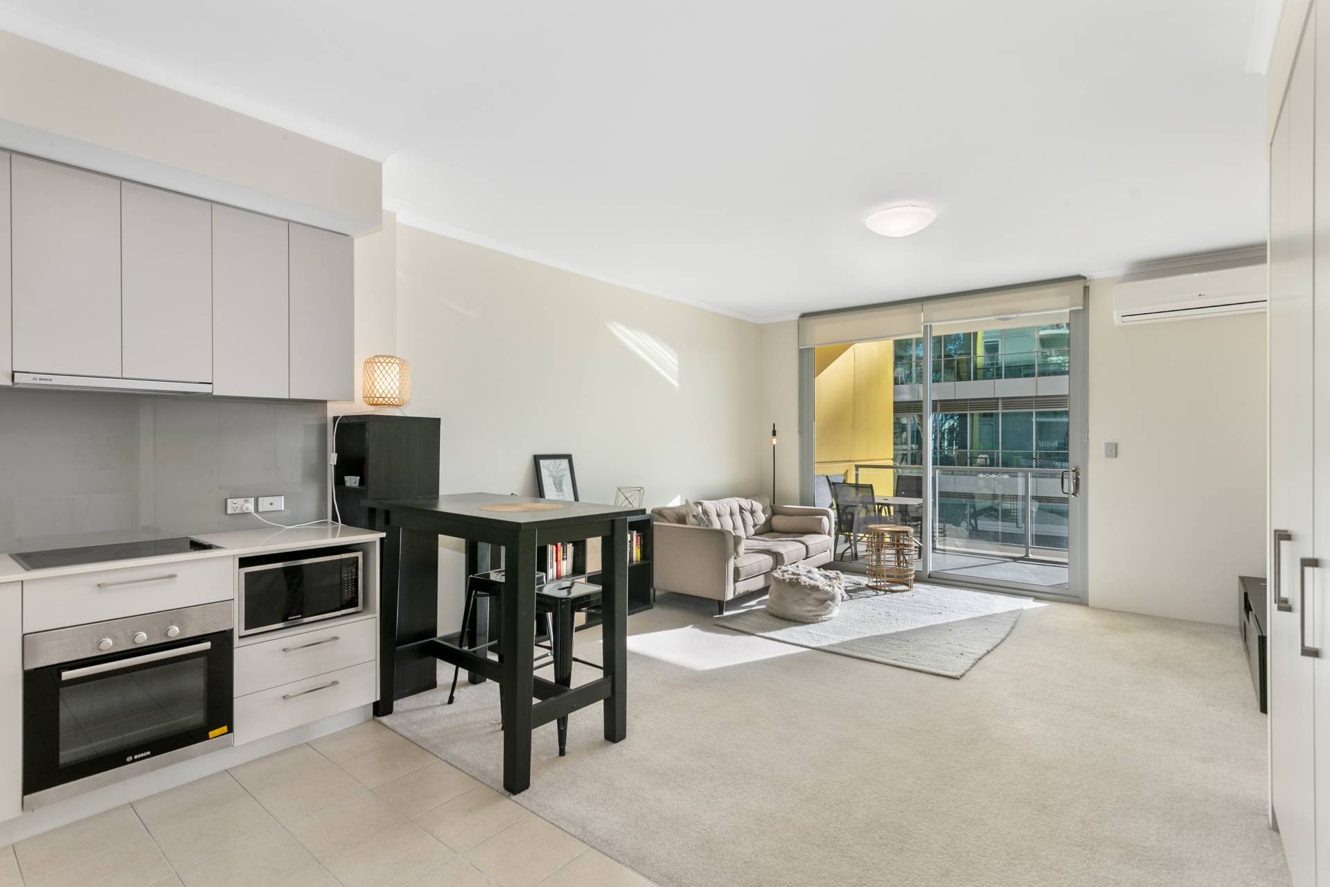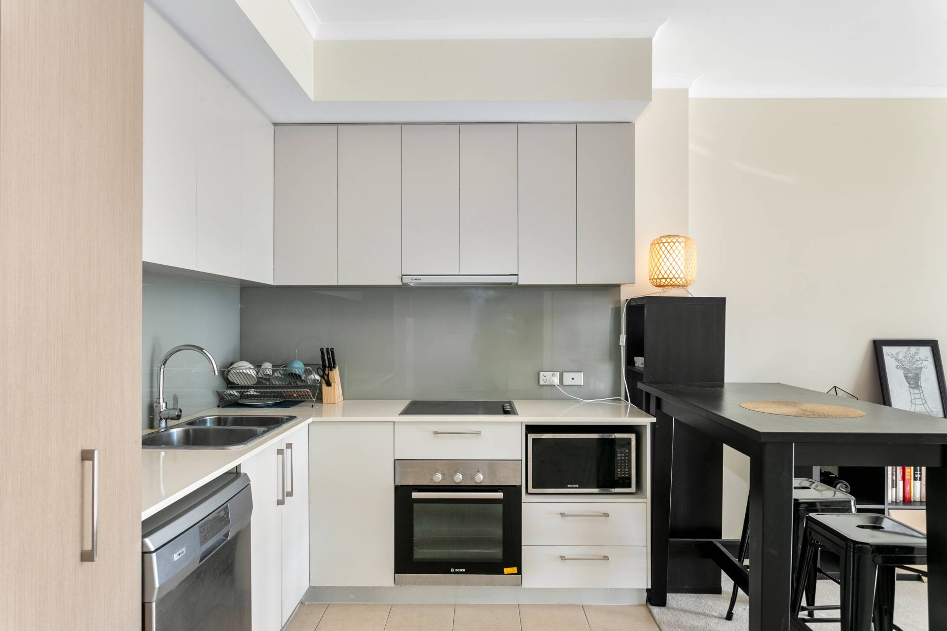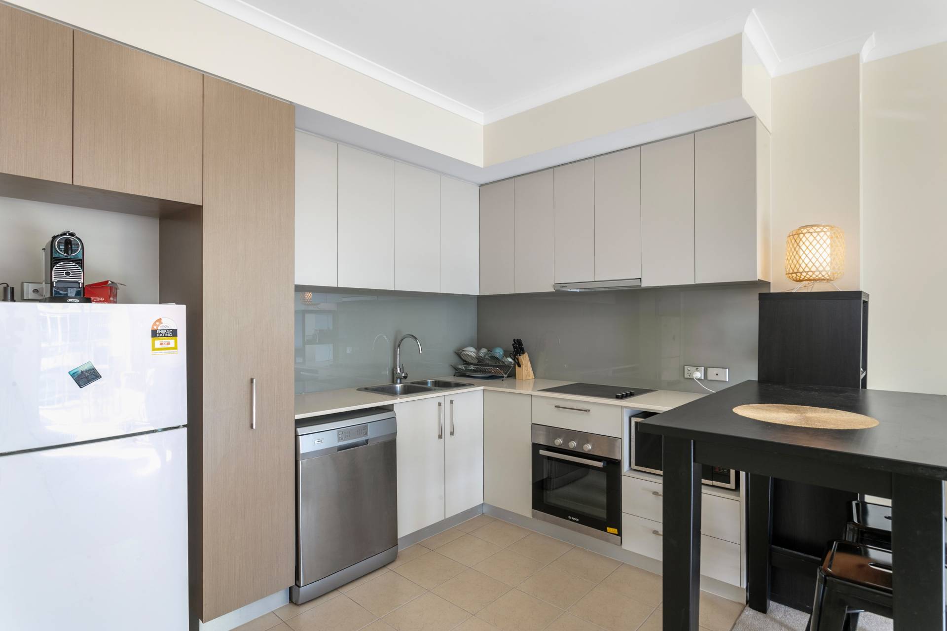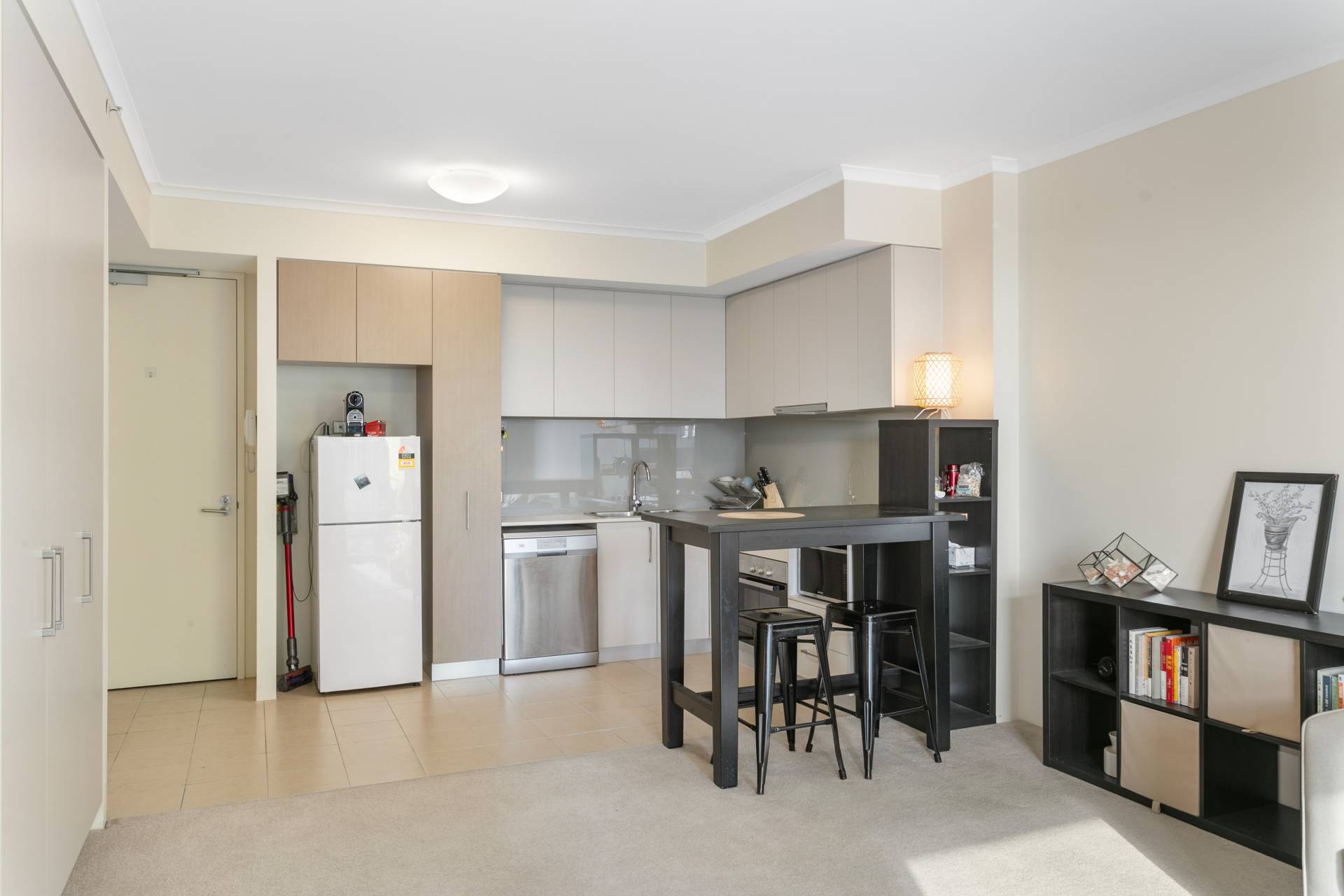 Residents of this well-equipped complex can take in the city views from the substantial balcony, knowing that there's fresh coffee, local services and a wealth of transport options within easy walking distance. This elevated apartment has loads of natural light, as well as a floorplan that offers separation between customisable living spaces and the bedroom. It provides everything needed to make a host of culinary choices – a kitchen with a ceramic cooktop, oven, dishwasher hutch and twin sink, as well as a great rendezvous point for a group outing to Uncle Billy's or La Cholita.