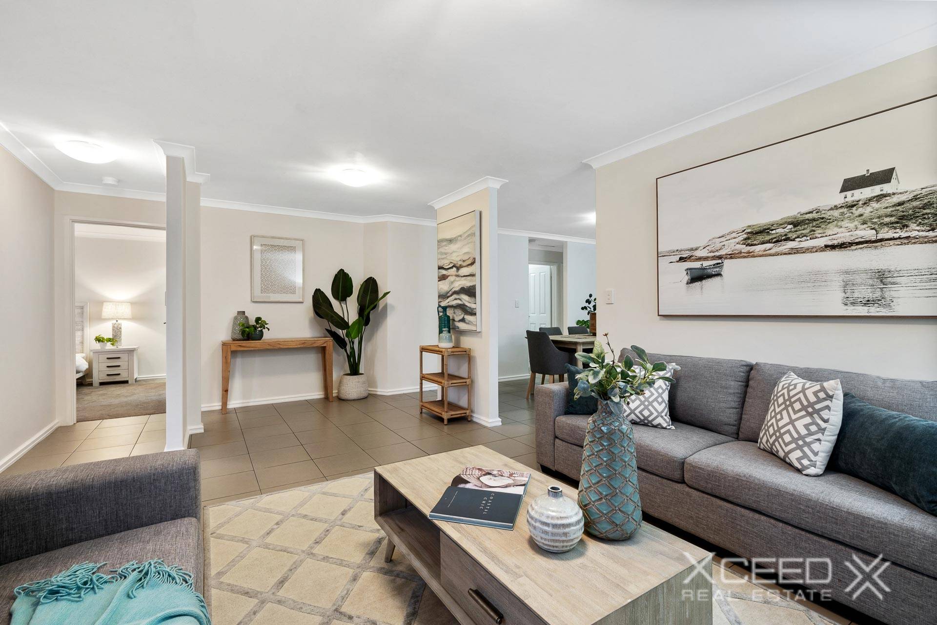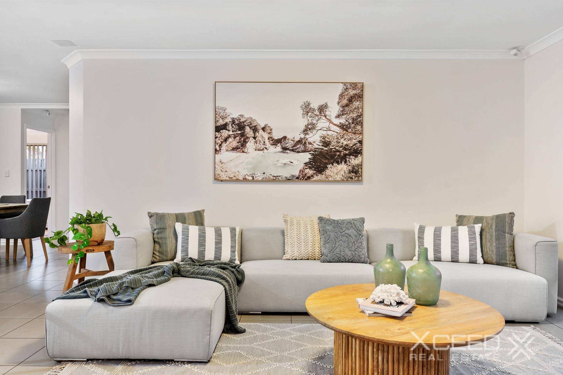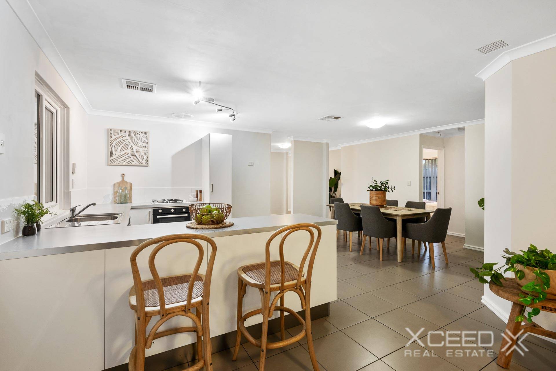 Welcome to 37 Kin Bay Entrance, Mindarie, an exquisite family home that exudes comfort and style. This thoughtfully designed 4 bedroom, 2 bathroom property is situated on a generous 451sqm block in a peaceful and convenient location.