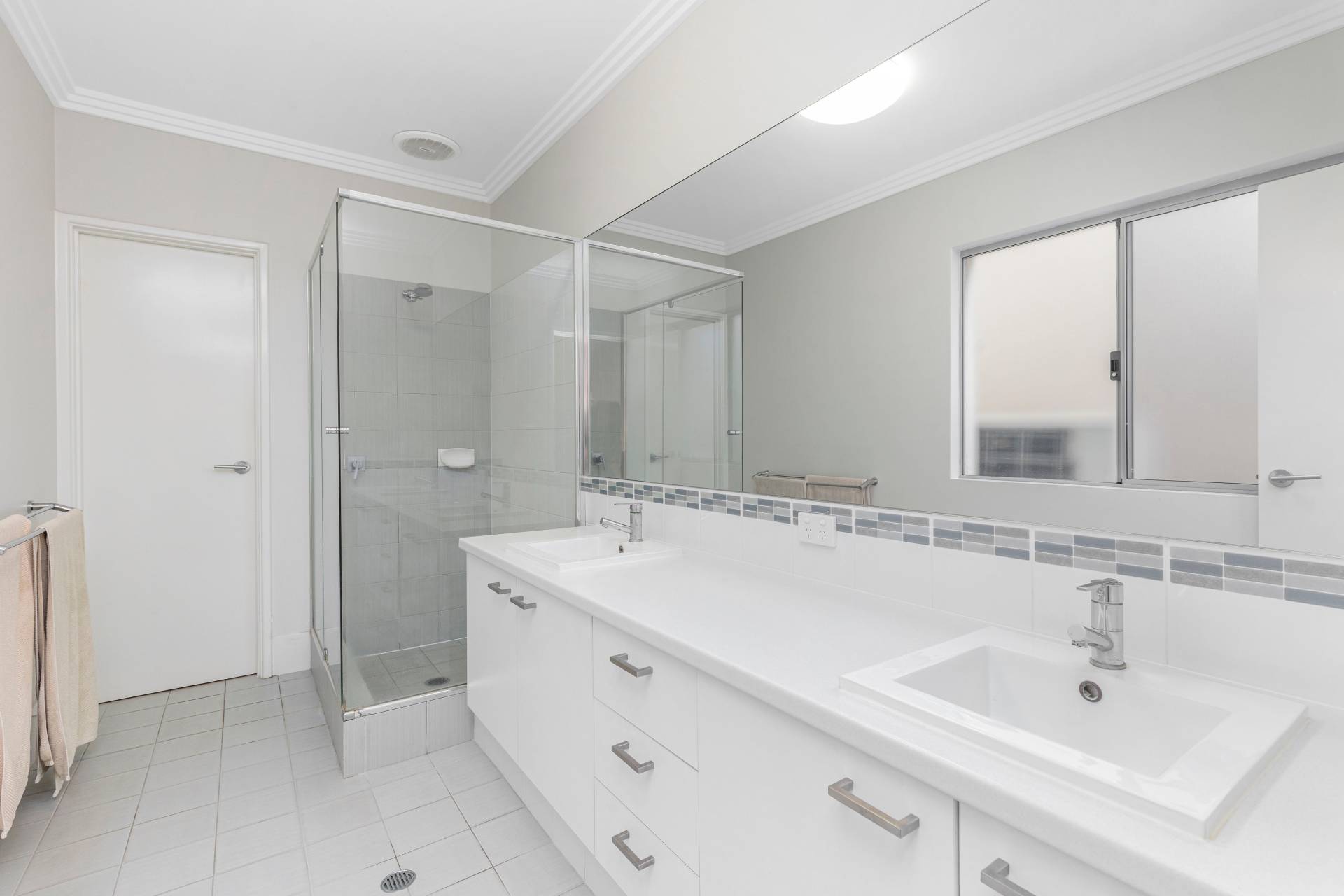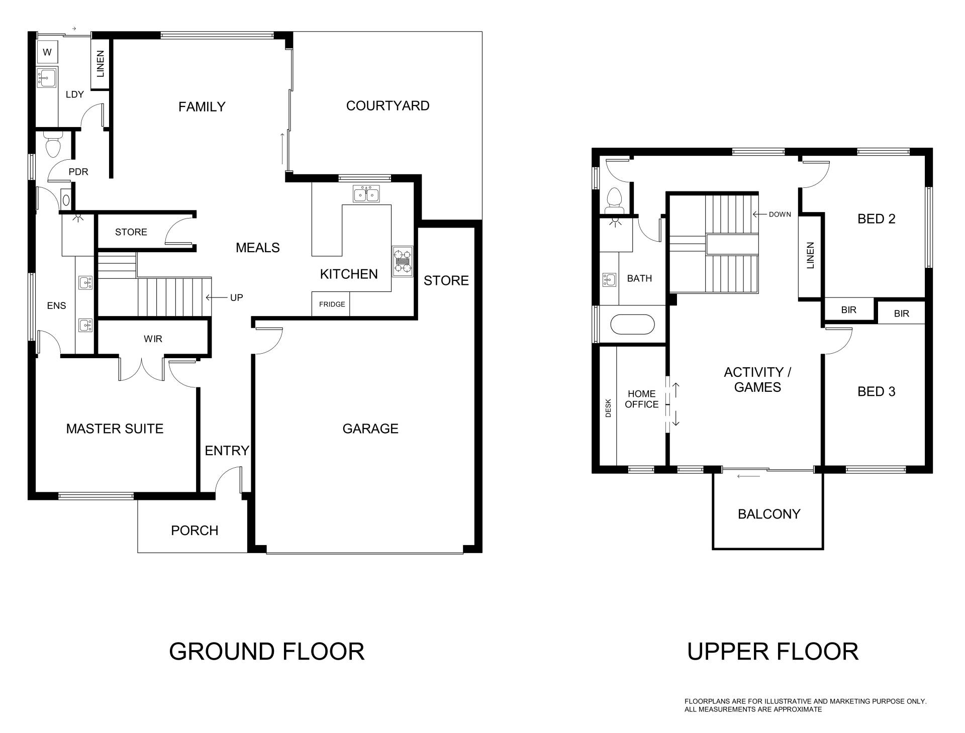 The generous master bedroom is located downstairs to the front of the property boasting reverse cycle air conditioning, walk-in-robe and ensuite with his and hers basins.