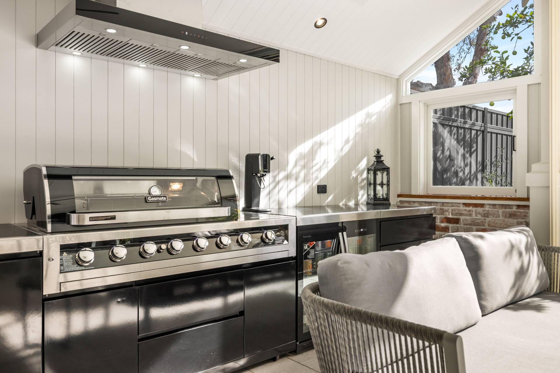 The renovations continue outside to the gorgeous paved alfresco area featuring an outdoor kitchen with a BBQ, wall and ceiling panelling, a ceiling fan, heater and feature wall. You'll love entertaining in this area, and just think of the pool parties and cocktails enjoyed on the pool deck in this intimate zone of the easy-care garden.