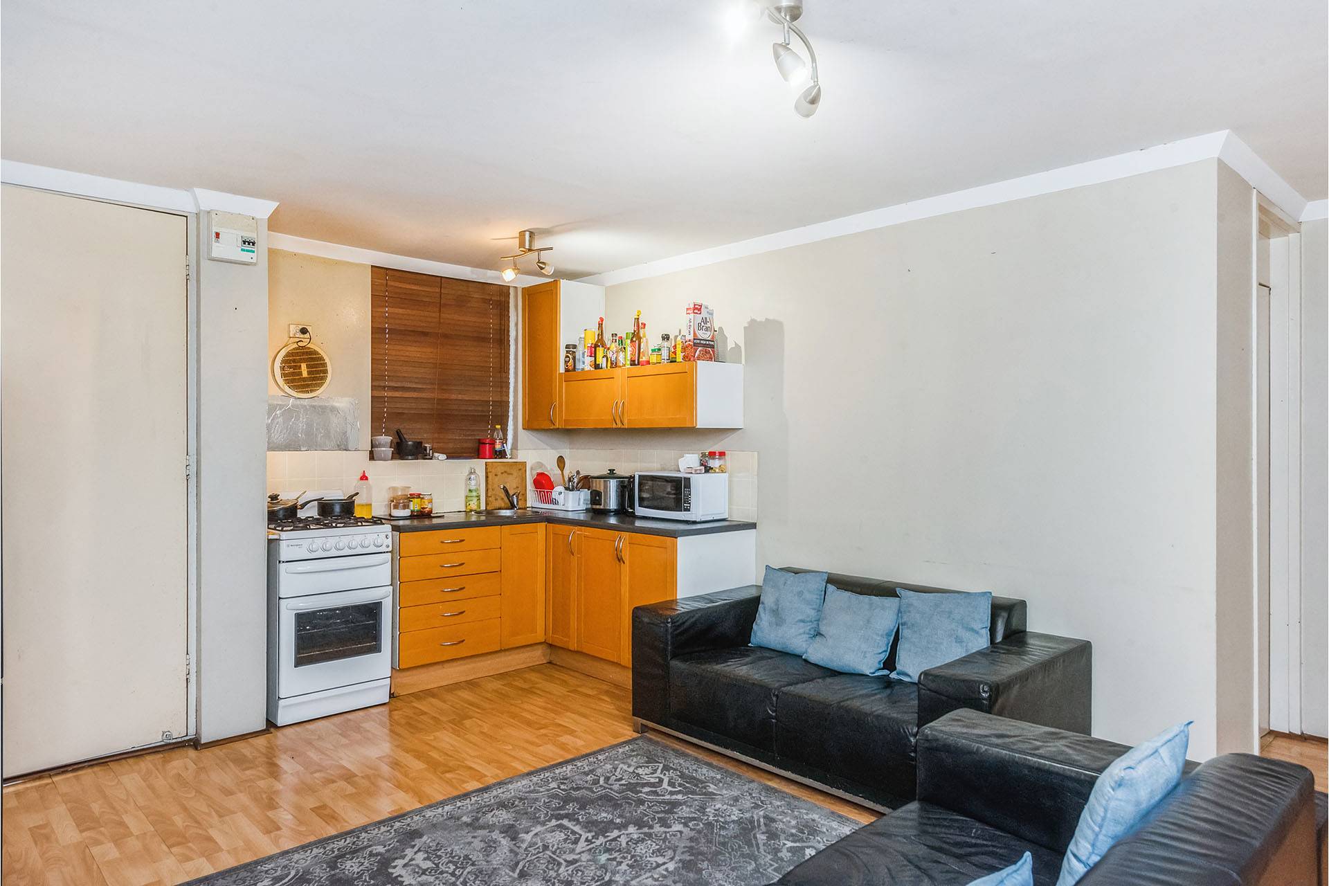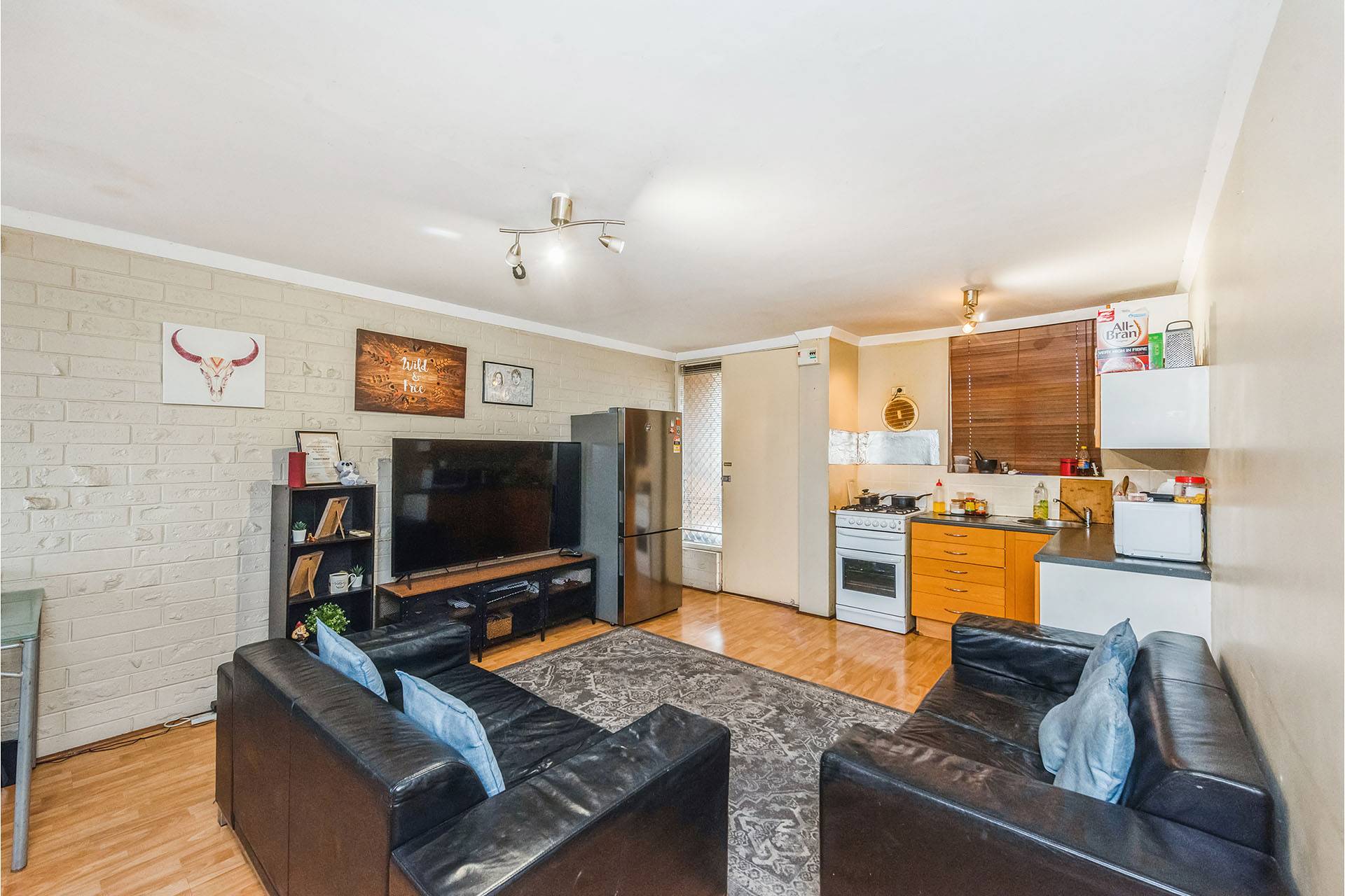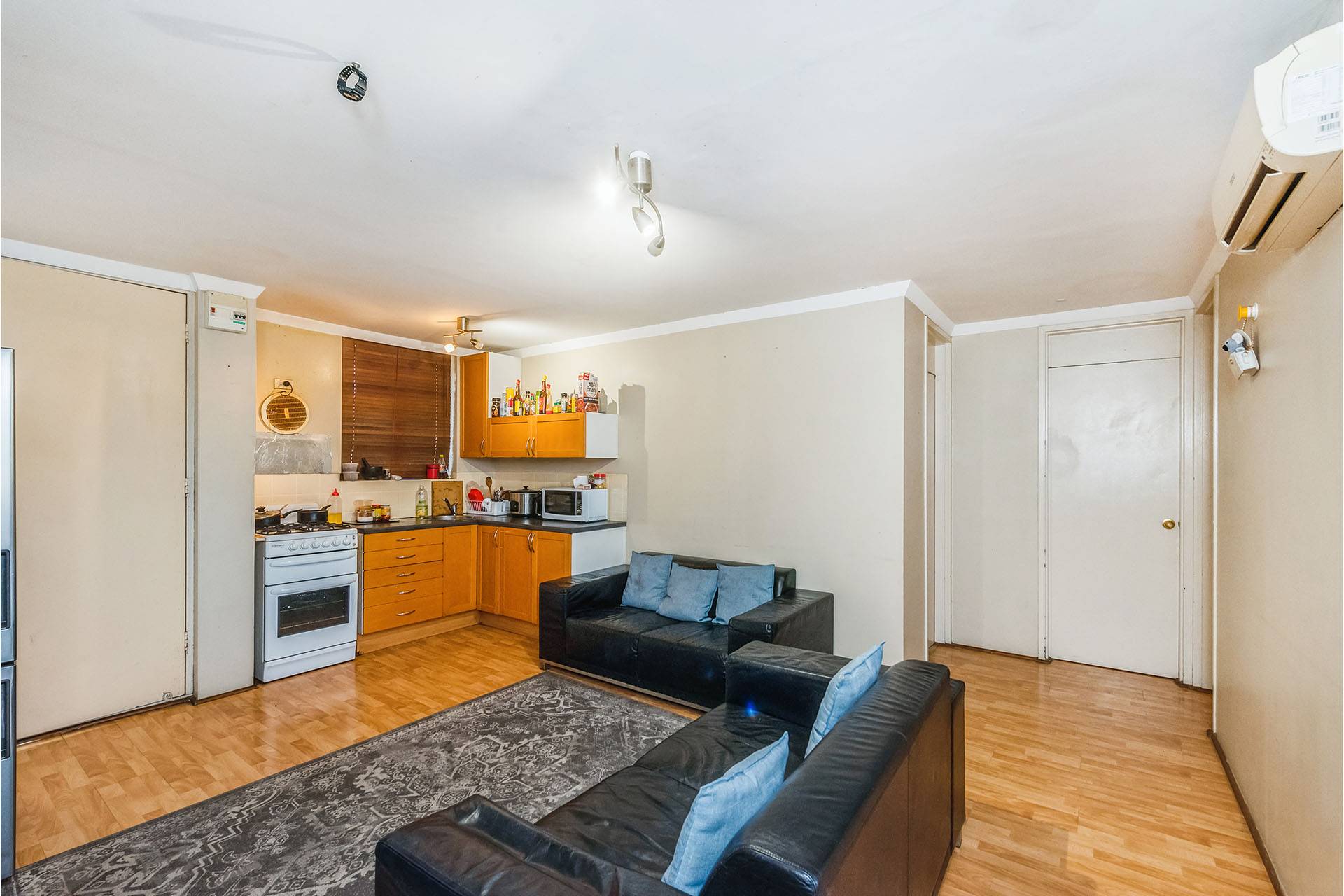 It offers spacious open plan, air conditioned lounge living room featuring timber finish flooring throughout plus kitchen/meals with an abundance of bench and cupboard space.