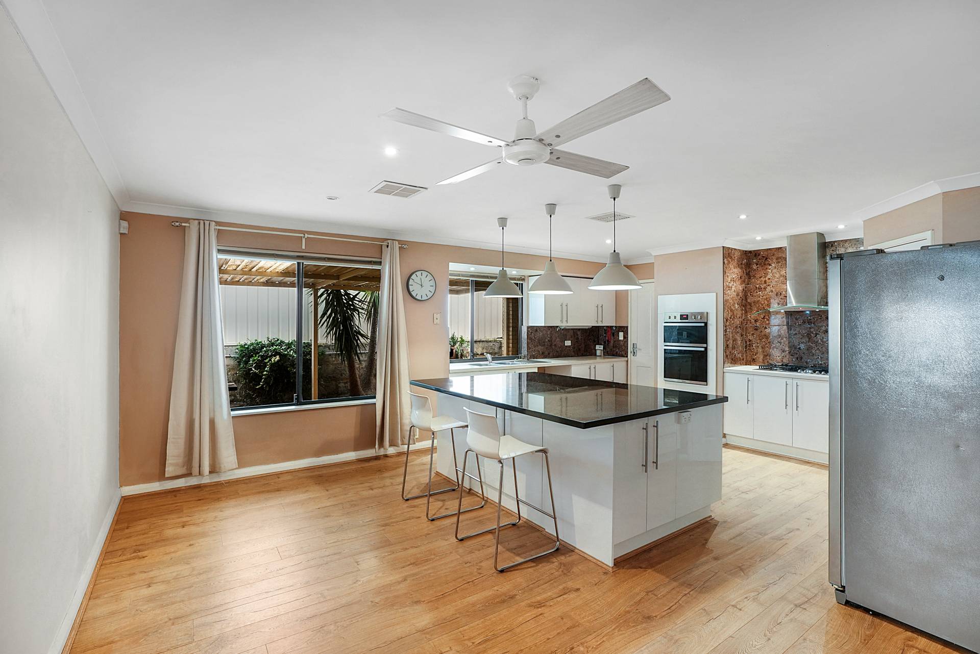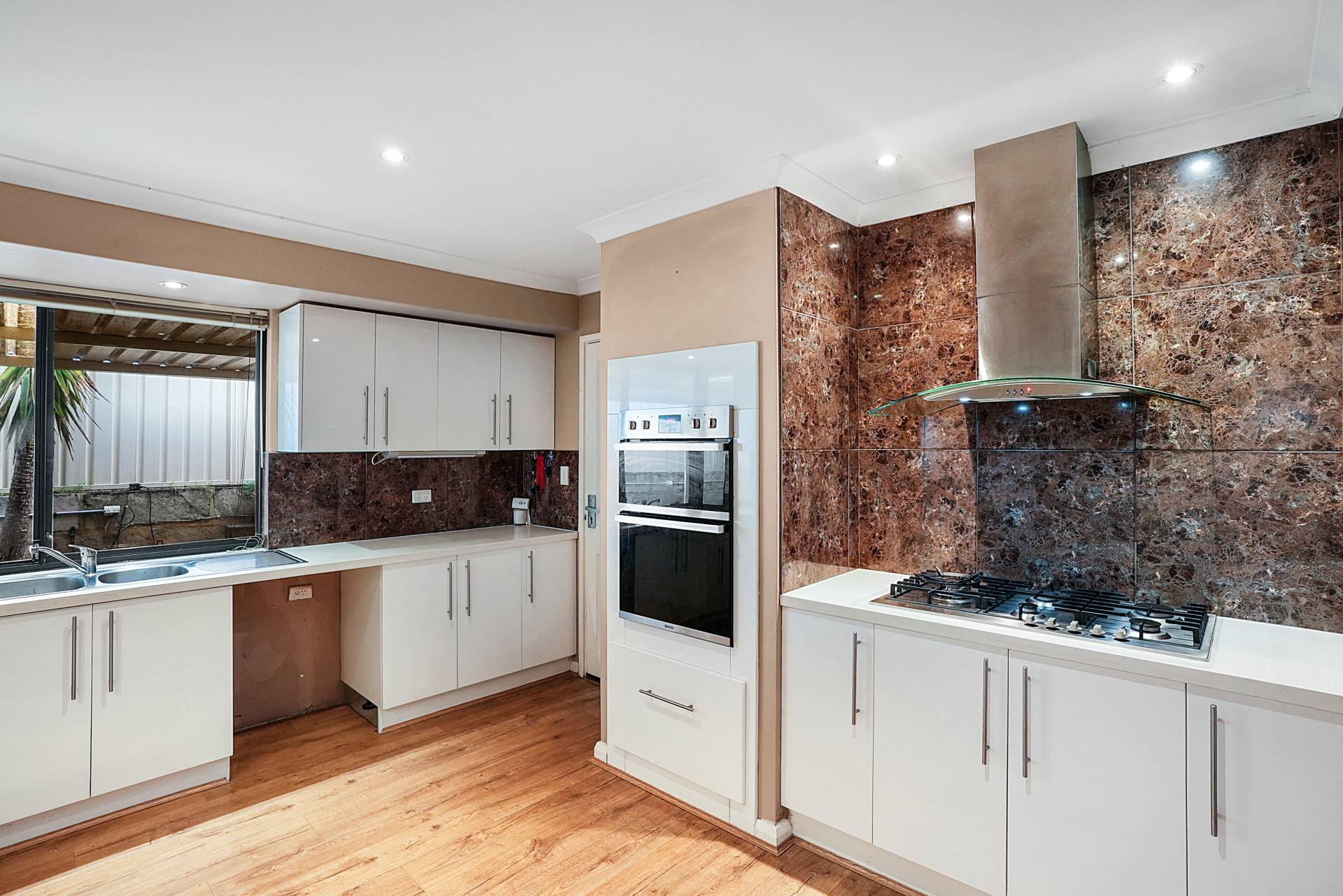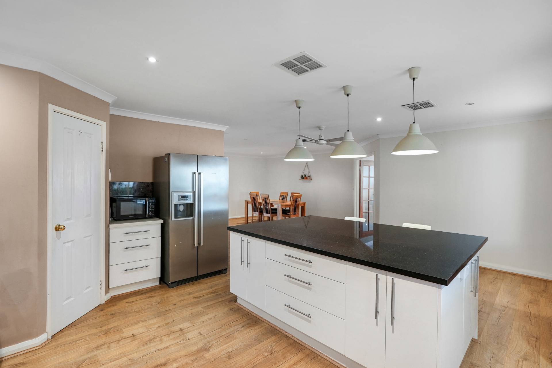 - Large, renovated kitchen with loads of bench and cupboard space, microwave recess, room for a double door fridge, 5 burner gas cook top, wall oven, stainless steel and glass canopy range hood, stone benchtops, breakfast bar and dishwasher recess
