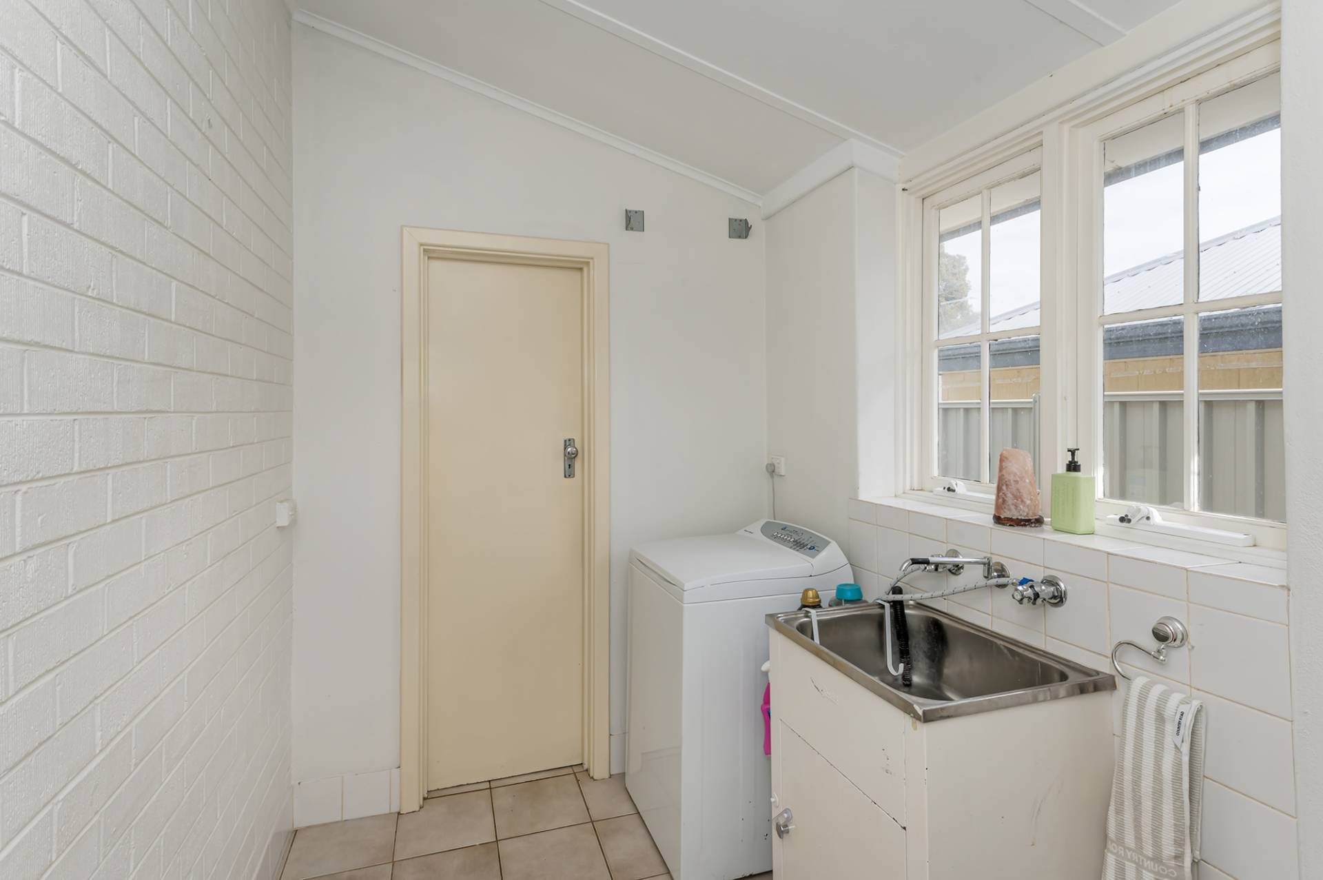 Simple yet comfortable, the living area becomes a comforting retreat with a ceiling fan, a split-system air-conditioner for those hot summer days, and a classic brick fireplace with a gas bayonet for the colder months. Catering to your culinary pursuits is a modernised kitchen with a stainless-steel free-standing oven and plenty of cabinet space, and the bathroom and laundry stand ready to serve, complete with a separate toilet for added convenience.