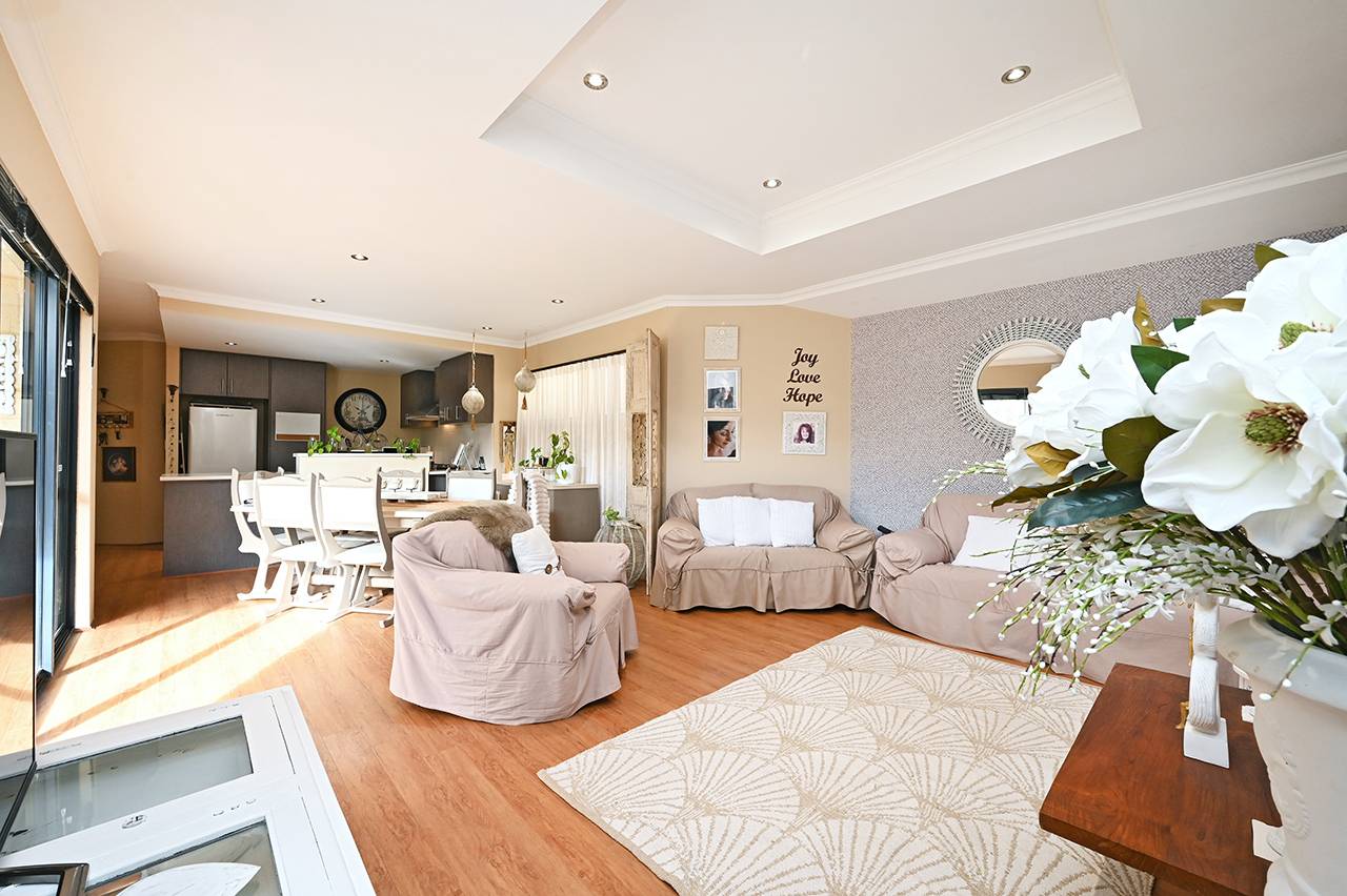 Well presented and modern 4 x 2 home with spacious open plan living areas and finished with stylish fixtures and fittings throughout, all with an alfresco entertaining overlooking manicure gardens and easy care synthetic lawn area