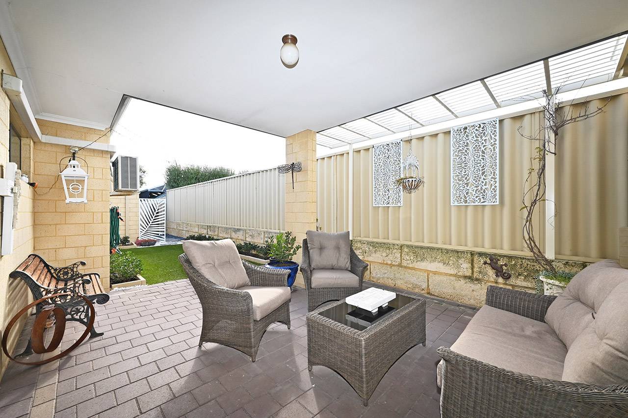 Outdoor alfresco entertaining overlooking easy-care manicured gardens and synthetic lawn area