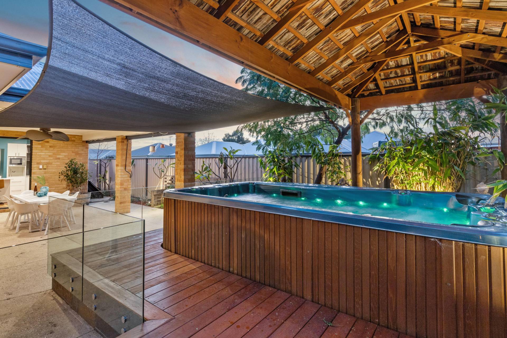 Step outside and let the kids run wild with a wooden cubby house equipped with a slide and sun protection with installed shade sails. Relax and unwind beneath the gazebo in the heated 4-metre-long swim spa, enclosed by glass safety balustrading. A large garden shed provides ample storage for bikes and outdoor equipment.