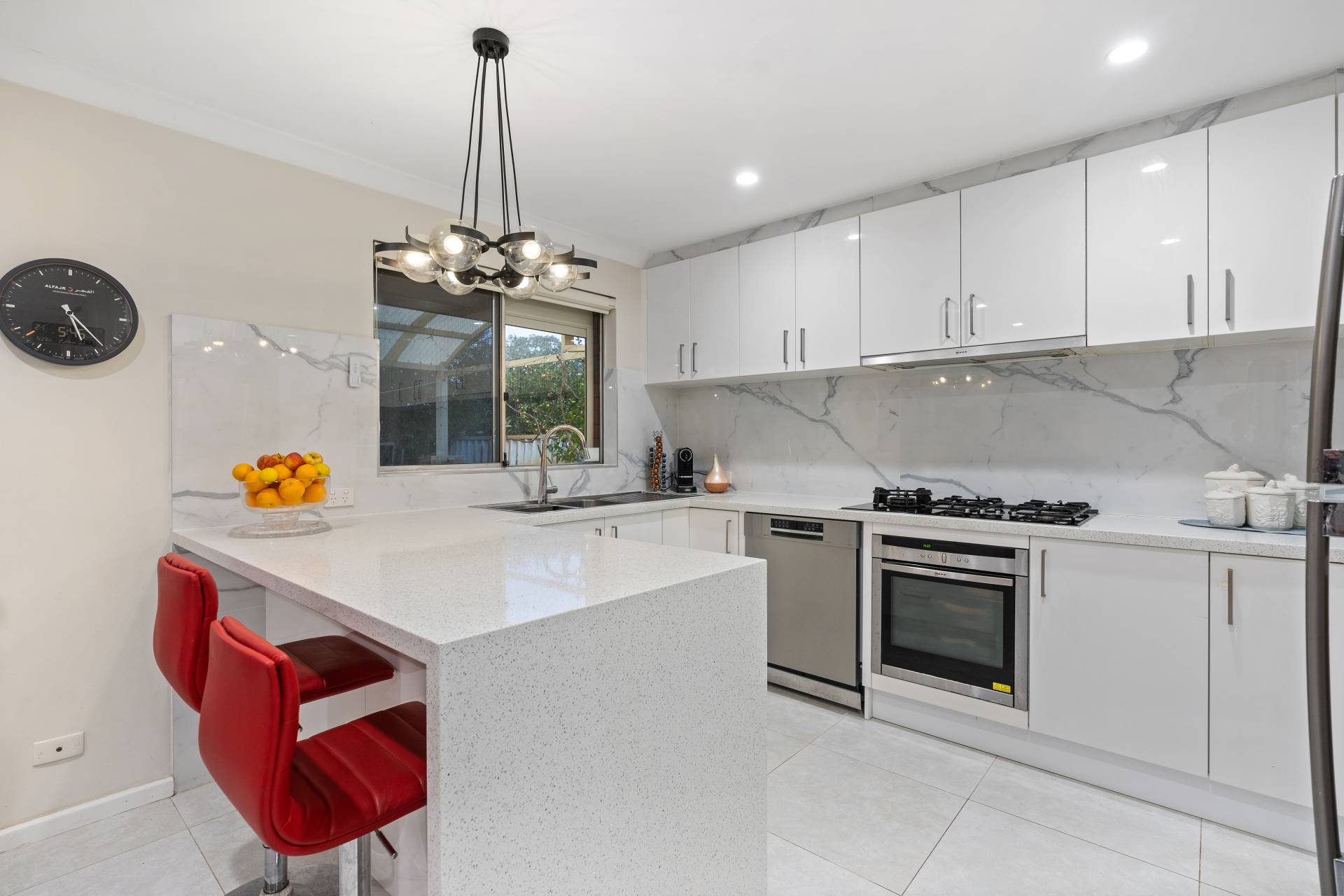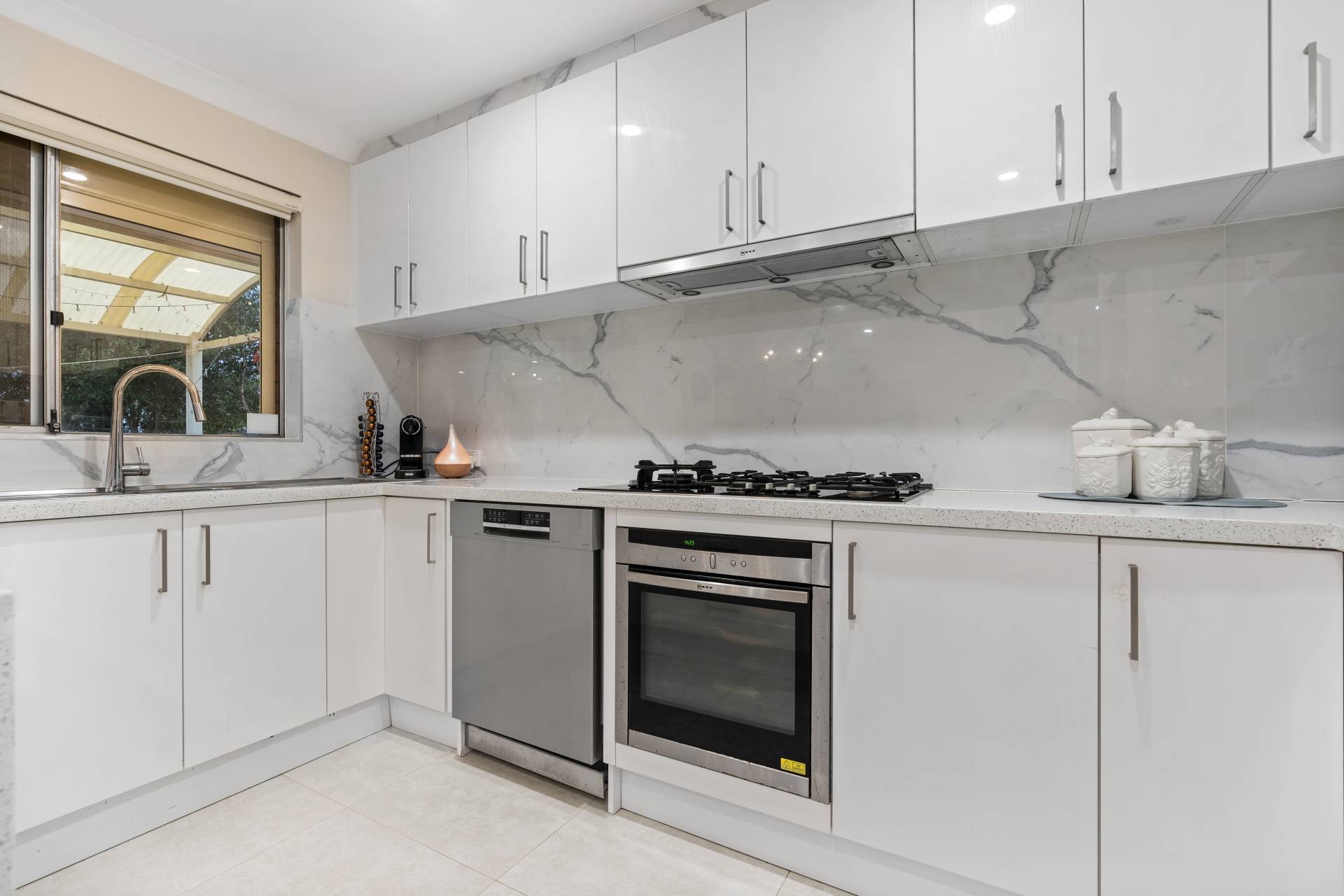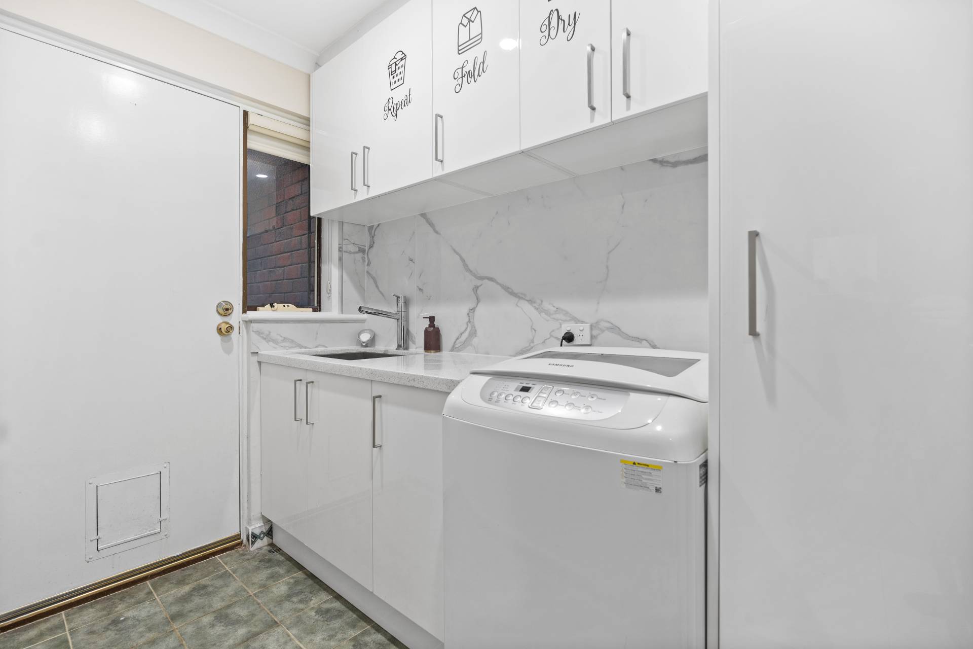 Stone bench top in not only the kitchen but followed through to the laundry and bathroom.
