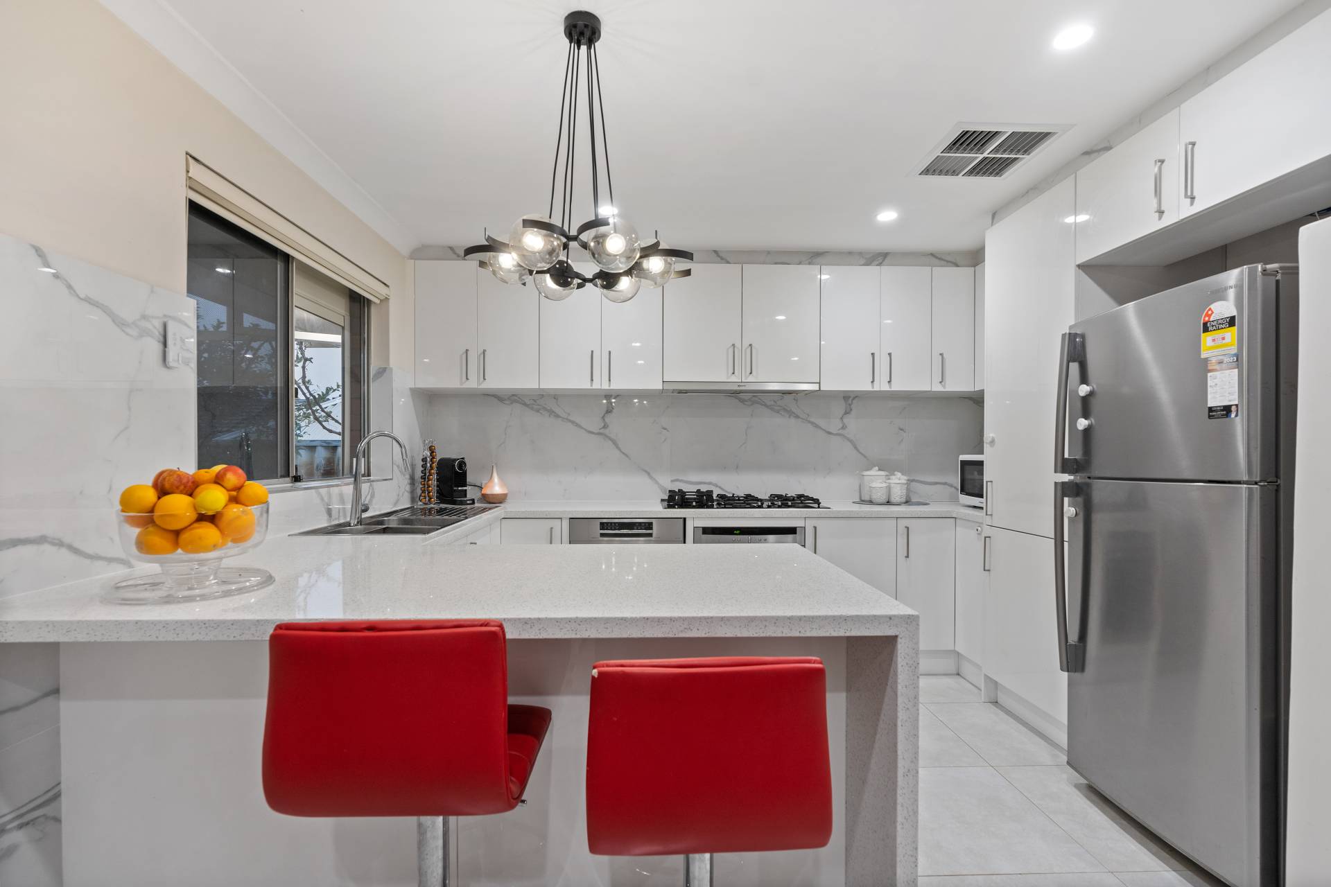 Impeccably renovated kitchen with state-of-the-art appliances.