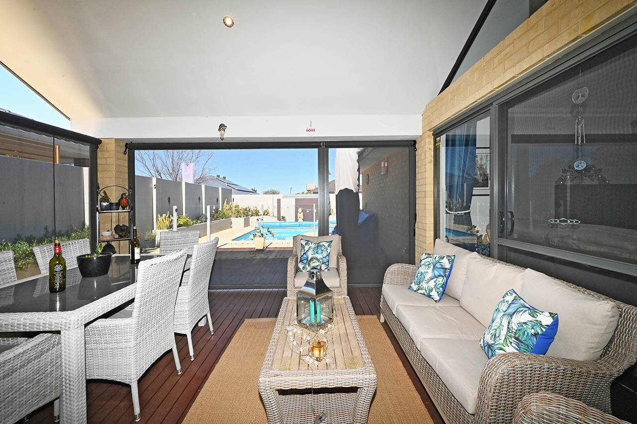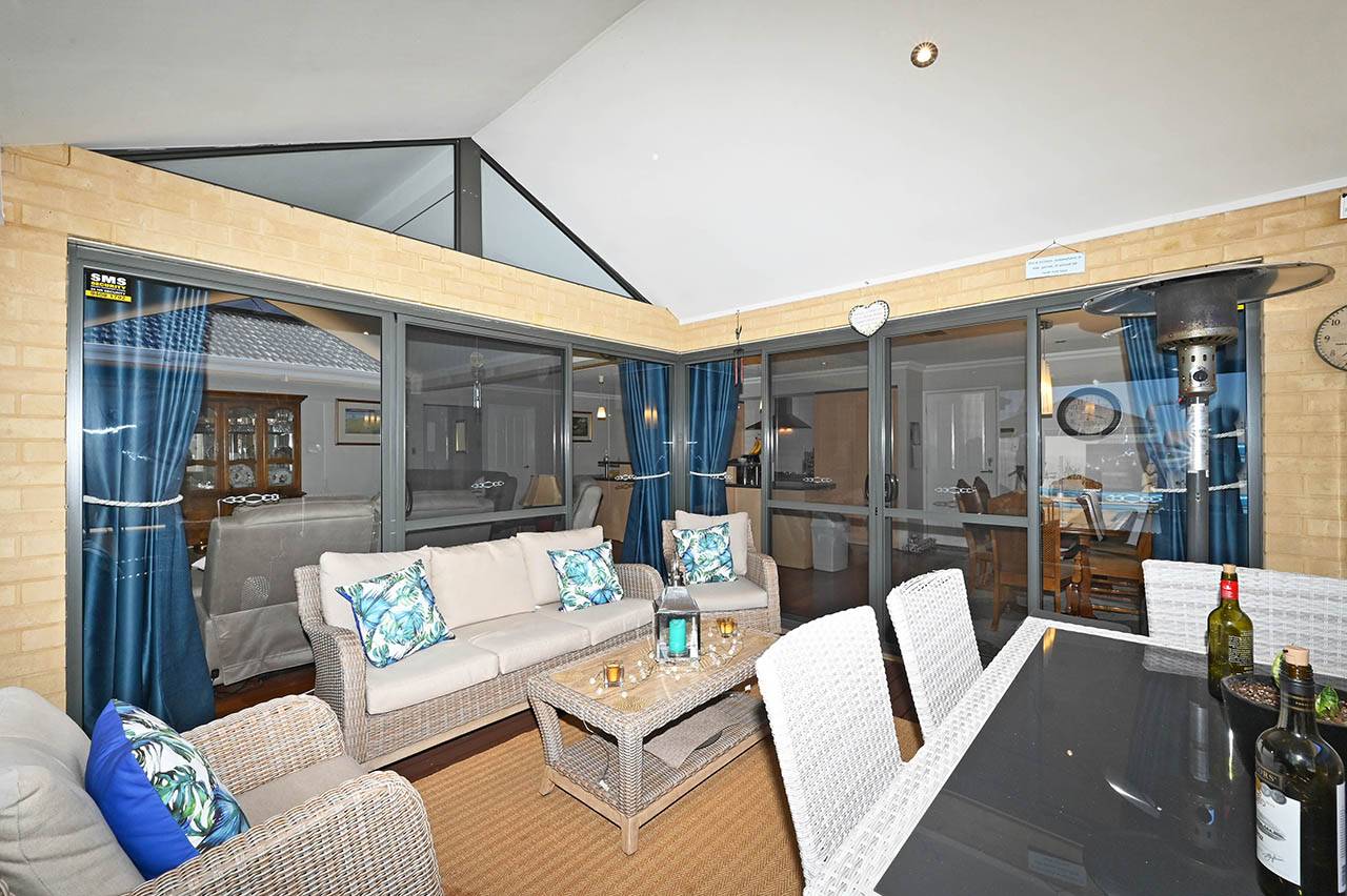 Magnificent alfresco entertaining with extra high raked ceiling, feature timber decking, café blinds making it perfect for all year round entertaining