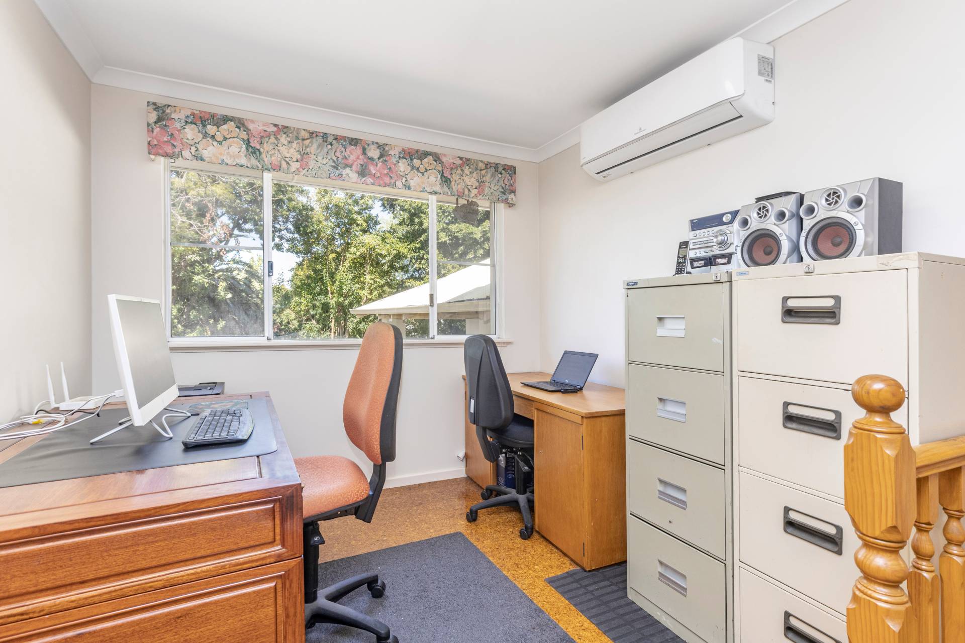 The master bedroom is situated on the lower floor separate from the rest of the house and boasts a walk-in-robe, ensuite and has direct access to the leafy backyard. The remaining 3 bedrooms and study are located on the ground and upper floors.