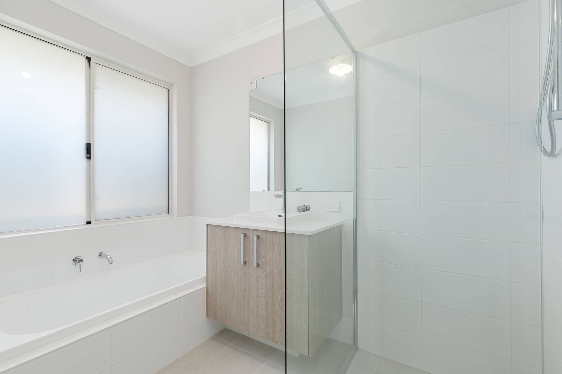 Main bathroom has separate shower and bath perfect for families