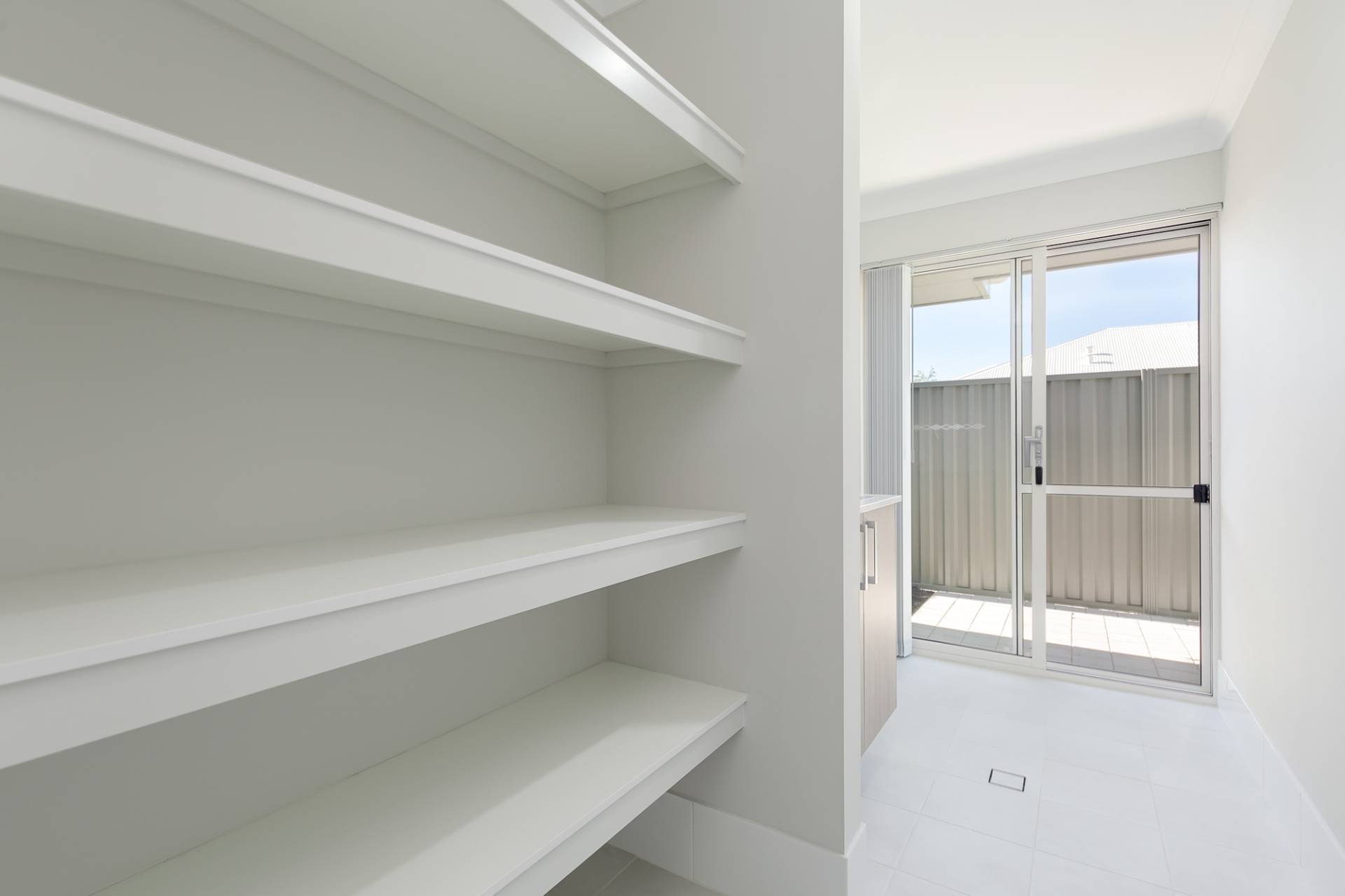 Separate laundry with ample storage and outside access