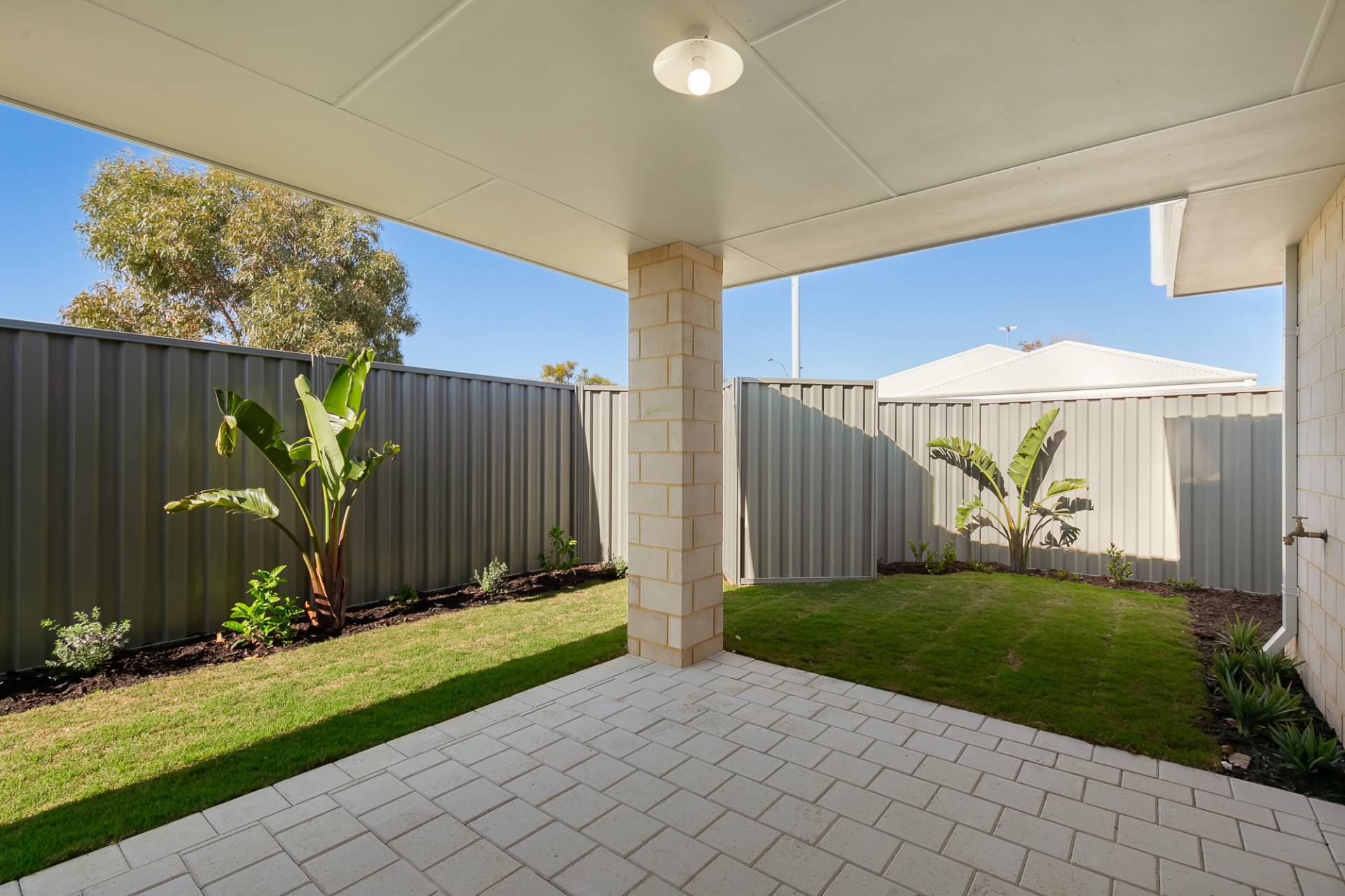 Paved alfresco area under the main roof