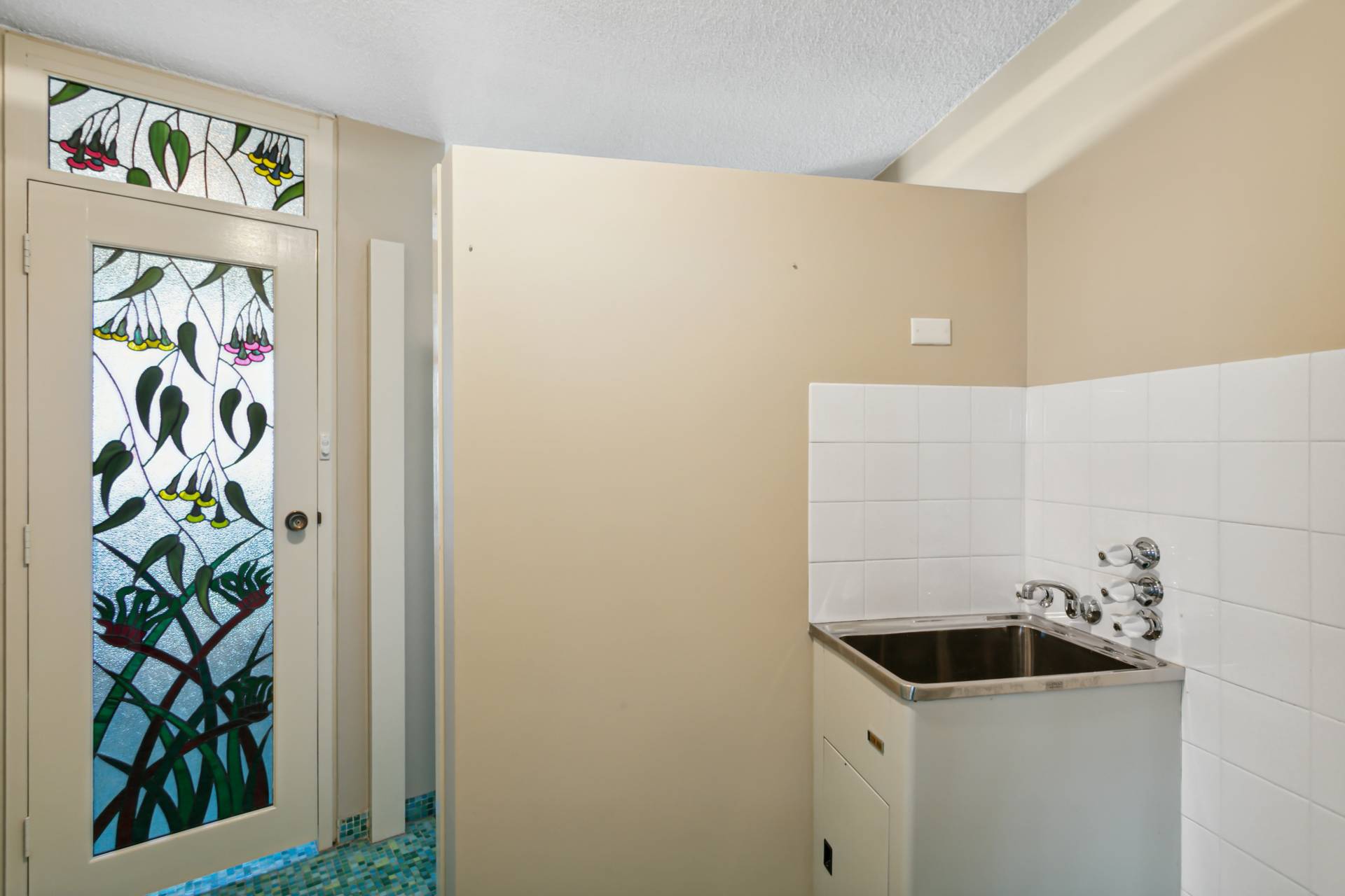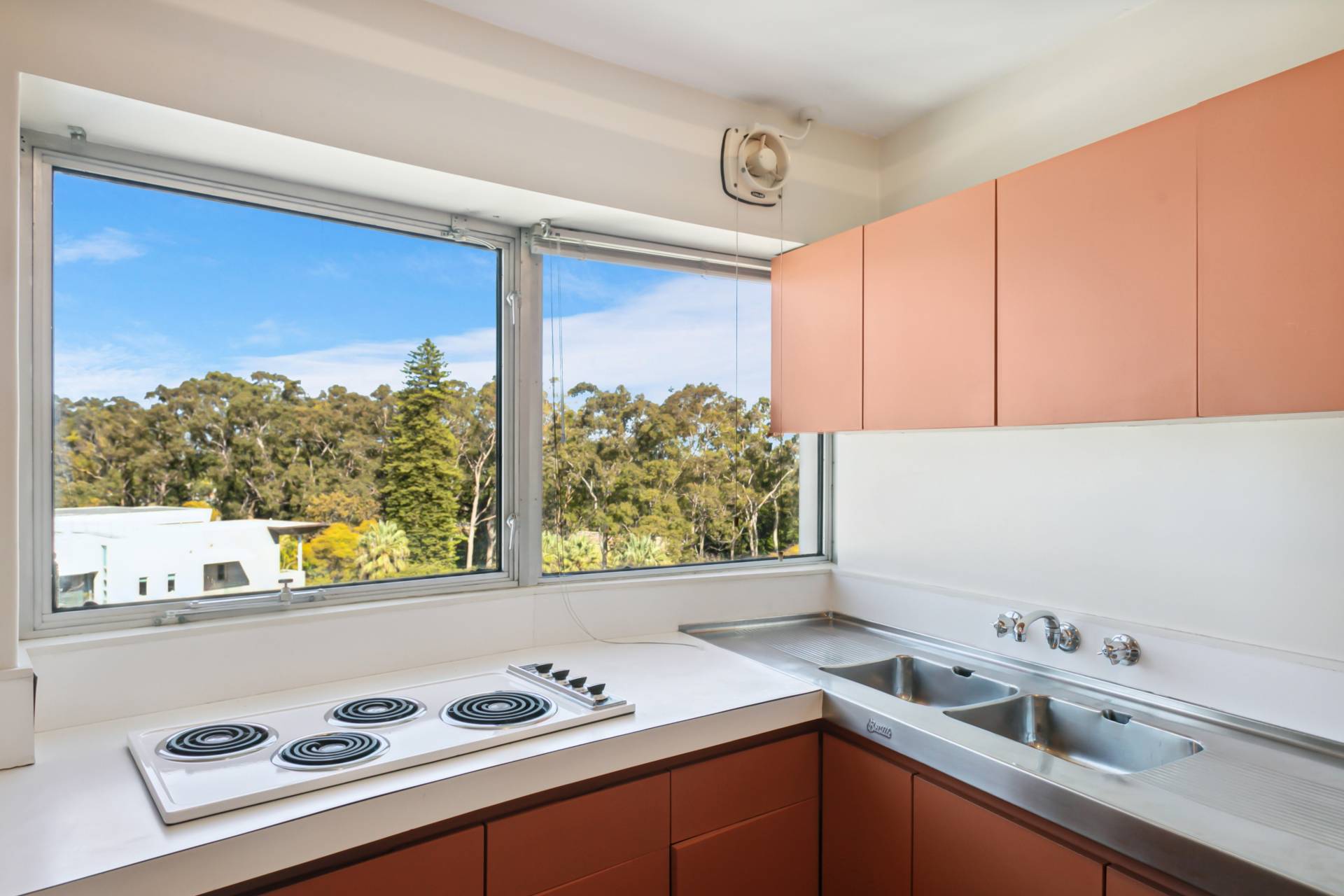 As you enter the property you are welcomed into the spacious living area flooded with natural light, featuring a huge mirror, 3 windows with breathtaking views, well maintained terracotta tiles and feature marble glass panelling with cupboards and a disguised door leading you to the rest of the property. The retro kitchen is equipped with an original oven and gas cooktop with ample storage and uninterrupted views of the Swan River. Both bedrooms are spacious in size boasting treetop views of Kings Park, with the master featuring a built-in-robe and dressing table. The original bathroom offers his and hers toilets, feature stained glass door, shower, bath and vanity.